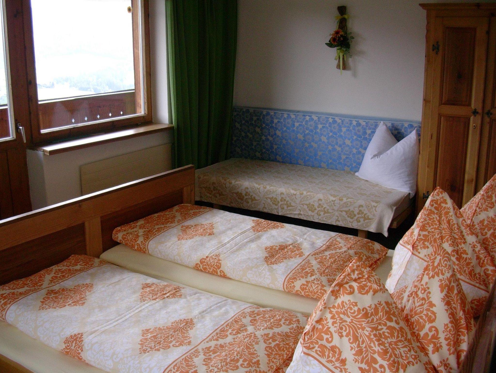 Unsere Ferienwohnung Panoramablick verfügt über drei separate Schlafzimmer mit jeweils Dusche,WC, Waschbecken. Neben dem gemütlichen Wohnzimmer mit Kachelofen gibt es eine kleine Küche und einen Flur.