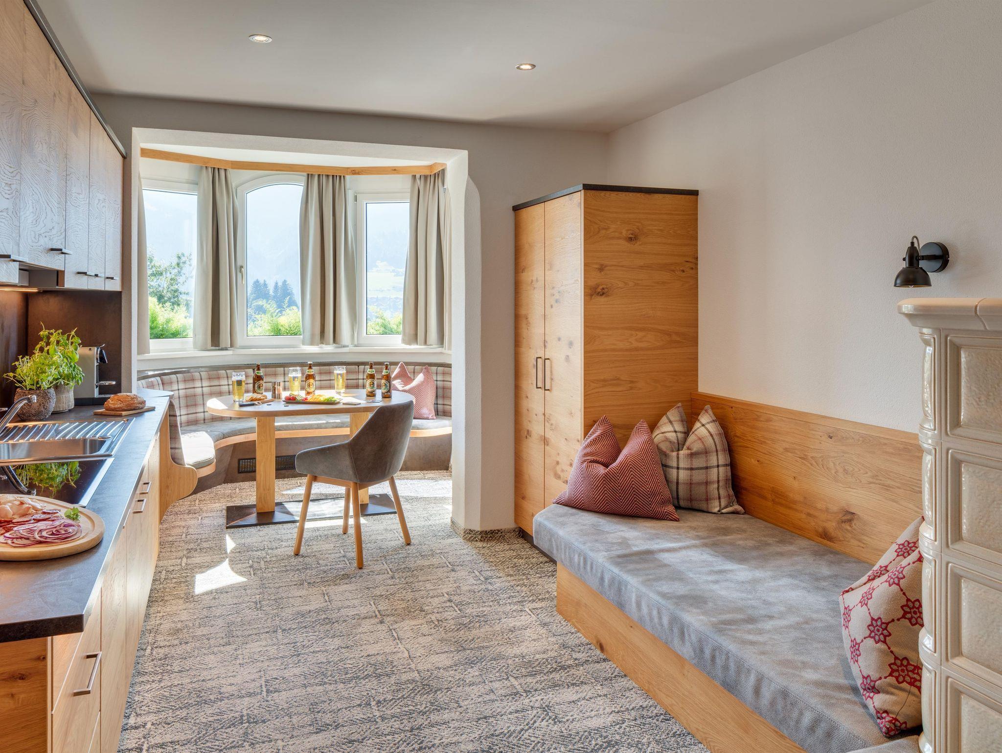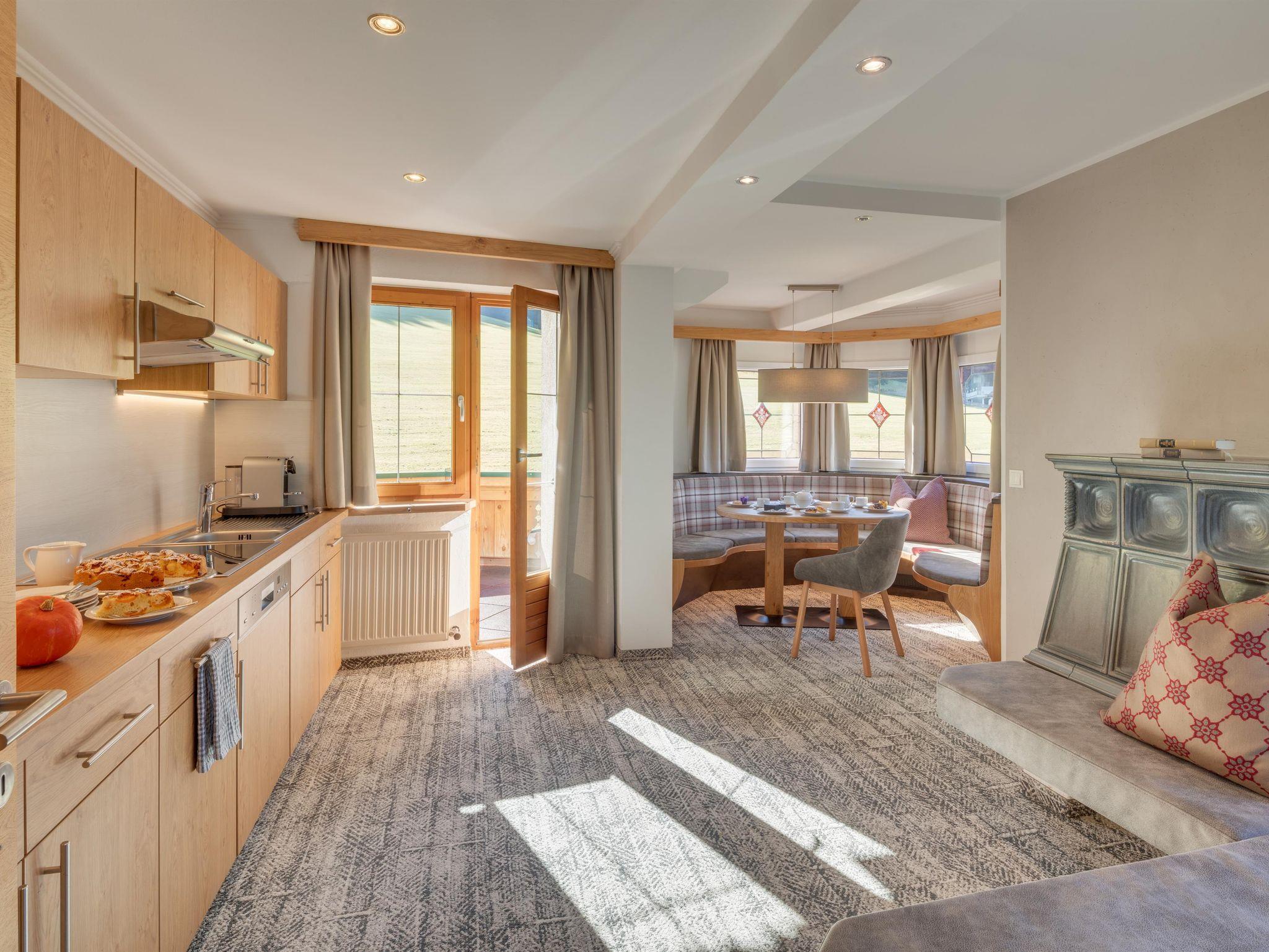 2 Schlafzimmer, 2 Badezimmer, getrenntes Wohnzimmer, 1 - 2 Schlafsofas, komplett eingerichtete Küche, Kachelofen, Balkon, Sat-TV, Zimmersafe, Telefon, kostenloses Internet