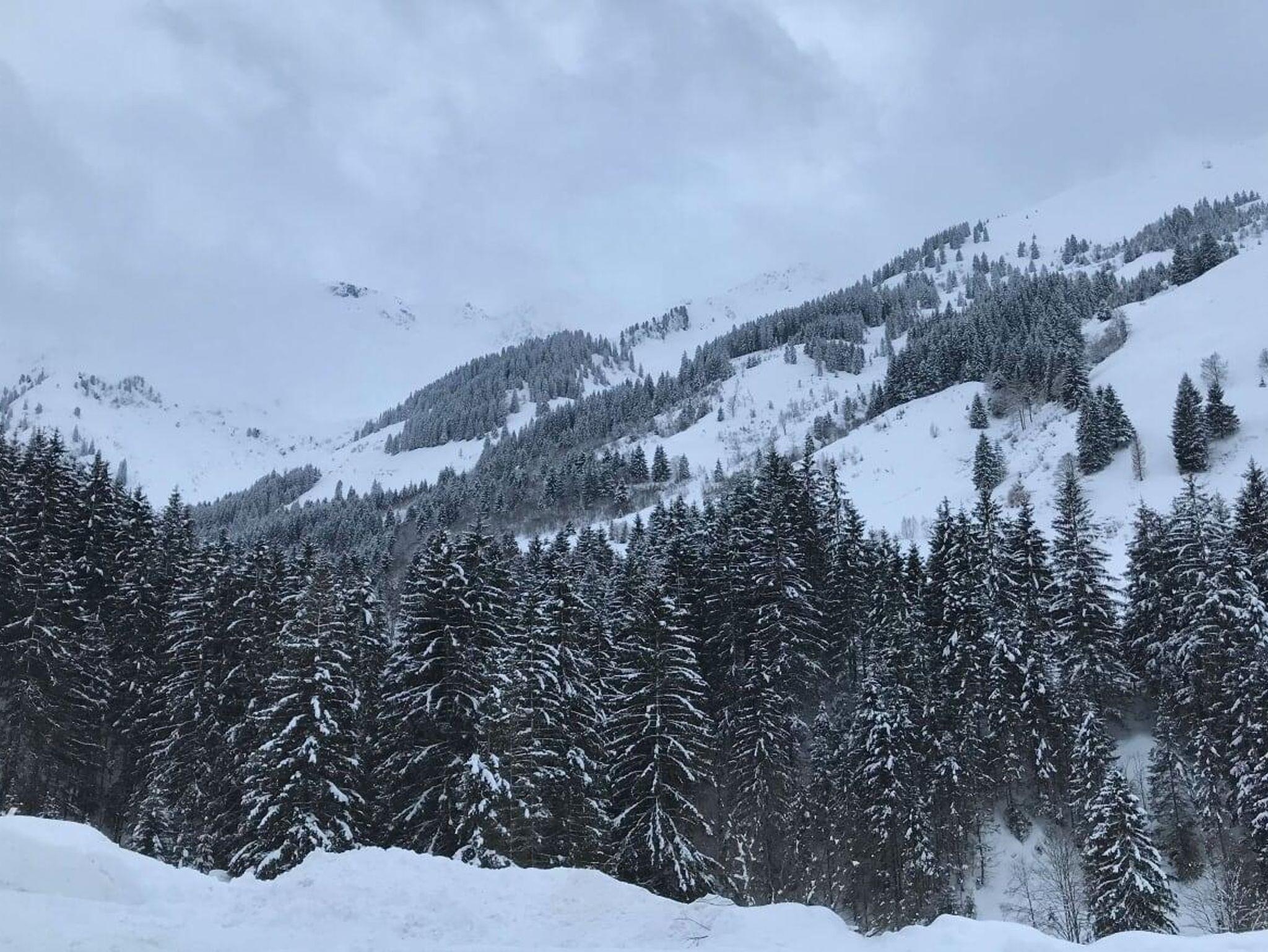 Glasfensterfront mit Panoramabergblick direkt zum Skigebiet Roggenboden