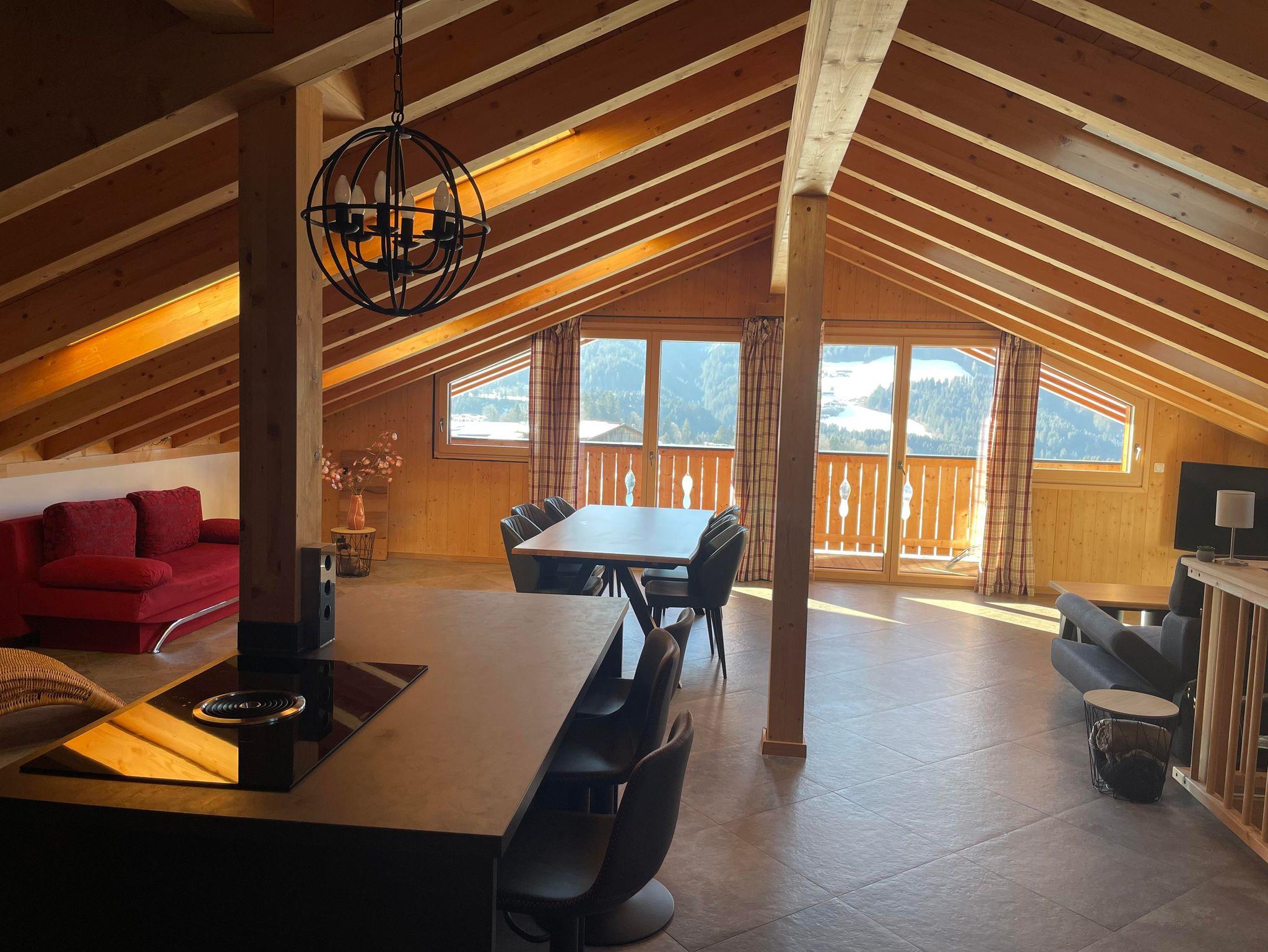 ?Die Ferienwohnungen sind alle modern mit teilweise rustikalen Holzakzenten eingerichtet. Jede Wohnung ist mit Süd-Terrasse oder Süd-Balkon ausgestattet und erlaubt einen umwerfenden Blick auf den Schatzberg sowie auf das Familienskigebiet Roggenboden.