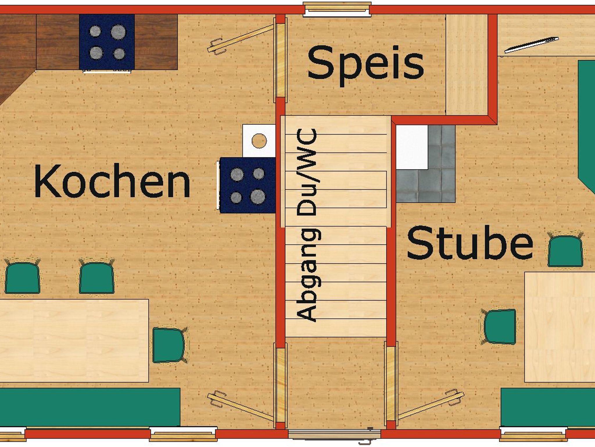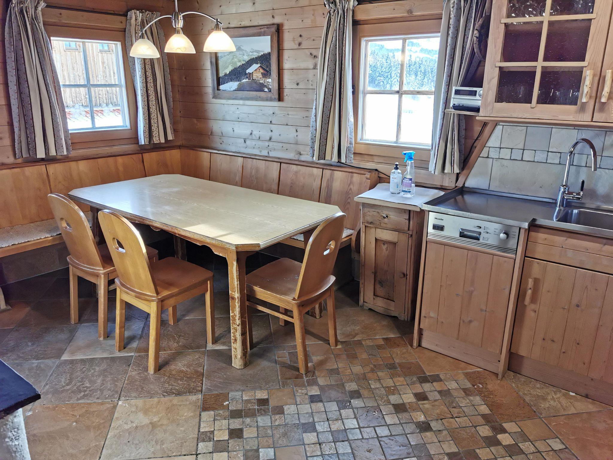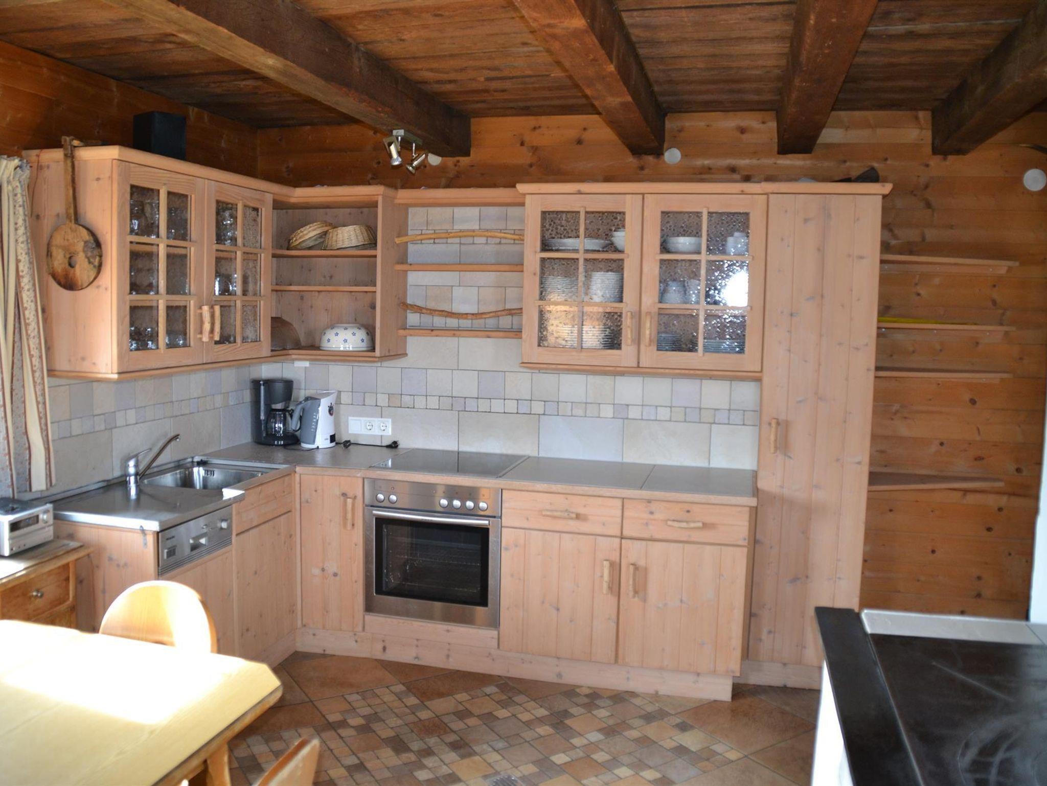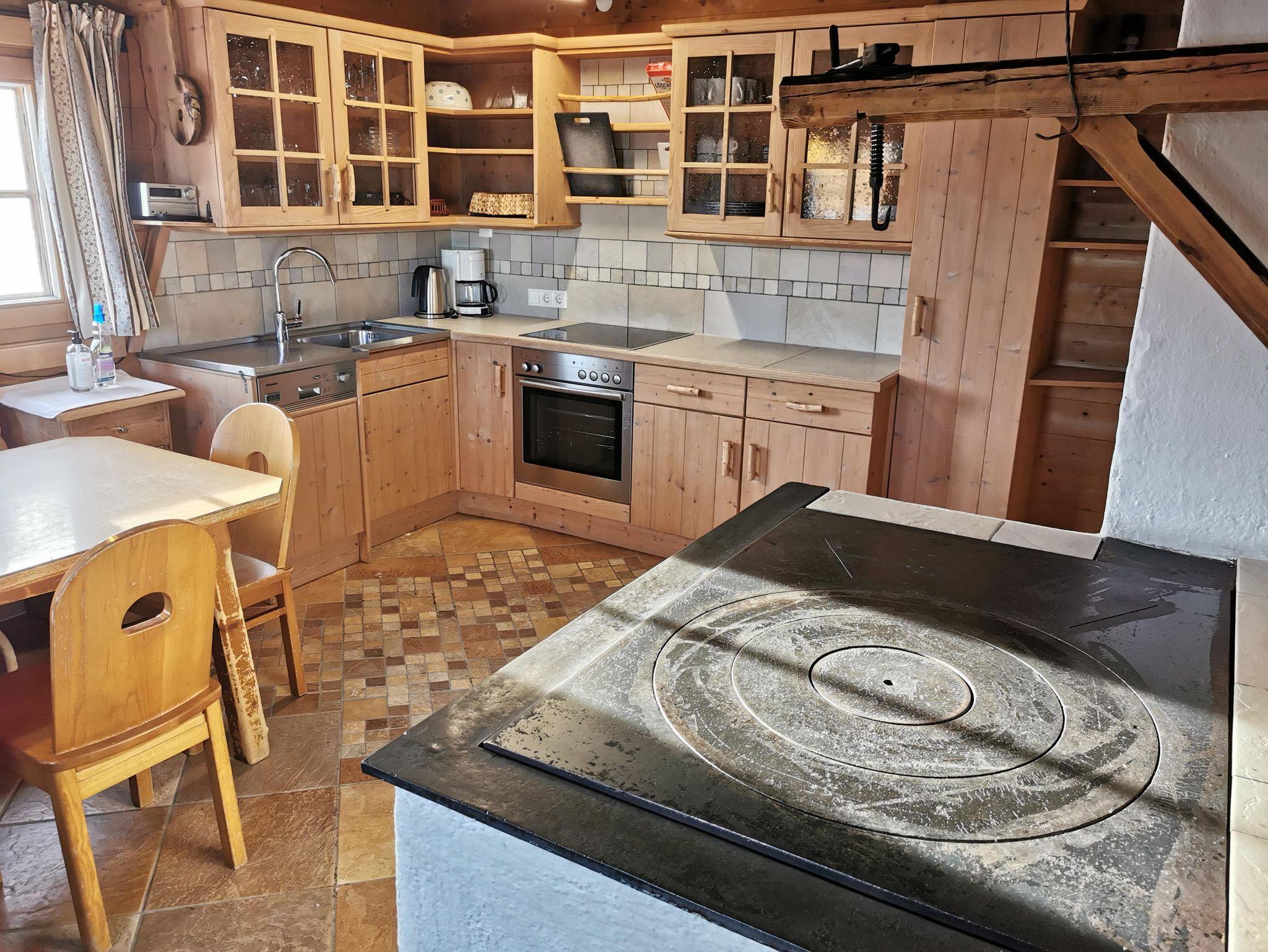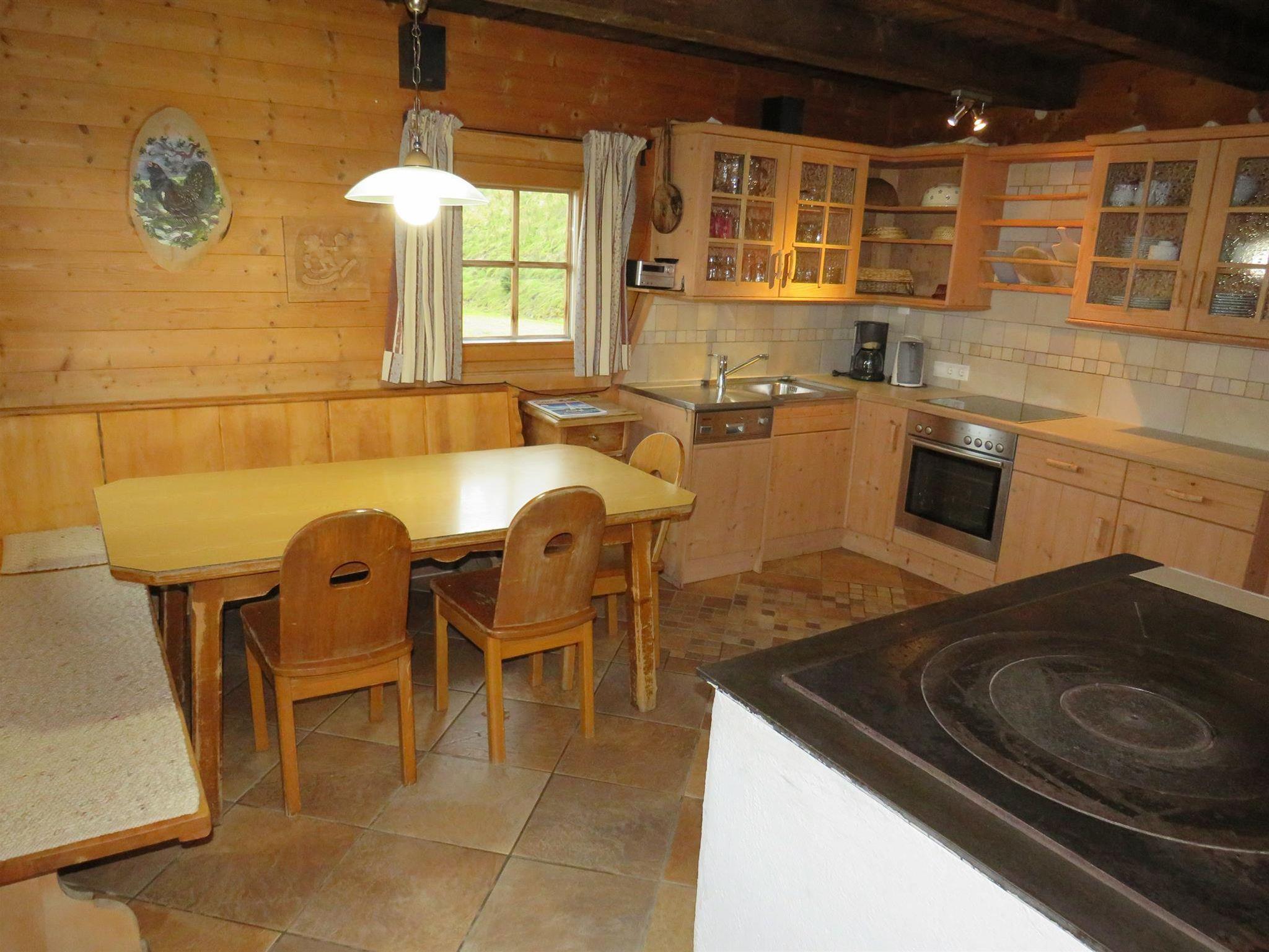Eine geräumige Küche mit Eßbereich, Holzherd und auch Elektroherd mit Backofen, sowie ein Kühlschrank mit Gefrierteil ist vorhanden, ebenso ein Stüberl mit Sat-TV und Schwedenofen.