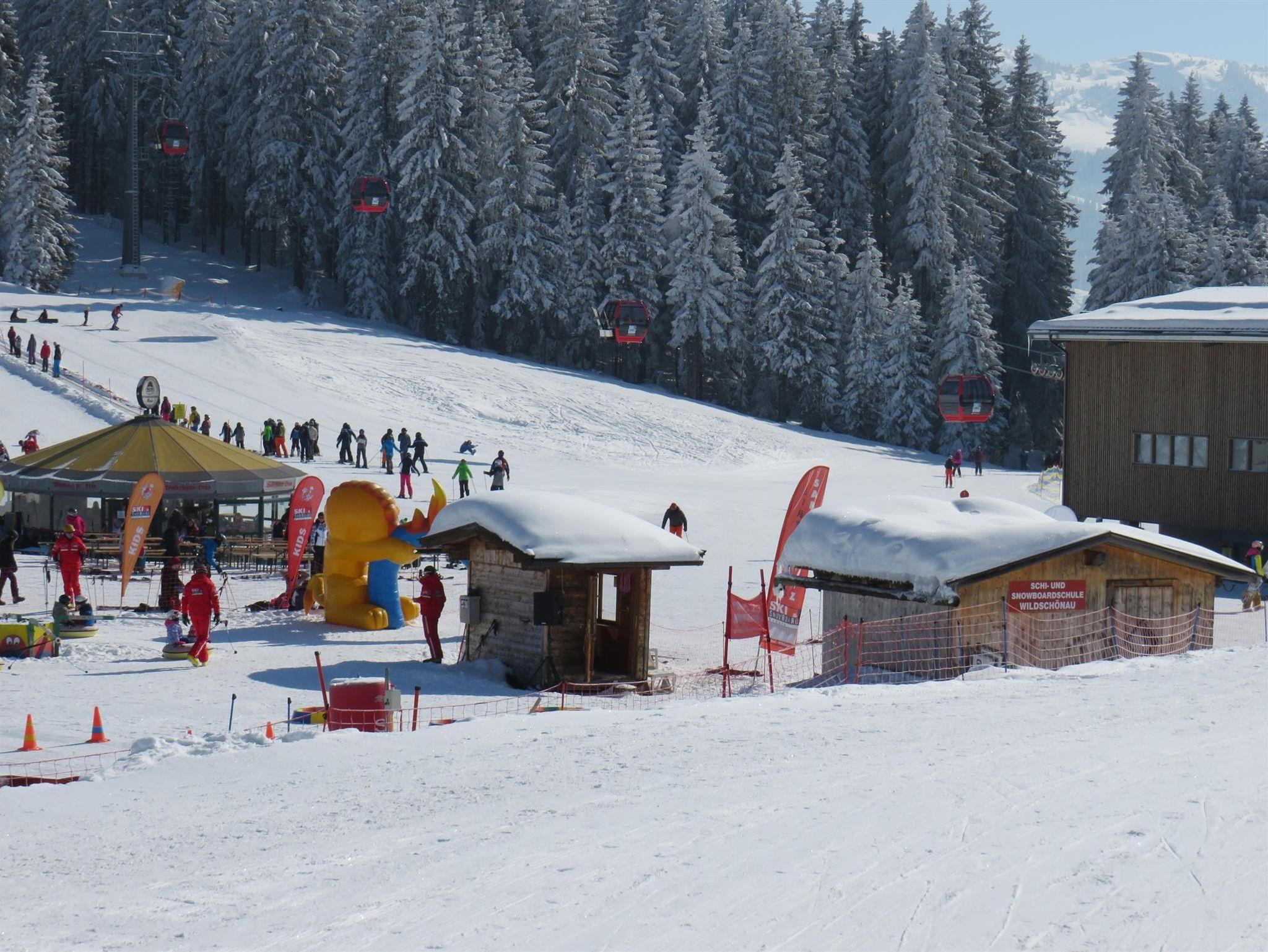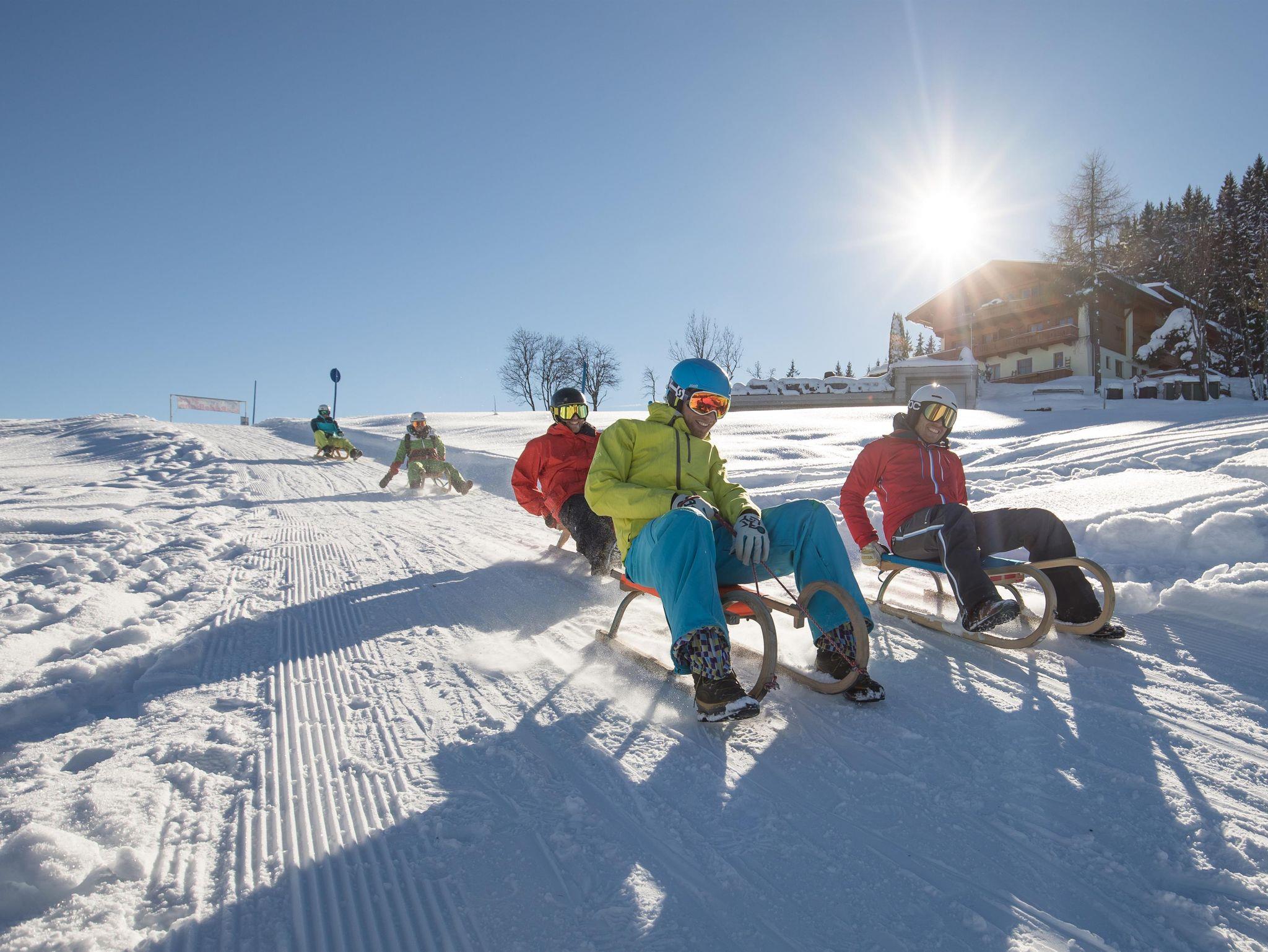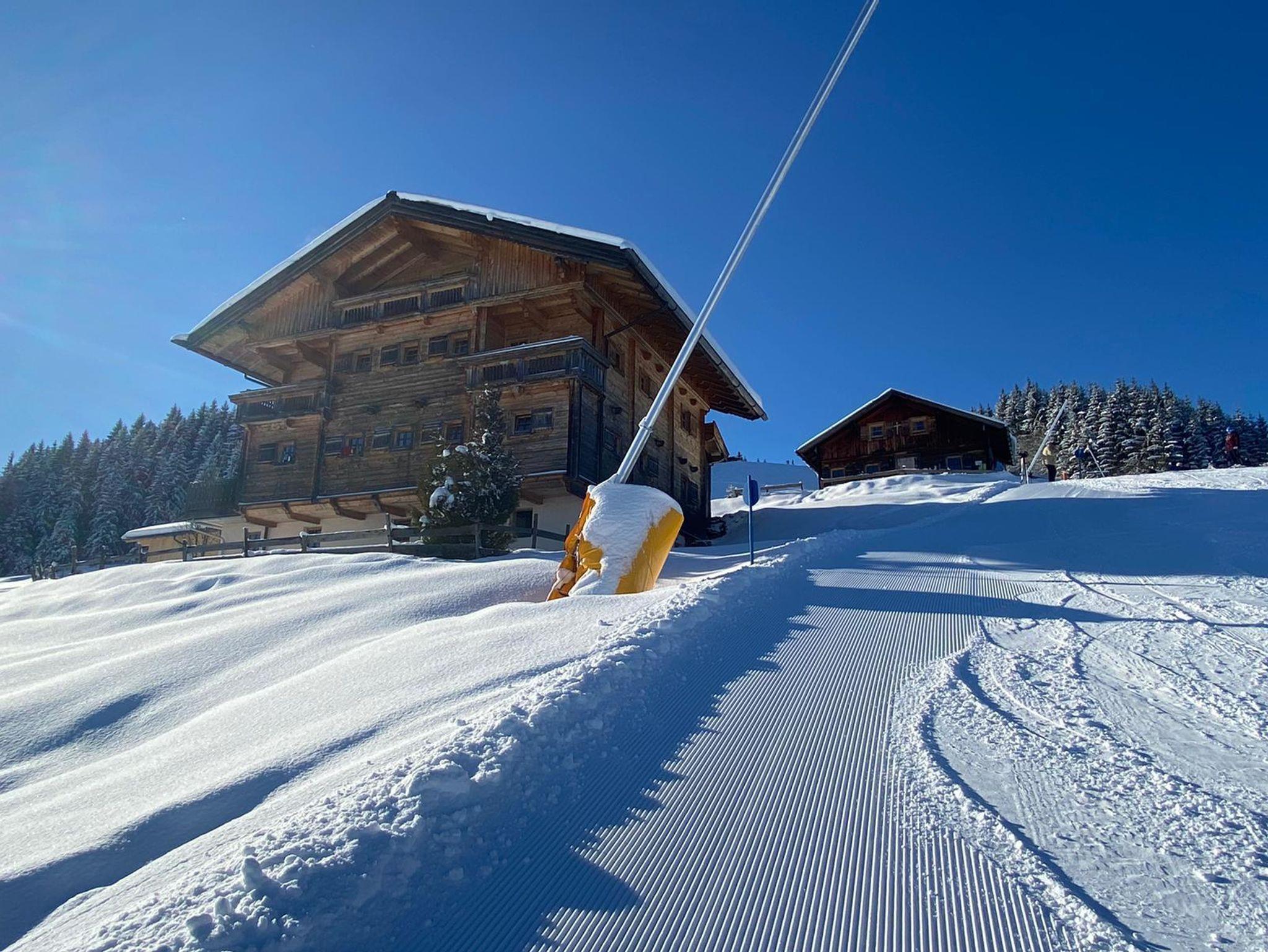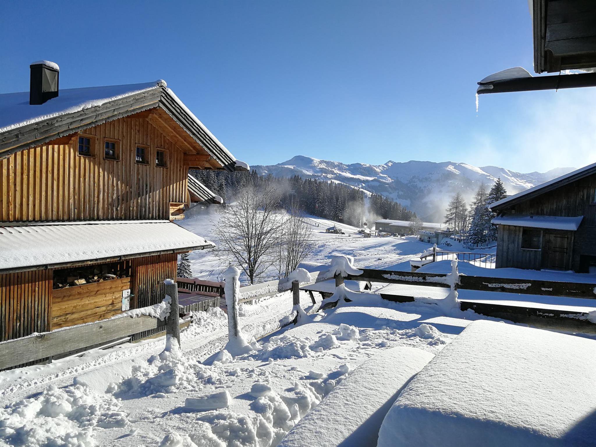 Diese beiden tollen Hütten liegen nahe an der Mittelstation der Schatzberg-Gondelbahn inmitten der Schipiste mit Anfängerliften und Schischulen. Restaurant und Schneebar nebenan. Die 4 km lange Rodelbahn führt von der Hütte bis ins Tal zur Gondel-Talstation.