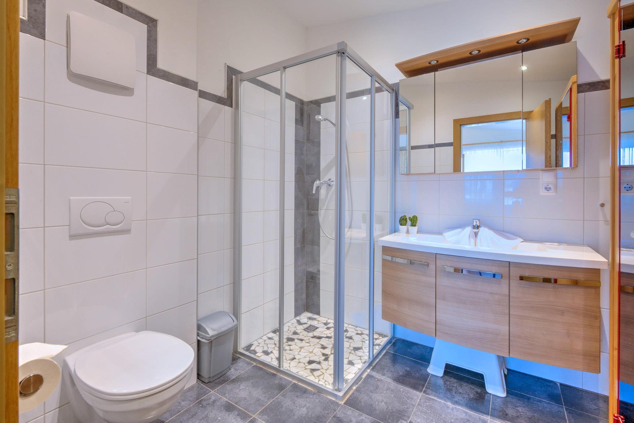 Træd ind i et hjem, der byder dig velkommen med plads, komfort og et strejf af alpin charme. Denne lyse og smukt designede Vicky Apartment (Top 11) er perfekt til op til seks gæster, hvilket gør den til et ideelt tilflugtssted for familier eller venner. Med sin private balkon med udsigt over de fantastiske Wildschönau-bjerge begynder hver morgen med frisk luft og en betagende udsigt. Indenfor inviterer en rummelig stue med spisebord og underholdningsmuligheder dig til at samles, mens det moderne, veludstyrede køkken gør fælles måltider til en fornøjelse. Hver detalje er omhyggeligt udvalgt for at skabe en behagelig atmosfære. Egetræsparketgulve bringer varme, mens den private infrarøde kabine tilbyder afslapning når som helst på dagen. Ud over din lejlighed tilføjer et fælles rekreationsområde med sauna, infrarød sauna og billard endnu flere måder at slappe af og nyde dit ophold på. Selve huset er blevet renoveret med energieffektive og miljøvenlige foranstaltninger, hvilket giver dig komfort med god samvittighed. Beliggenheden kunne ikke være bedre: solrig, central og alligevel vidunderligt rolig i 828 m over havets overflade. Med Wildschönau Premium Card inkluderet kan du nyde svævebaneture, guidede vandreture, udendørs pools, museer og meget mere. Eventyret starter lige uden for døren med vandrestier som Waldrandweg og Franziskusweg eller dagsture til forlystelsesparken Salvenaland og badesøen kun 10 km væk. Fra panoramaudsigt over bjergene til familiesjov og et komfortabelt ophold tilbyder denne lejlighed det bedste af det hele i hjertet af Kitzbüheler Alperne.