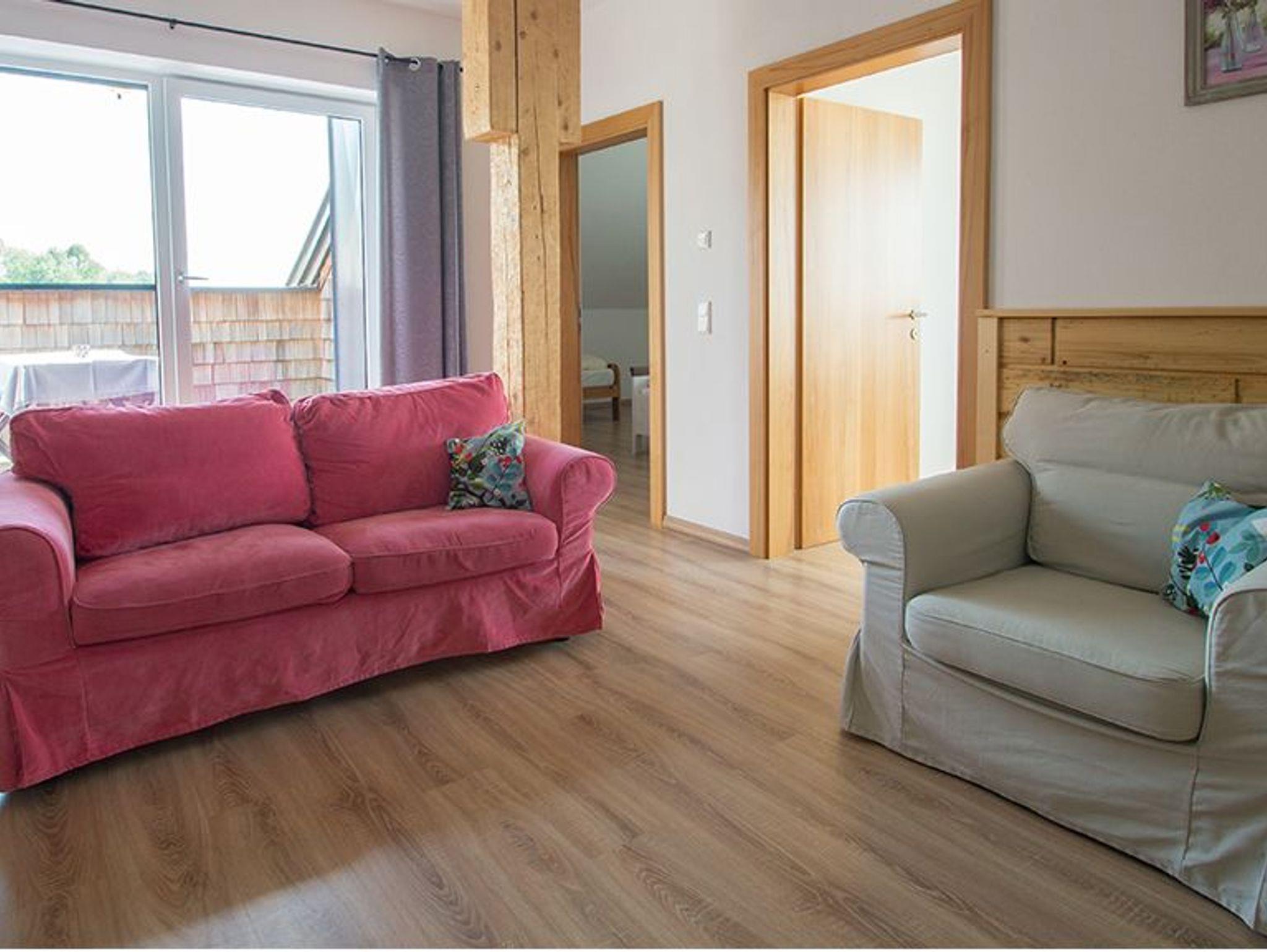 Von diesem Ferienwohnungstyp befinden sich zwei im Haus, eine davon ist eine barrierefreie Ferienwohnung für bis zu 5 Personen. Sie wurde 2014 neu errichtet. Mit ihrer Ausstattung im modernen Landhausstil bietet sie erholsame Ferien für die ganze Familie. Neben zwei Schlafzimmern für 2 und 3 Personen steht ein großzügiger Wohn- und Küchenbereich zur Selbstversorgung zur Verfügung. Selbstverständlich stellen wir für ihren jüngsten Nachwuchs auch ein Gitterbett zur Verfügung.