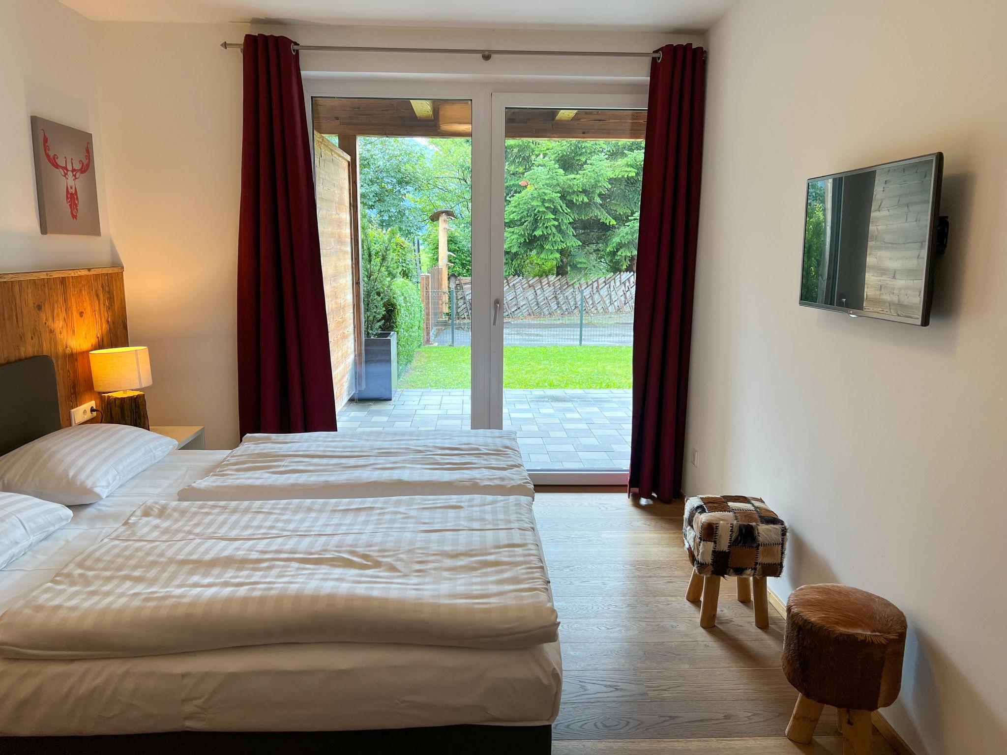 "Appartement Ursula", 2-room apartment 60 m2, on the ground floor. Object suitable for 4 adults. Spacious and bright, very modern and tasteful furnishings: entrance hall. Living/sleeping room with 1 double sofabed, cable TV and flat screen. Exit to the garden. 1 double bedroom with cable TV and flat screen. Exit to the garden. Kitchen-/living room (oven, dishwasher, 4 ceramic glass hob hotplates, toaster, kettle, electric coffee machine, Capsules for coffee machine (Nespresso)) with dining nook. Shower/WC, bath/shower/WC. Underfloor heating. Parquet floors, natural stone floors. Large terrace 20 m2, large garden. Terrace furniture. View of the countryside. Facilities: iron, hair dryer. Internet (WiFi, free). Garage. Please note: non-smokers only. Smoke alarm, fire extinguisher. 50628-001591-2023