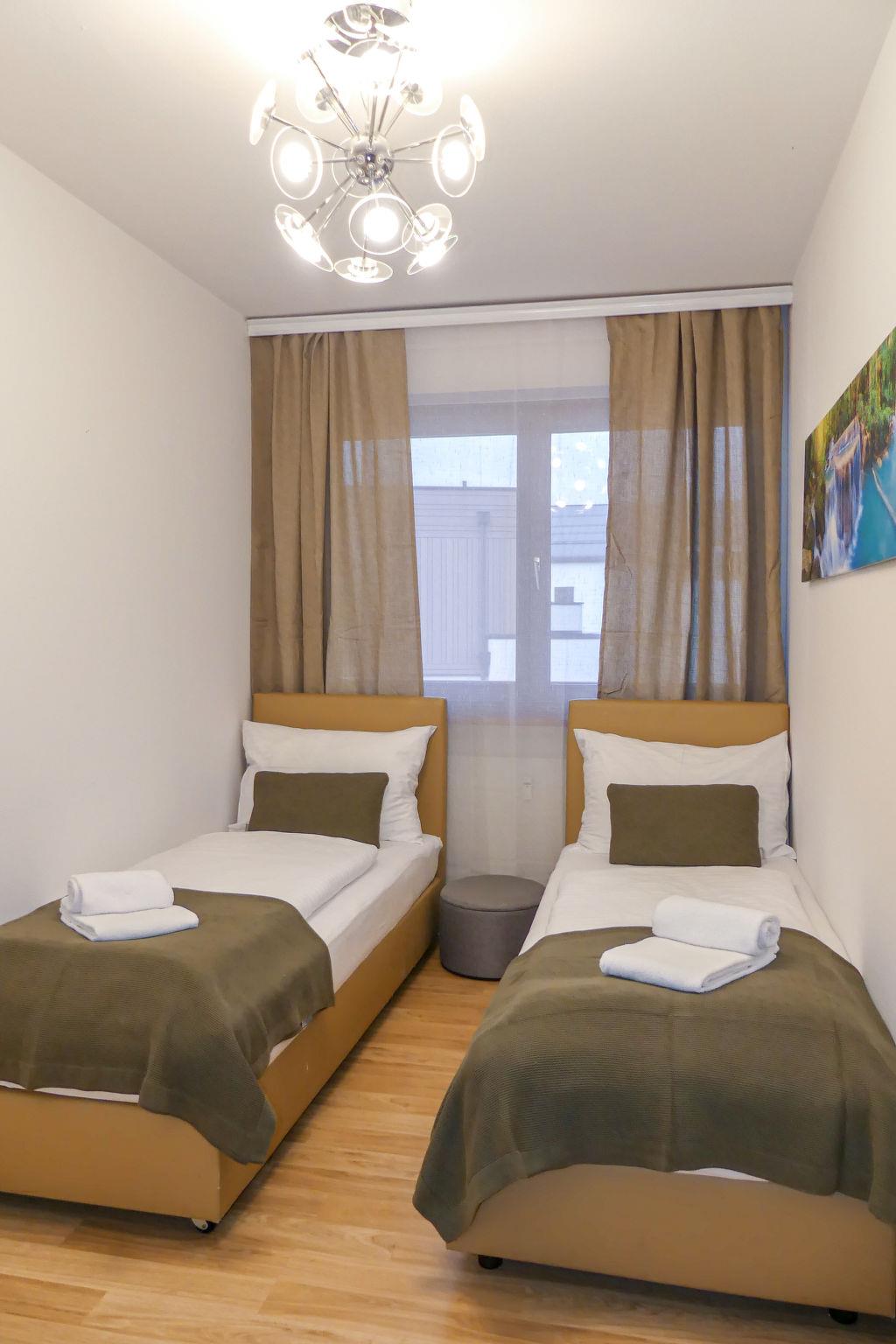 "Siegl", 3-room apartment 50 m2 on 3rd floor. Tasteful and cosy furnishings: entrance hall. Living room with 1 double sofabed, dining nook, satellite TV and flat screen. Exit to the balcony. 1 room with 2 beds. 1 double bedroom. Kitchenette (oven, dishwasher, 4 ceramic glass hob hotplates, toaster, kettle, microwave, electric coffee machine). Shower/WC. Parquet floors, natural stone floors. Large balcony 25 m2. Balcony furniture. Facilities: safe, iron, hair dryer. Internet (WiFi, free). Please note: non-smokers only. 50628-001529-2021