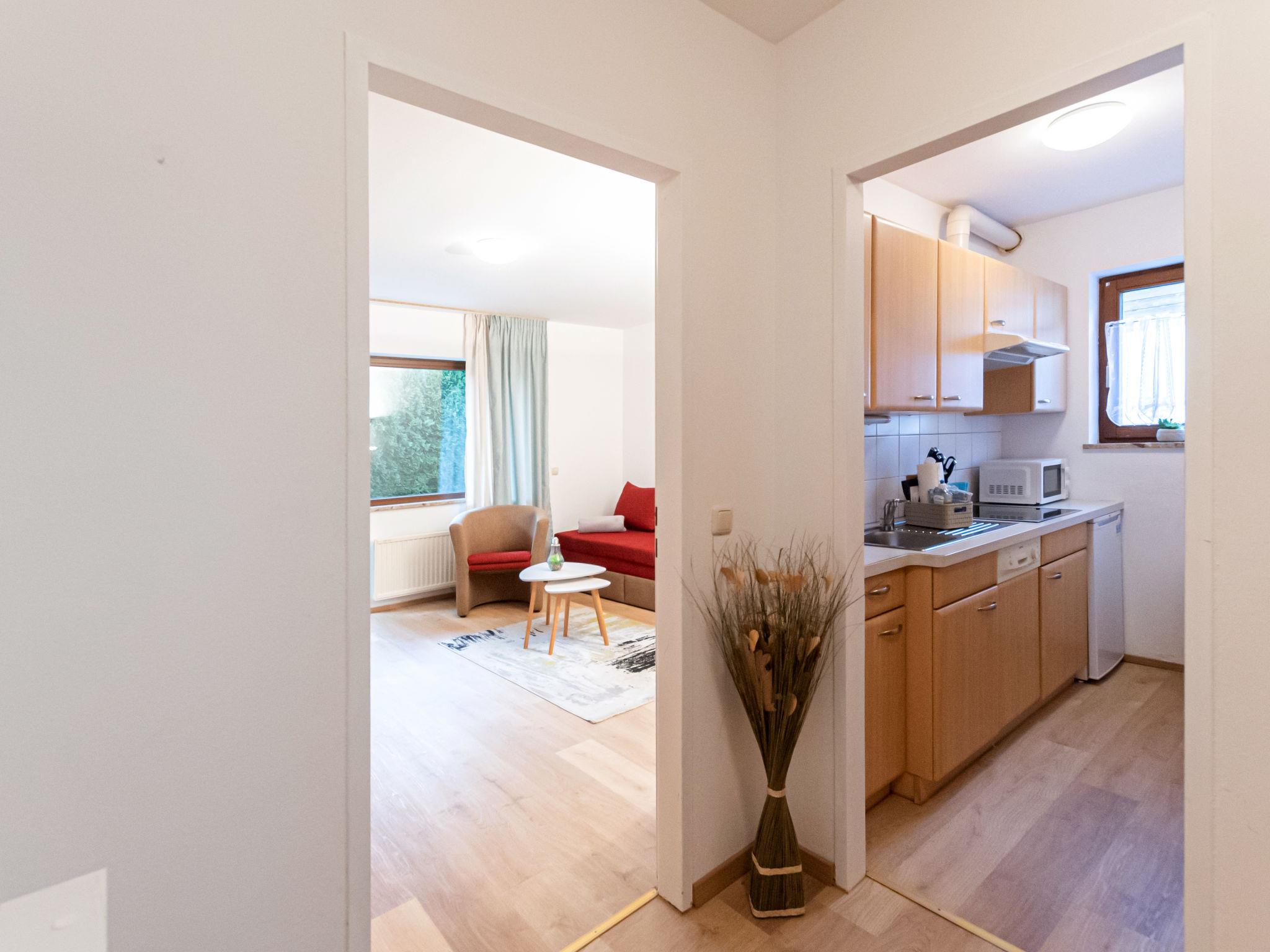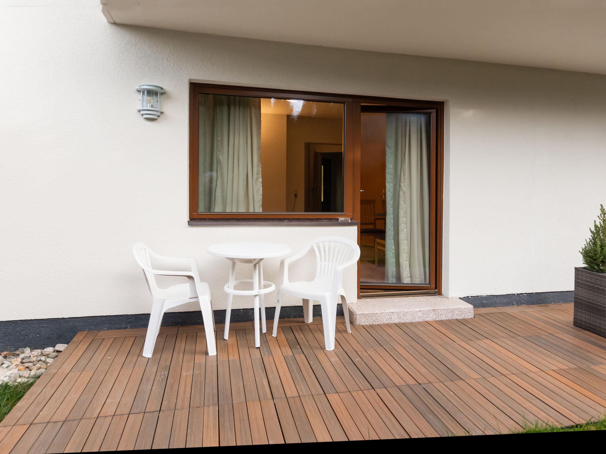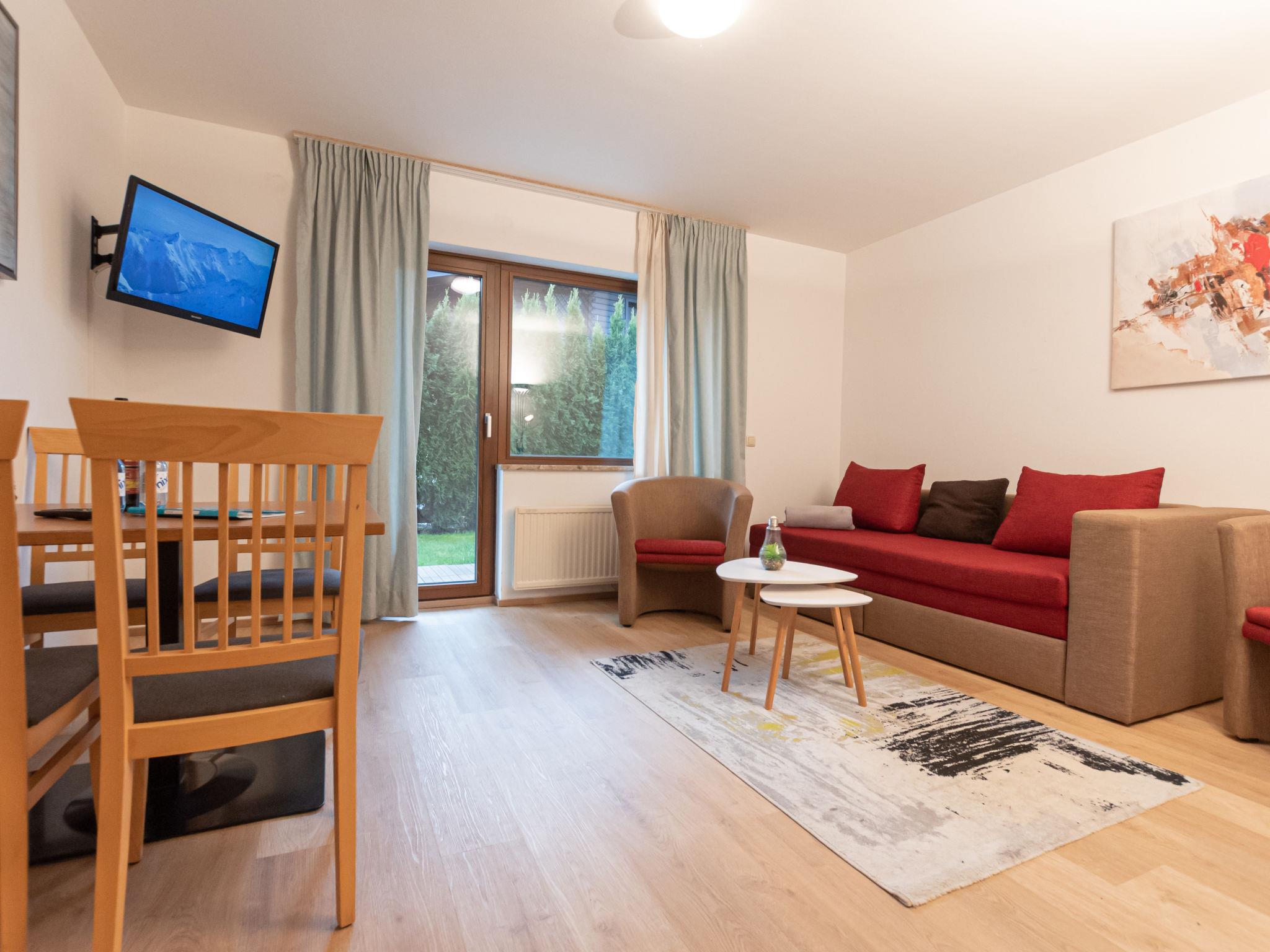 "Alpenchalets", 2-room apartment 50 m2, on the ground floor. Renovated in 2019, cosy furnishings: living/sleeping room with 1 double sofabed, dining table and cable TV. Exit to the terrace. 1 room with 1 double bed (160 cm). Kitchen (dishwasher, 4 ceramic glass hob hotplates, toaster, kettle, microwave, electric coffee machine). Shower/WC. Electric heating. Parquet floors. Terrace. Terrace furniture. Facilities: children's high chair, baby cot. Internet (WiFi, free). Parking (1 car). 1 pet/ dog allowed. 50628-001024-2020