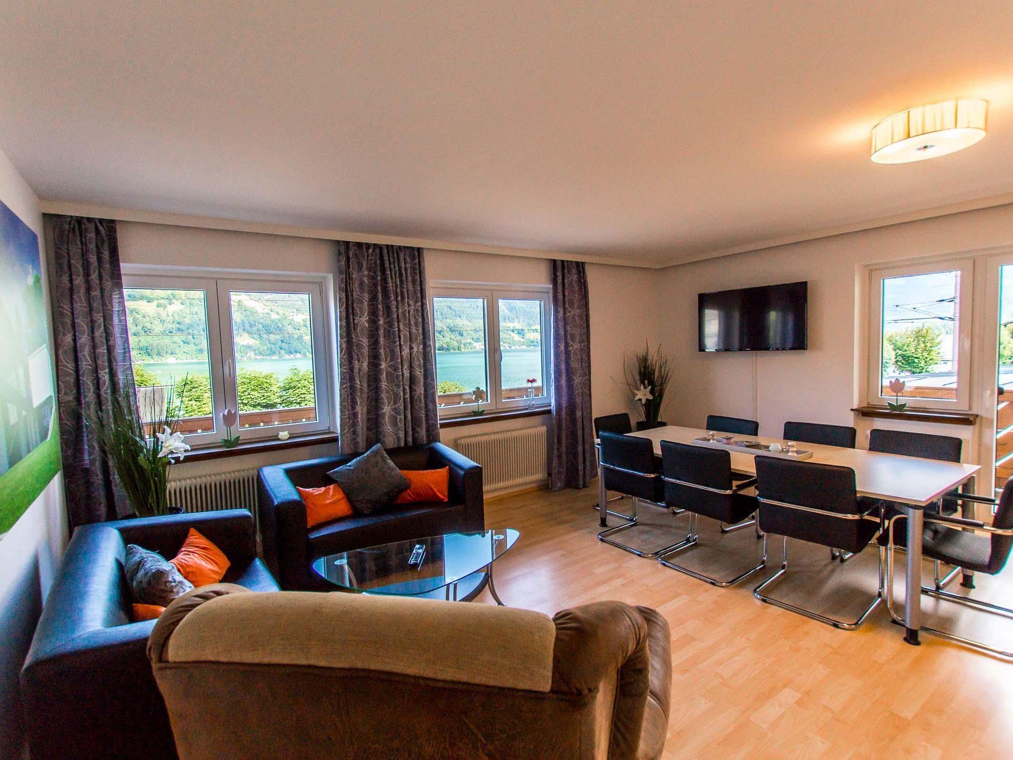 Apartment im Zentrum von Zell am See. Balkon mit Garten und Seeblick Perfekt für maximal 5 Erwachsene und 1 Kind. 2 Schlafzimmer| 1 Badezimmer Das 75qm Apartment mit einem Badzimmer bietet 2 Schlafzimmer – eines mit einem Doppelbett und eines mit Doppelbett und großem Etagenbett – eine großzügige Küche mit Sitzecke und ein Badezimmer mit Badewanne/Dusche. Highlights: Zentrale Lage direkt im Zentrum von Zell am See Balkon mit Garten und Seeblick Gehdistanz zum nächsten Skilift, dem CityXpress Gehdistanz zur Fußgängerzone mit zahlreichen Restaurants, Bars und Einkaufsmöglichkeiten Zeller See direkt auf der gegenüberliegenden Straßenseite Gratis WIFI und Kabelfernsehen. 2 große LCD-TV.