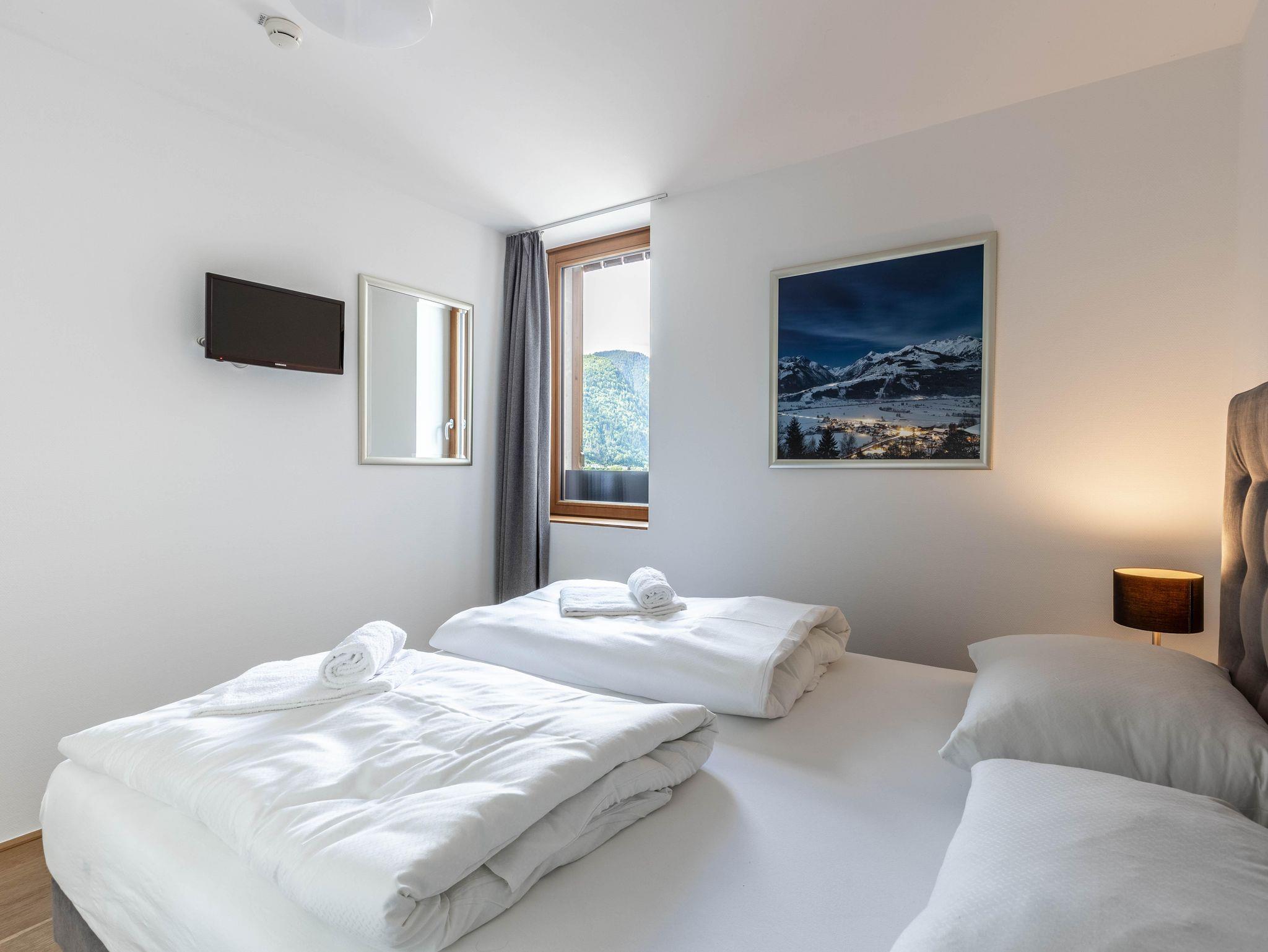 Willkommen im Bellevue Residences Top 3.2 Appartement mit herrlichem Seeblick! Auf 85m² bietet es Platz für bis zu 6 Personen. Es erwarten dich zwei Schlafzimmer mit Doppelbett, ein Wohnzimmer mit Doppelschlafcouch und offener Designerküche, sowie ein Badezimmer mit Badewanne/Dusche und WC. Zusätzlich gibt es ein weiteres separates WC. Vom Wohnzimmer aus gelangst du auf den Balkon, von dem aus du einen atemberaubenden Blick auf den Zeller See genießen kannst.