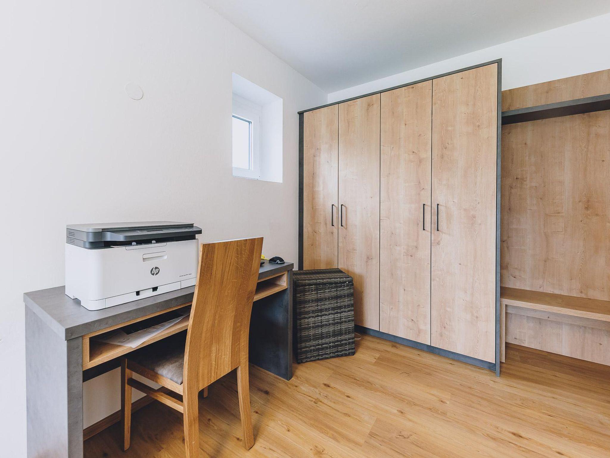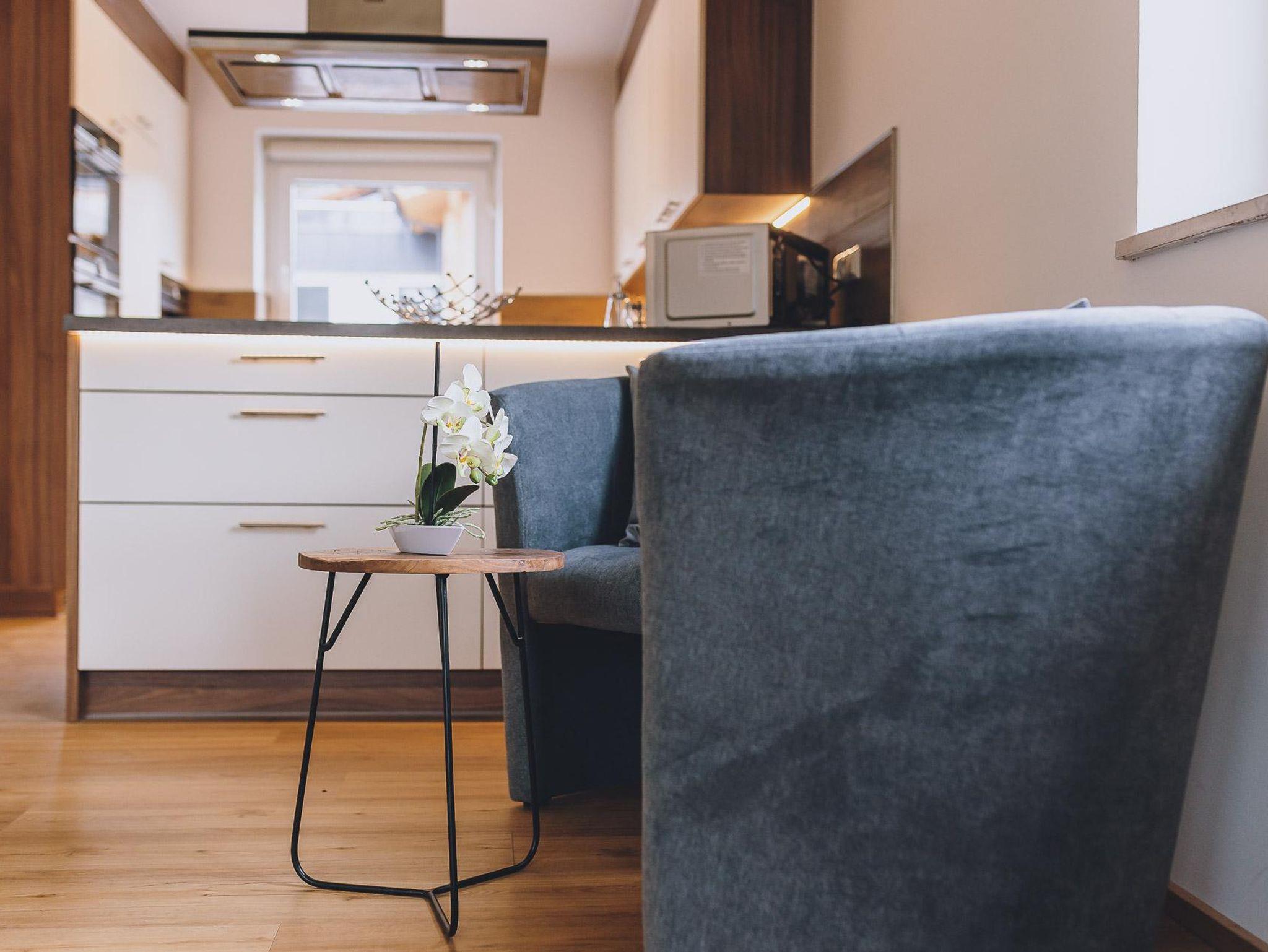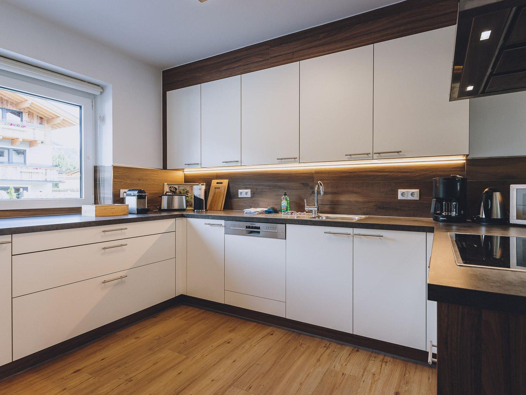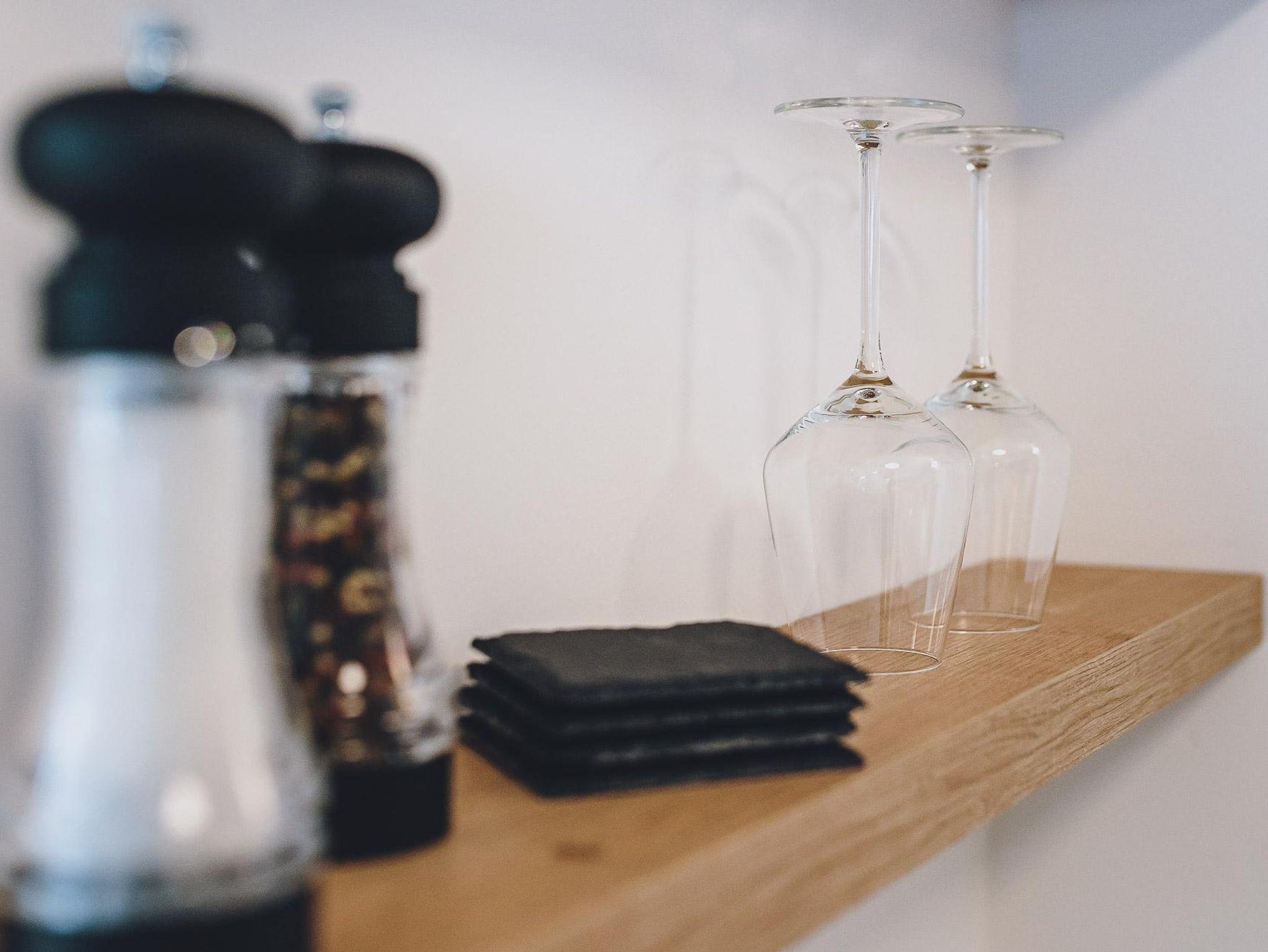 Die offene Küche bietet alles was unsere Gäste zum Zaubern ihrer Gerichte benötigen: Kühl/Gefrierschrank, Backofen, Spülmaschine, Geschirr/Besteck, Kochutensilien, Kaffeemaschine (Tabs), Toaster und einen Wasserkocher. Zentralheizung und klimatisierter Boden sorgen immer für die richtige Temperatur. Bügeleisen, Waschmaschine und Trockner sowie ein Parkplatz vor dem Haus komplettieren das Angebot.