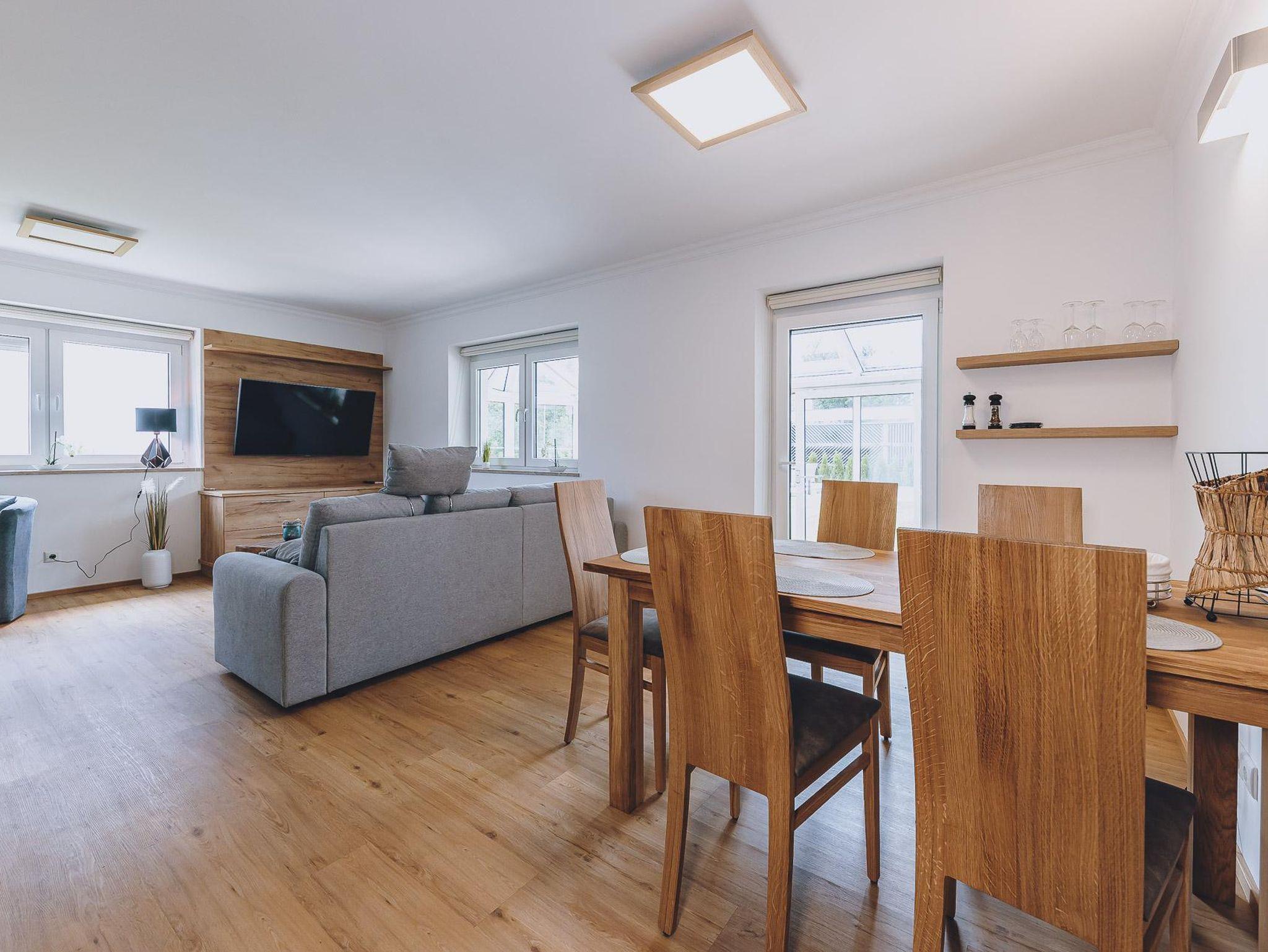 Wohlfühlen auf 100m² aufgeteilt in 2 separate Schlafzimmer, 1 Wohnzimmer mit offener Küche, 1 Badezimmer mit Badewanne & Terrasse mit Zugang zum Garten.