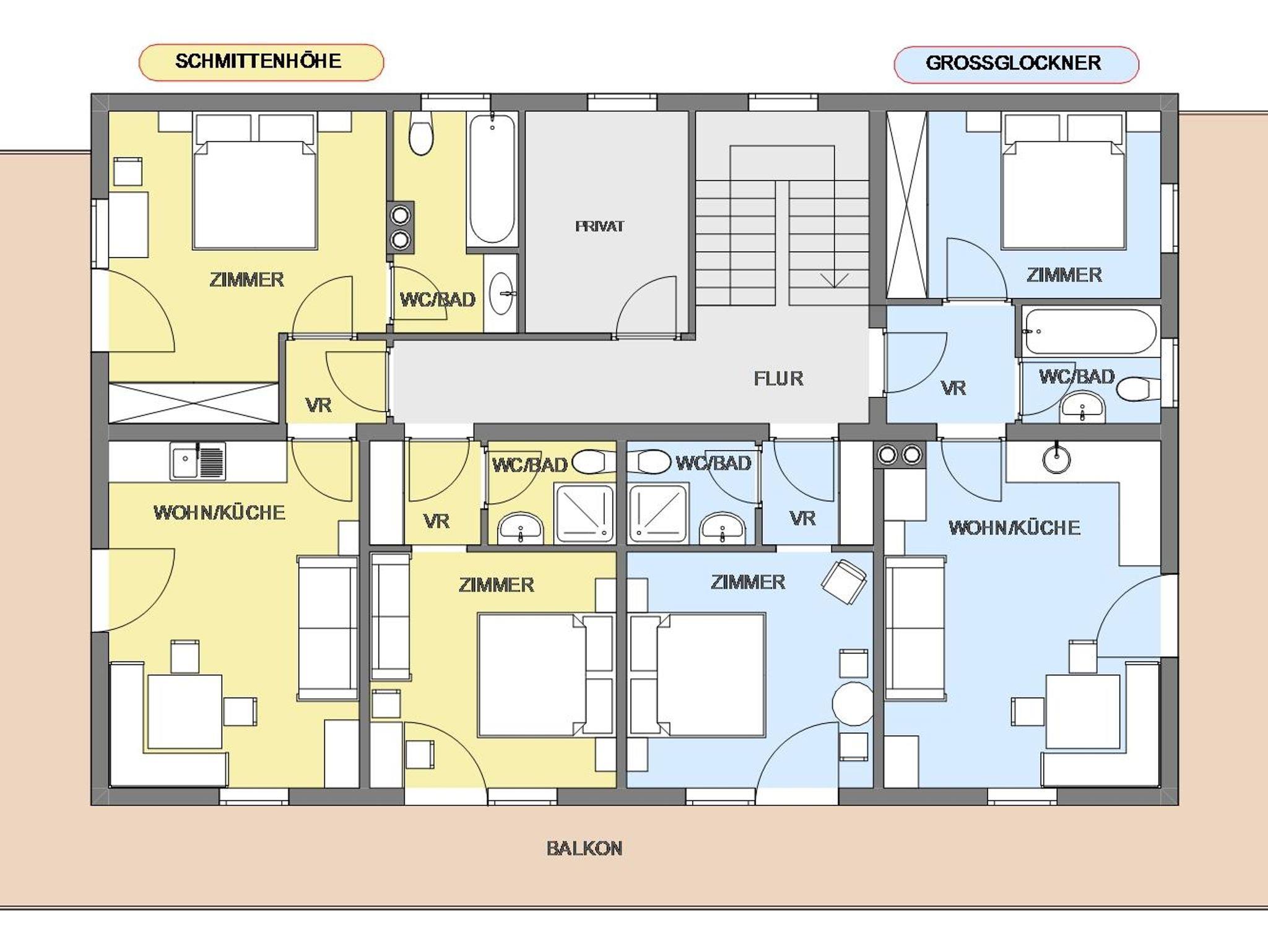 Haus Holzegghof, Apartment/2 Schlafräume/2 Bäder, WC, Balkon