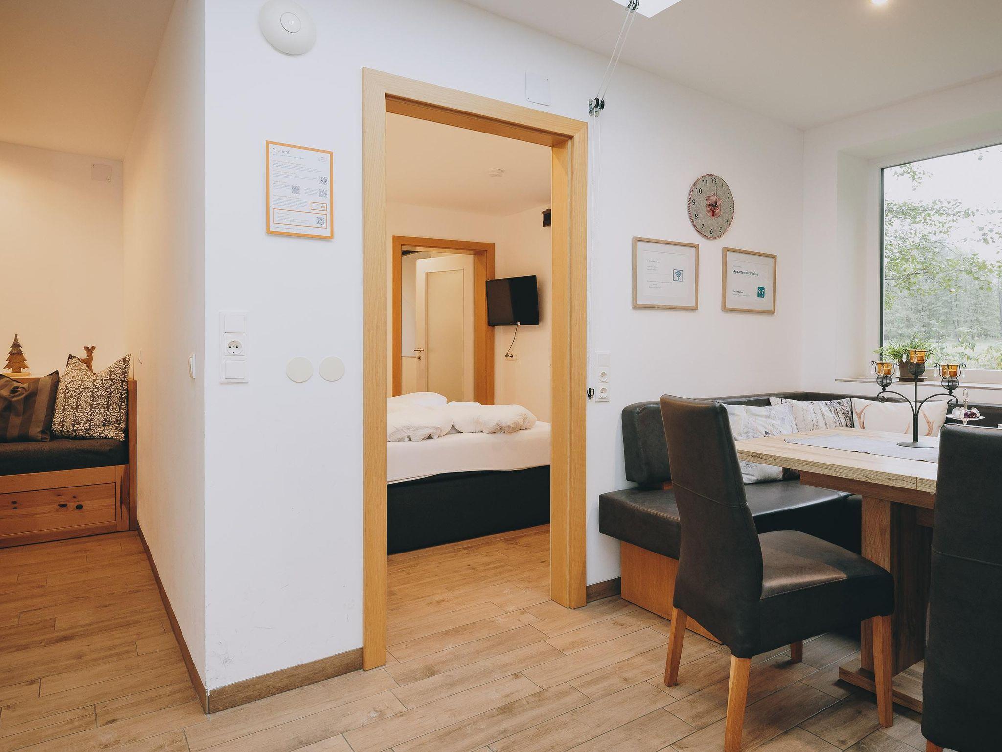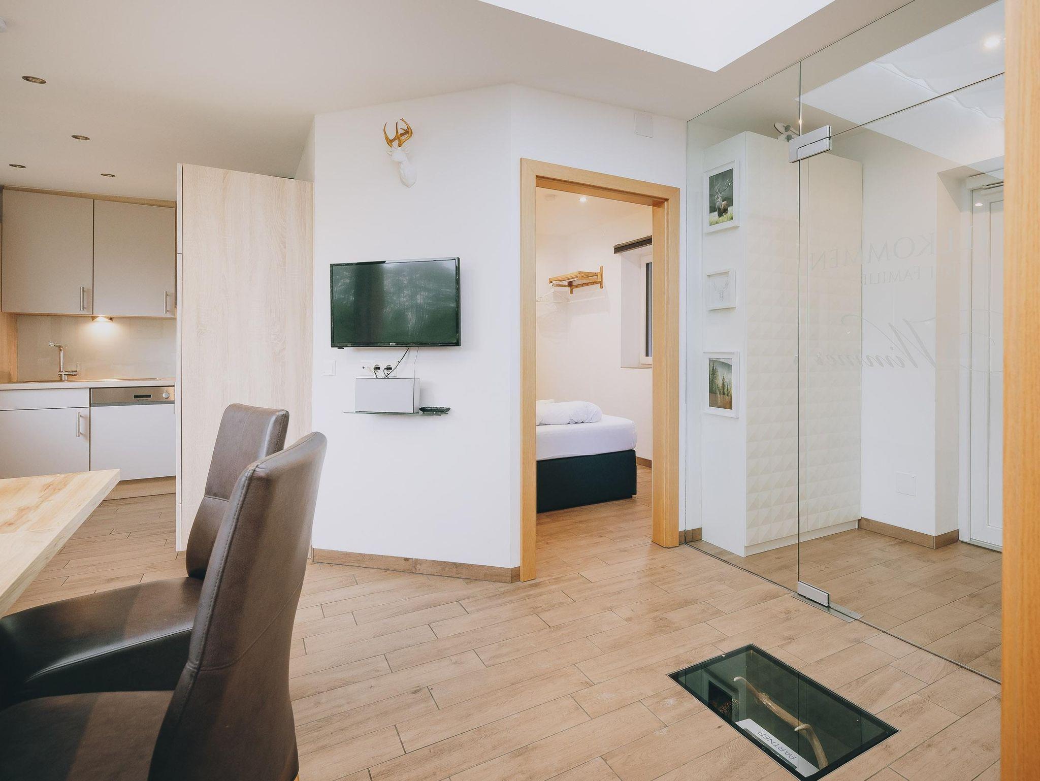 Superior Ferienwohnung. Bergblick, modern. 2 Schlafzimmer. 2 Badezimmer. 60m². 1 - 5 Personen. Genießen Sie Ihren Urlaub in Zell am See in unserem Appartments Prielau - Garden Lodge und buchen Sie zum Bestpreis direkt beim Eigentümer. Willkommen in den Appartements Prielau - Garden Lodge, wo Komfort auf Bequemlichkeit trifft. Diese charmante Ferienwohnung bietet zwei geräumige Schlafzimmer, jedes mit eigenem Bad, eine moderne Küche mit Essbereich und ein gemütliches Wohnzimmer mit einem Einzel-Schlafsofa. Beide Schlafzimmer sind mit bequemen Doppelbetten und Flachbildfernsehern ausgestattet, während jedes Badezimmer über eine Dusche und ein WC verfügt. Für zusätzlichen Komfort enthält eines der Badezimmer auch eine Waschmaschine.