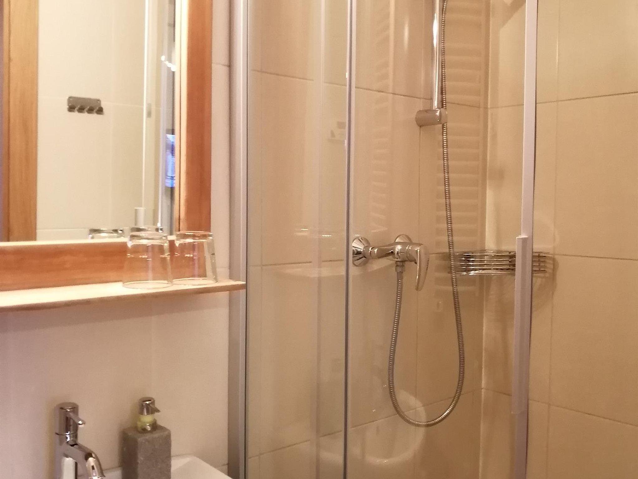 Der gemütliche Wohn-Schlafraum ist ausgestattet mit einer Kochnische (mit Geschirrspüler, Mikrowelle, 2er-Ceranfeld, Wasserkocher, Tassimo-Kaffeemaschine, Kontaktgriller, Geschirr, Reinigungsutensilien, etc…), Essbereich, Sofaecke mit Flachbildfernseher via Kabel, WLAN sowie ein Badezimmer mit Dusche & WC.