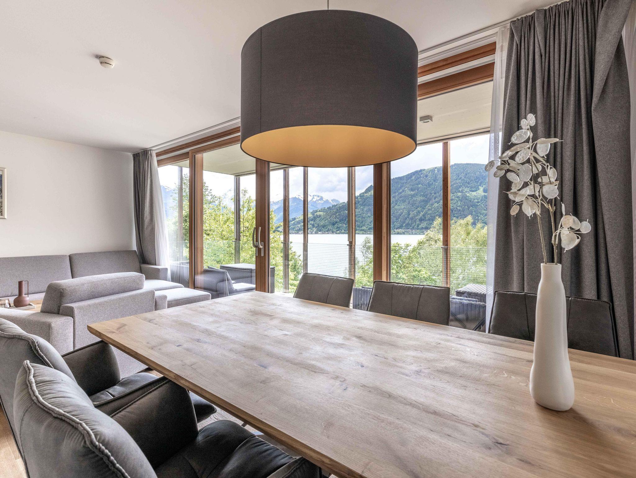 Herzlich willkommen in den Bellevue Residences! Wir bieten geräumige Appartements und Suiten mit jeweils zwei Schlafzimmern, Balkon und/oder Terrasse. Das Highlight ist der atemberaubende Blick auf den See und die umliegenden Berge. Hochwertige Materialien, stilvolles Design und großzügige Räume laden zum Verweilen ein. Zwei Saunen, ein eigener Parkplatz, ein beheizter Skikeller und eine Waschküche sind ebenfalls vorhanden. Außerdem bieten wir unseren Gästen eine geräumige, voll ausgestattete Küche und kostenloses WLAN. Freue dich auf einen unvergesslichen Aufenthalt in den Bellevue Residences!