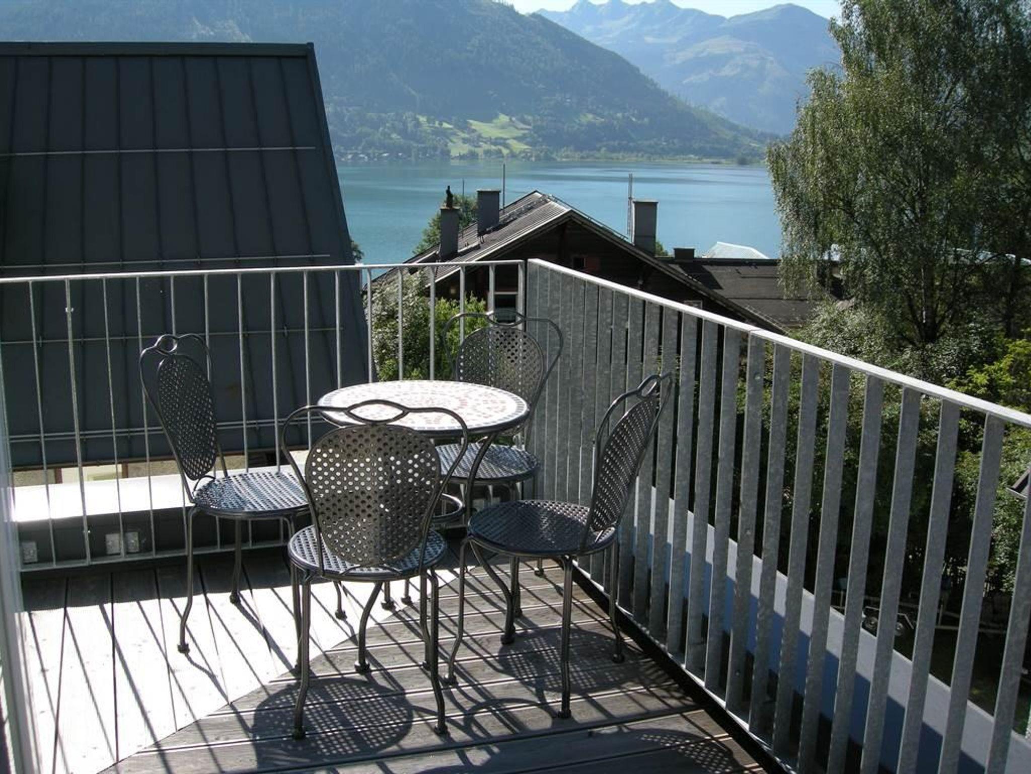 • Großer Balkon mit Blick auf den Zeller See und die Berglandschaft
