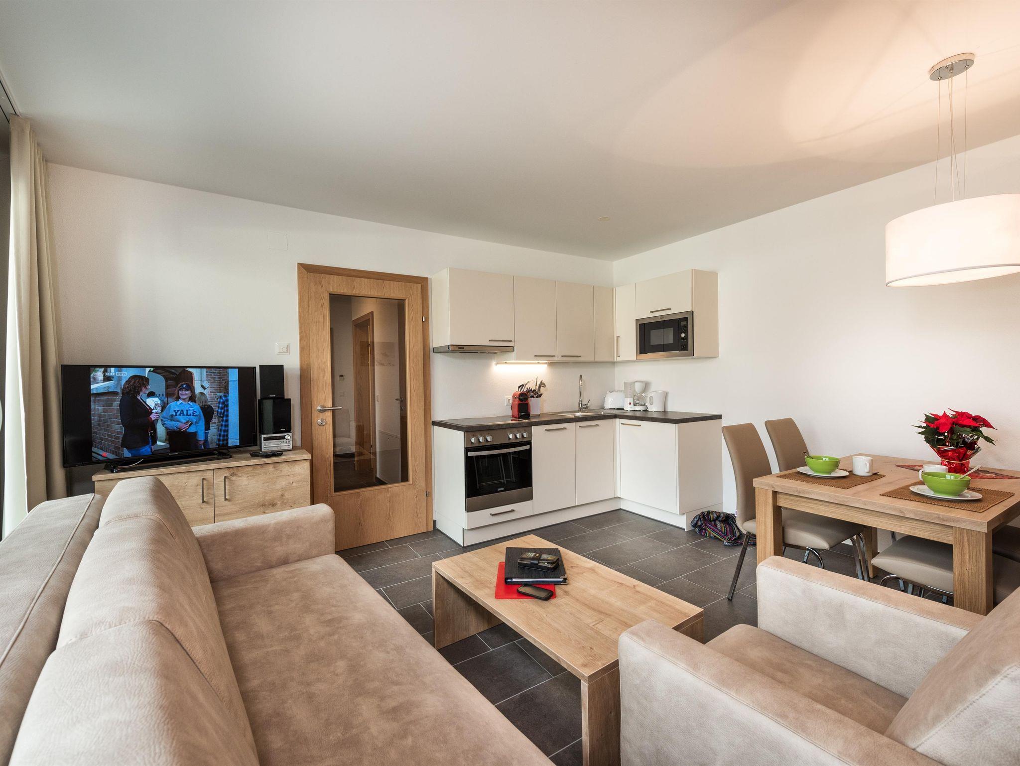 **** Niveau für 4–6 Personen, Wohnraum mit ca. 60-70 m² im 1. Stock, 2 Schlafzimmer (Doppelbett, Kleiderschrank, Vorraum mit Garderobe, 2 Bäder, Offener Wohn- Küche- Essbereich, Hochwertige großzügige Einbauküche (im Wohnbereich integriert), LCD Fernseher, Musikanlage, Kostenloses W-LAN, Balkon oder Terrasse, Bettwäsche und Handtücher inklusive