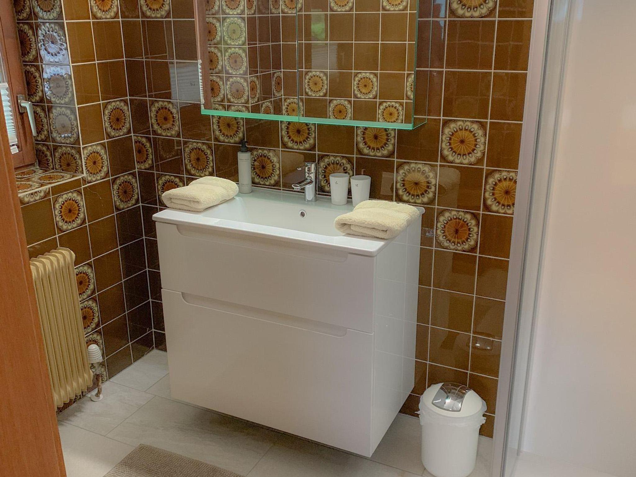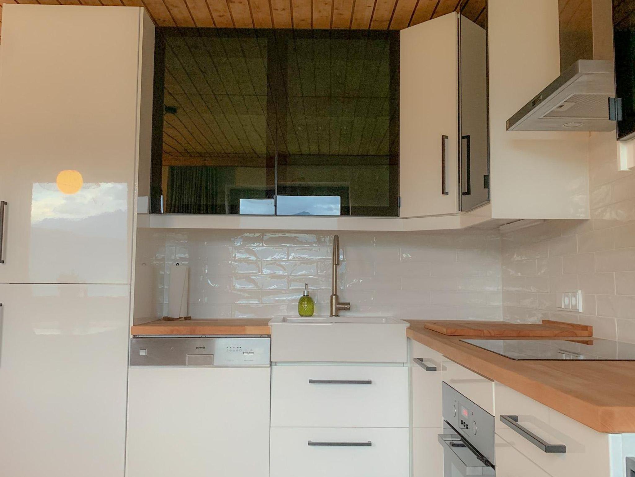 Die Küche ist mit vier Induktionsplatten, Geschirrspüler, Kühlschrank mit Tiefkühlbereich, Backofen und Kaffeemaschine ausgestattet. Vorraum mit Garderobe, Balkon mit 12m² mit Seeblick, gratis Internet, zwei Stellplätze am Gebäude.