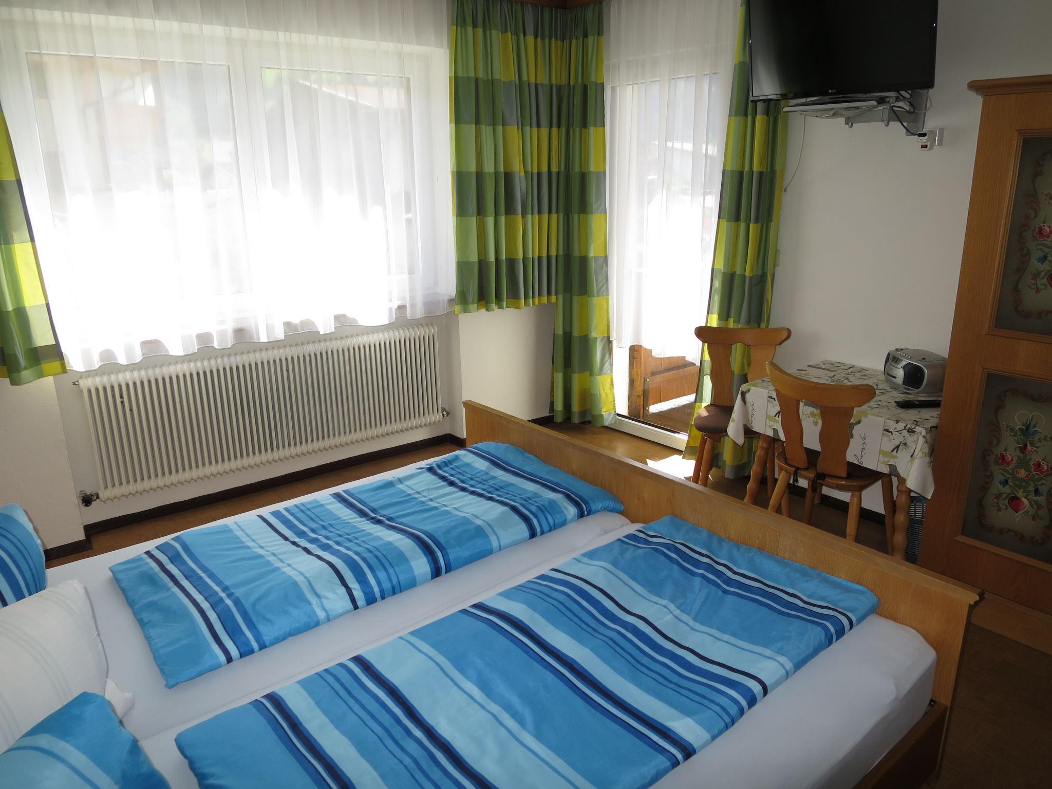 "Elisabeth", 5-room apartment 100 m2 on 1st floor. Practical furnishings: 2 double bedrooms, each room with hand-basin. Exit to the balcony. 1 double bedroom with hand-basin and shower/WC. Exit to the balcony. 1 room with 1 bed, 1 sofabed, 1 double bed and hand-basin. Exit to the balcony. Kitchen-/living room (4 hot plates, oven, dishwasher, toaster, kettle, microwave, electric coffee machine) with dining nook and satellite TV. Bath/shower, sep. WC. Carpet. Balcony. Balcony furniture. Beautiful view of the mountains. Facilities: Internet (WiFi, free). Please note: non-smokers only. Smoke alarm, fire extinguisher. When there are less than the maximum number of guests staying at the property, not all of the housing units will be available for use.