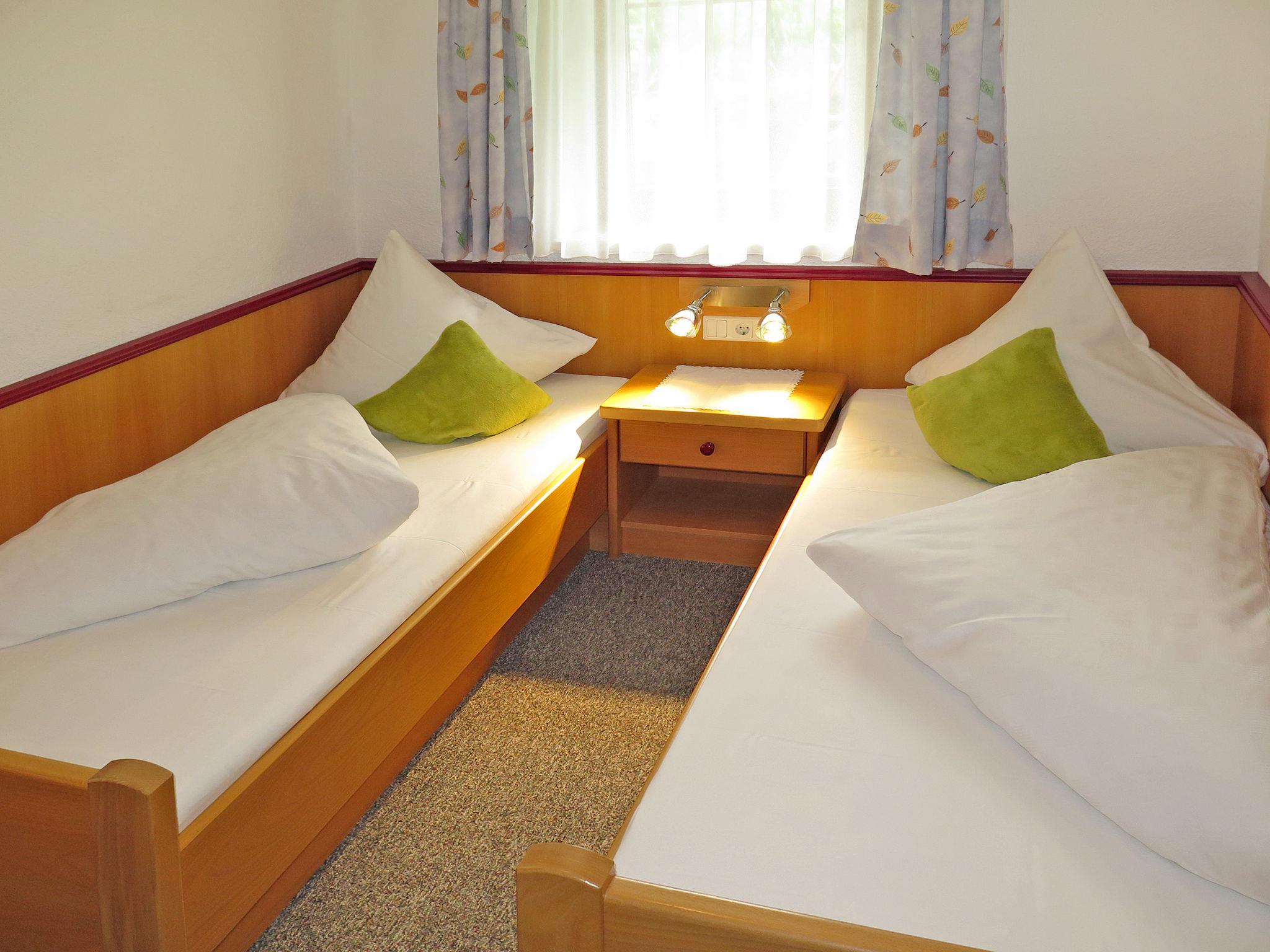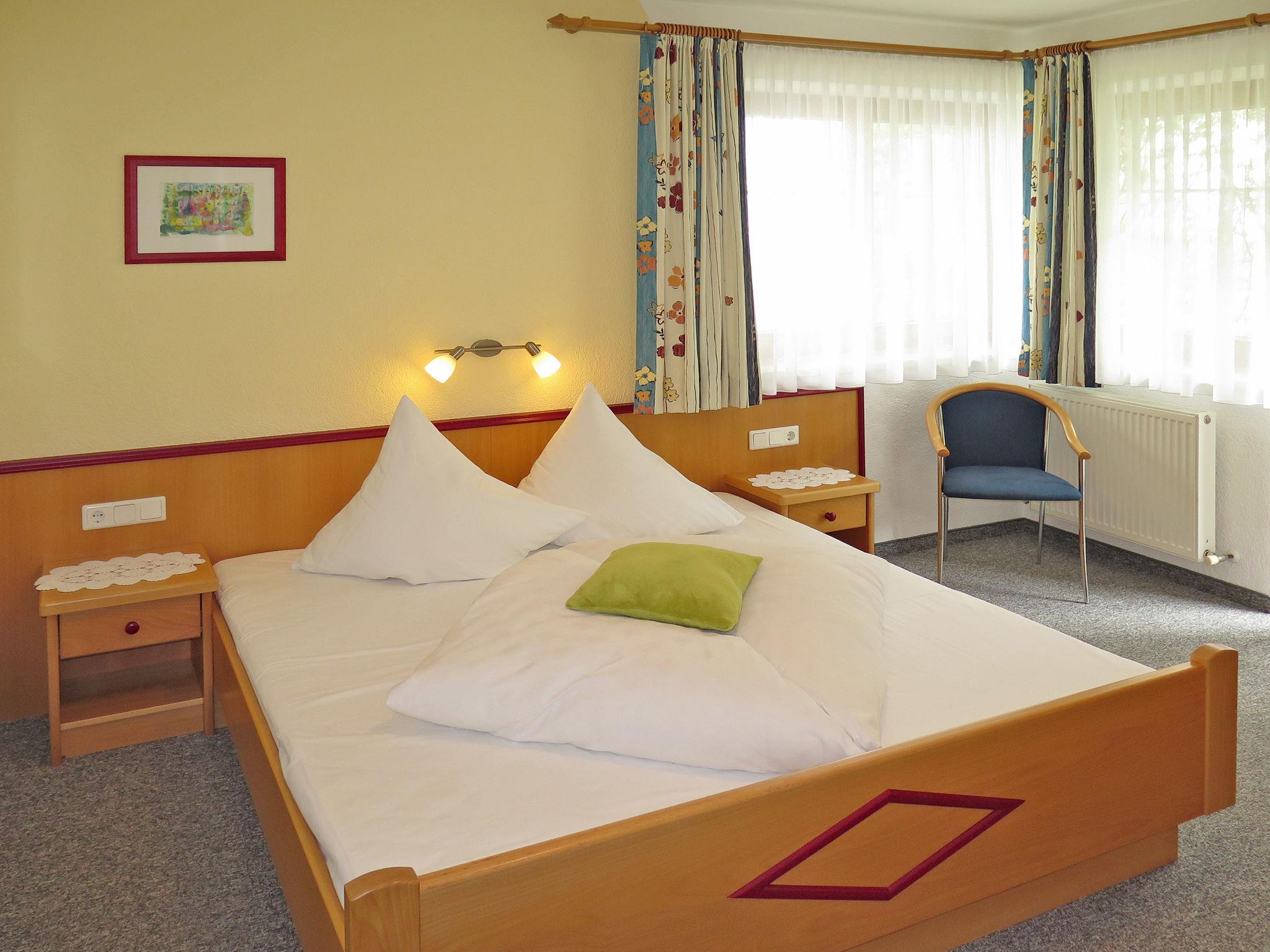 4-room apartment 84 m2, on the ground floor. Bright, practical furnishings: 1 double bedroom with hand-basin. 1 double bedroom. 1 small room with 2 beds. Kitchen-/living room (4 hot plates, oven, dishwasher, toaster, kettle, electric coffee machine) with dining table and satellite TV (flat screen). Shower, sep. WC. Heating. Carpet. Terrace 12 m2 partly roofed, lawn. Terrace furniture, deck chairs (2). Facilities: Internet (WiFi, free). Please note: non-smokers only. Smoke alarm, fire extinguisher. When there are less than the maximum number of guests staying at the property, not all of the bedrooms will be available for use.