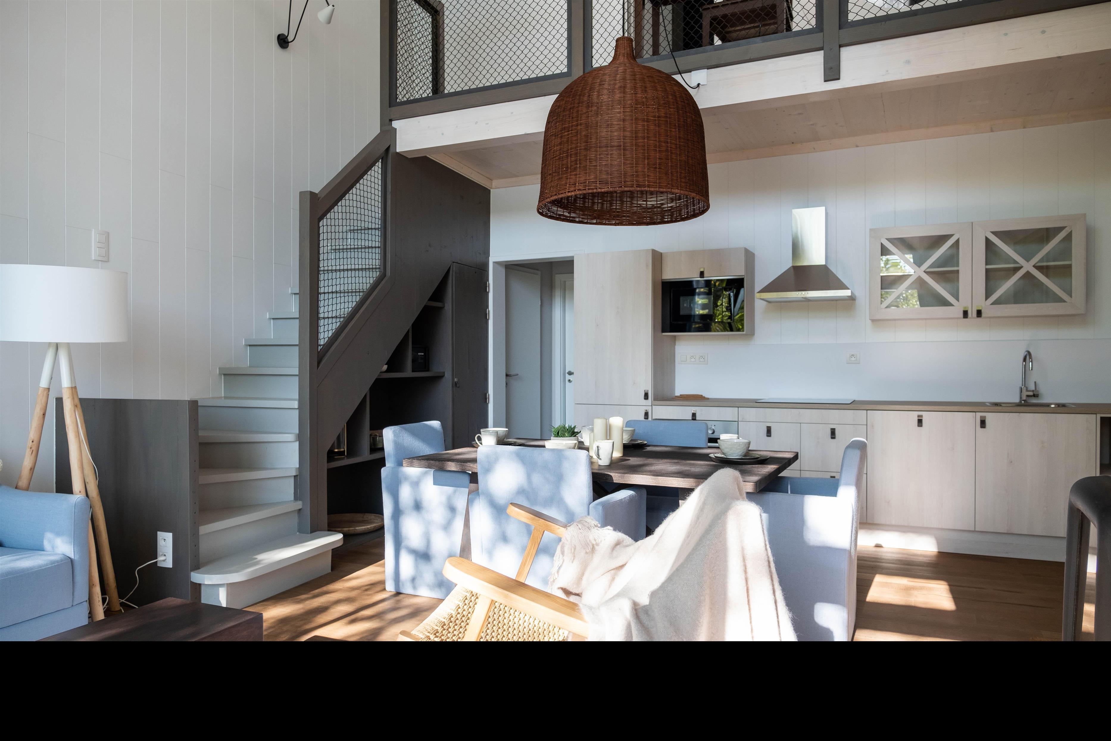 Stueetage: (Stue(Fjernsyn(Smart-TV), spisebord, pejs, sofahjørne), åbent køkken(elkedel, komfur, kaffemaskine(kaffepude), ovn, opvaskemaskine , køle-fryseskab), soveværelse(enkeltseng(80 x 200 cm), enkeltseng(80 x 200 cm)), badeværelse(bruser(Walk-in-bruser), håndvask), toilet(håndvask, toilet), Internetadgang) På 1. etage: (soveværelse(dobbeltseng(160 x 200 cm)), badeværelse(badekar, bruser, håndvask, toilet), åbent rum(sofahjørne)) balkon eller terrasse, have, cykelopbevaring, havemøbler, parkering, parking lot(public), dam, swimmingpool(deles med andre gæster, indendørs), swimmingpool(deles med andre gæster, udendørs), petanquebane(deles med andre gæster), padelbane, loungemøbler, hyggespil, Ladestation til el-biler