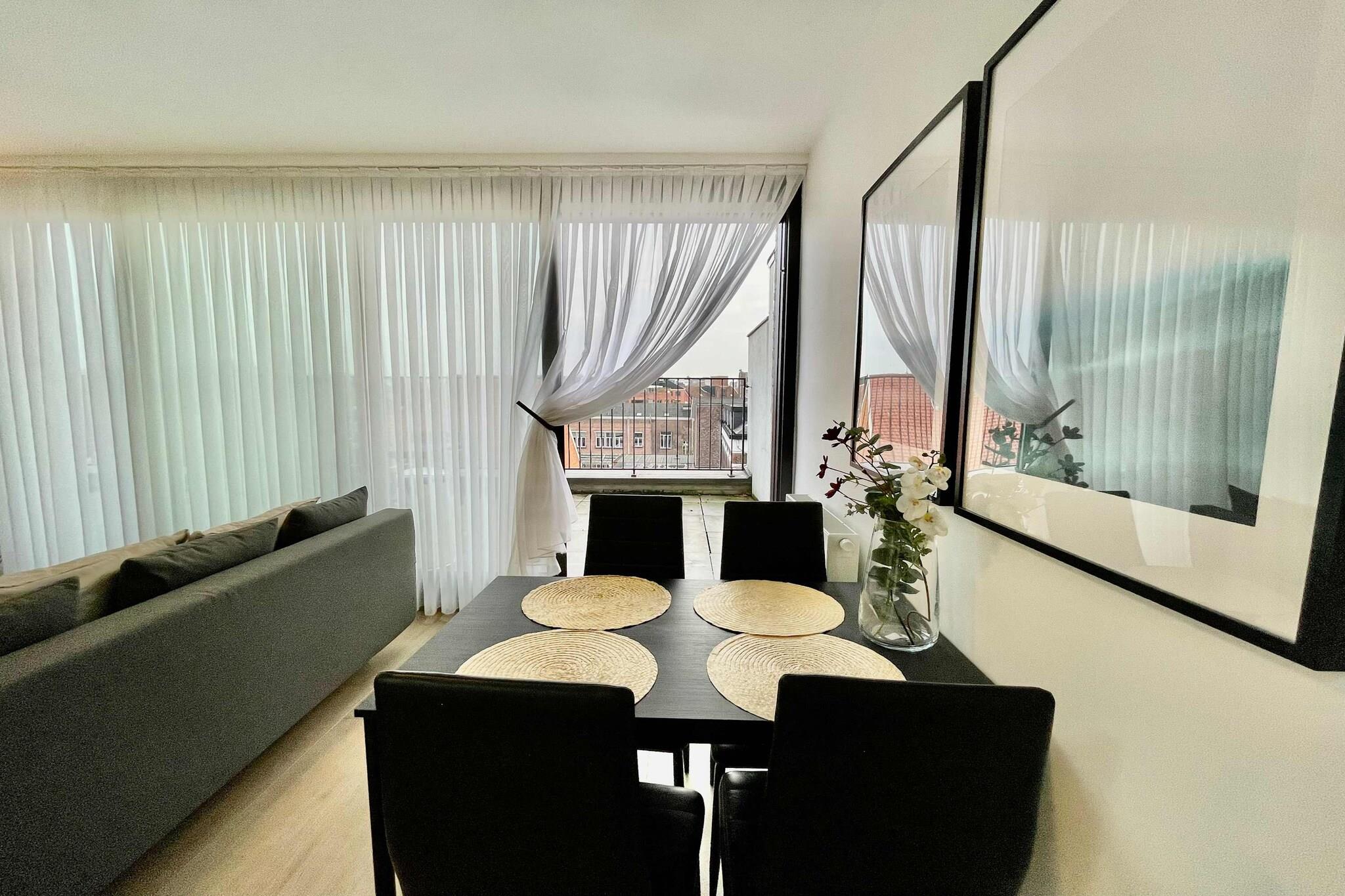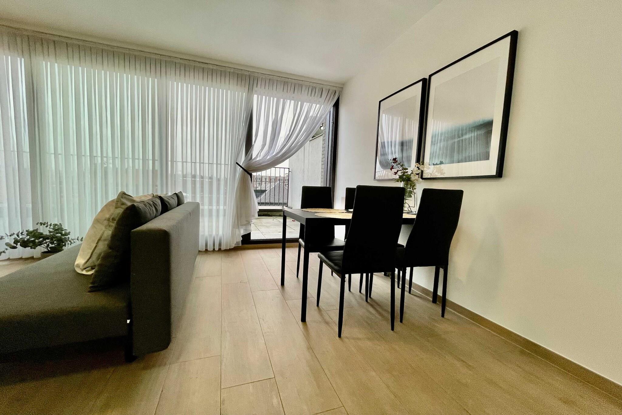 Denne sofistikerede suite ligger i hjertet af Antwerpen og tilbyder et lyst og moderne fristed nær det berømte Diamantkvarter. Uanset om man besøger kvarteret på en kort storbyferie eller et længere ophold, vil gæsterne nyde et raffineret miljø, der balancerer moderne stil med ubesværet adgang til kvarterets bedste vartegn og offentlig transport. Interiøret er mesterligt udvalgt med et rummeligt soveværelse med en luksuriøs kingsize-seng og en alsidig sovesofa i opholdsstuen med plads til op til to gæster. For dem, der balancerer arbejde og rejser, er der et dedikeret bærbarvenligt arbejdsområde samt højhastigheds trådløst internet. Køkkenet er fuldt udstyret til komplet selvforplejning, inklusive ovn, køleskab, fryser og et komplet sæt køkkengrej. Specialiserede faciliteter såsom kaffemaskine og elkedel sikrer en problemfri start på dagen, mens vaskemaskinen og tøjopbevaring i enheden tilbyder ekstra bekvemmelighed til længerevarende ophold. Det veludstyrede badeværelse er udstyret med førsteklasses essentielle ting, herunder hårtørrer, shampoo, balsam og showergel. Familier er varmt velkomne, da suiten er fuldt egnet til både spædbørn og børn. Sikkerhed er prioriteret med integreret varme og omfattende røg- og kuliltedetektion. Gæsterne kan også drage fordel af en bagageafleveringsservice og betalte parkeringsmuligheder lige ved siden af ejendommen. Beliggende i et fredeligt område... af byens centrum har suiten perfekt forbindelse til Antwerpens kulturelle højdepunkter og den historiske gamle bydel, som ligger inden for gåafstand.