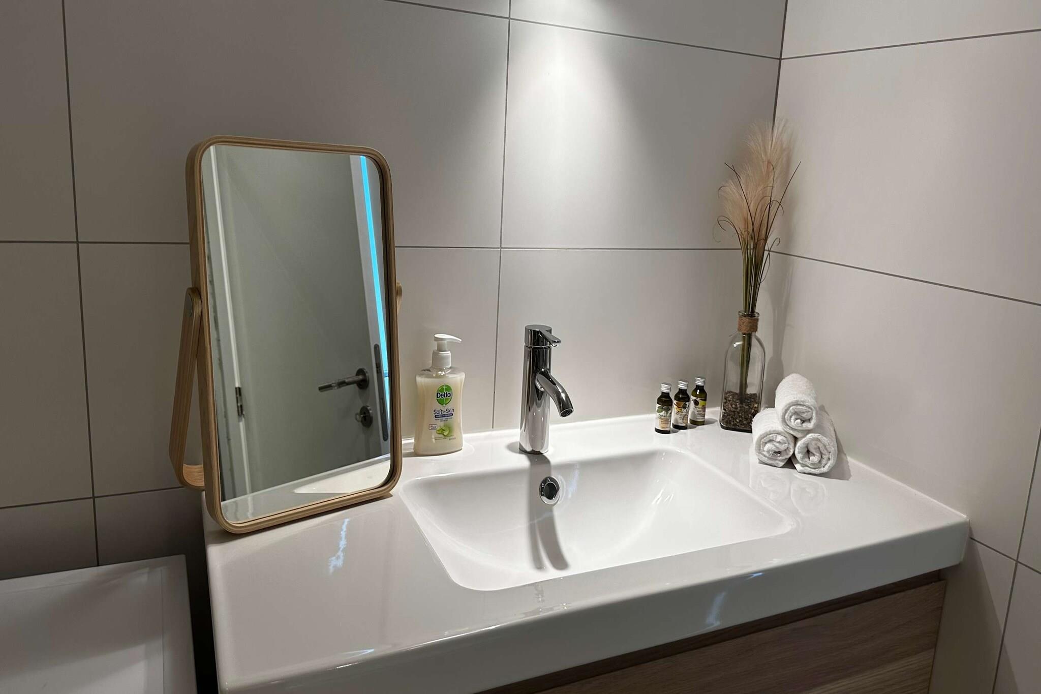 Beliggende på Lange Leemstraat i hjertet af Antwerpen tilbyder dette designorienterede ophold et sofistikeret fristed i byens ikoniske modedistrikt. Gæsterne vil nyde et raffineret, gåvenligt miljø, der perfekt balancerer moderne stil med ubesværet adgang til vartegn og offentlig transport. Interiøret er mesterligt sammensat til at rumme op til to gæster, med en komfortabel soveværelsesindretning designet til et afslappende ophold. For dem, der balancerer arbejde og rejser, er der et dedikeret bærbarvenligt arbejdsområde sammen med højhastigheds-trådløst internet og et fladskærms-tv. Køkkenet er fuldt udstyret til komplet selvforplejning med ovn, køleskab og kaffemaskine, mens vaskemaskinen i enheden og rigelig tøjopbevaring giver ekstra bekvemmelighed til længerevarende ophold. Det veludstyrede badeværelse er fyldt med førsteklasses essentielle ting, herunder hårtørrer, shampoo, balsam og kropssæbe. Familier er varmt velkomne, da suiten er velegnet til både spædbørn og børn. Sikkerhed og komfort prioriteres med integreret varme og omfattende røg- og kuliltedetektion. Gæsterne drager også fordel af bekvemmeligheden ved en bagageafleveringsservice og betalte parkeringsmuligheder i nærheden. Med sin blanding af overlegent design og central beliggenhed er denne OneLuxStay-residens... tilbyder en fornem oplevelse i Antwerpens mest stilfulde kvarter.