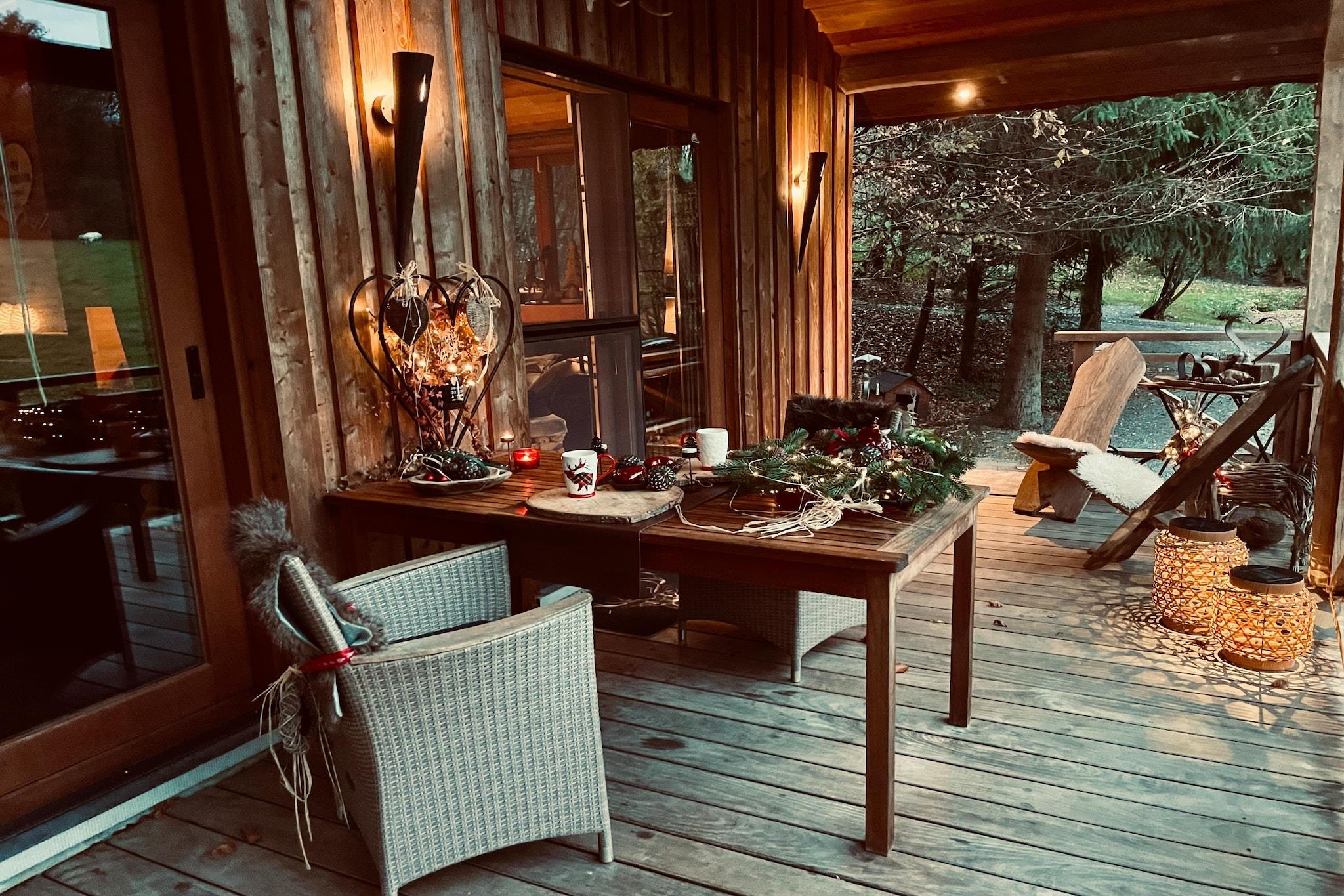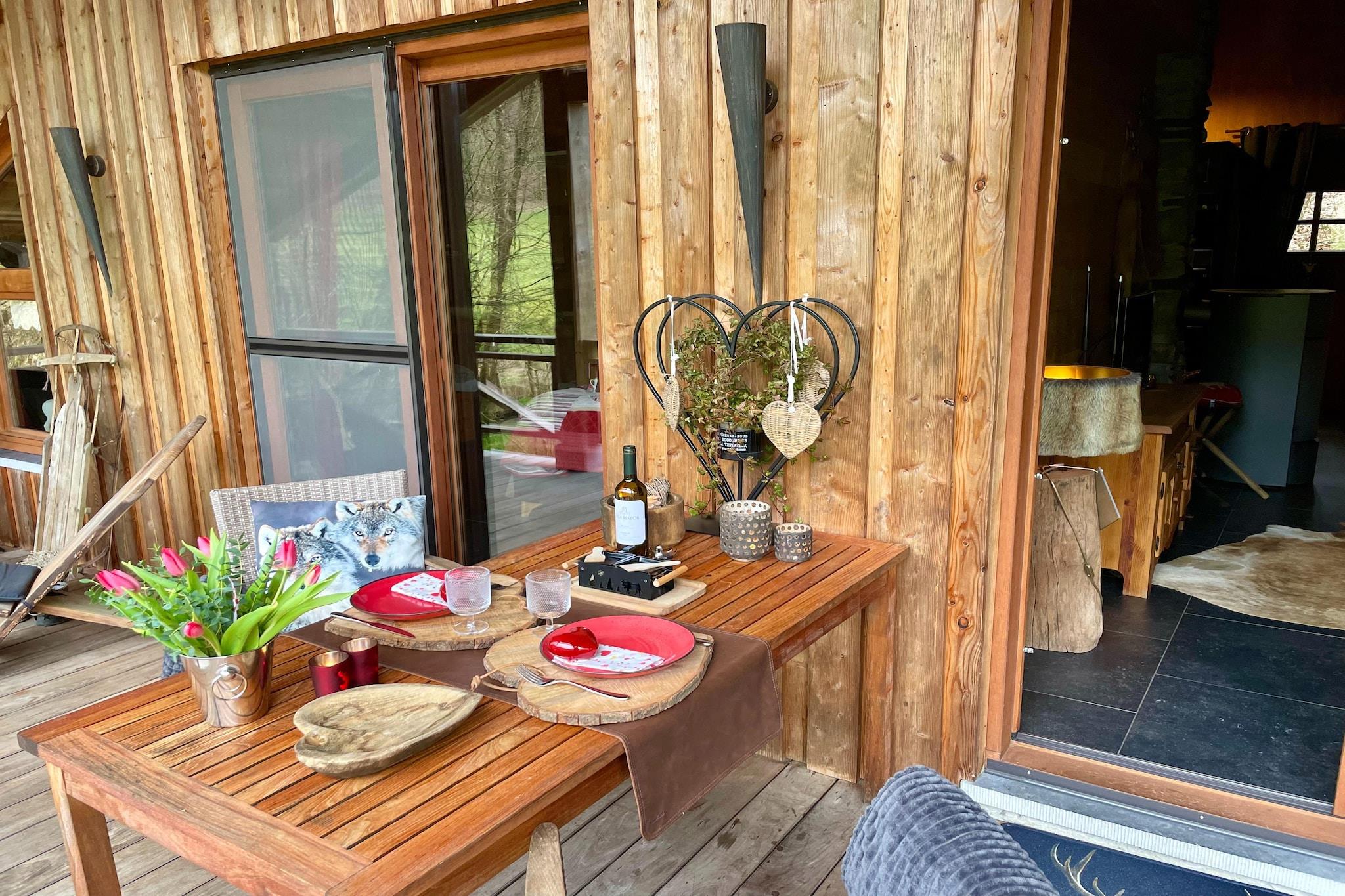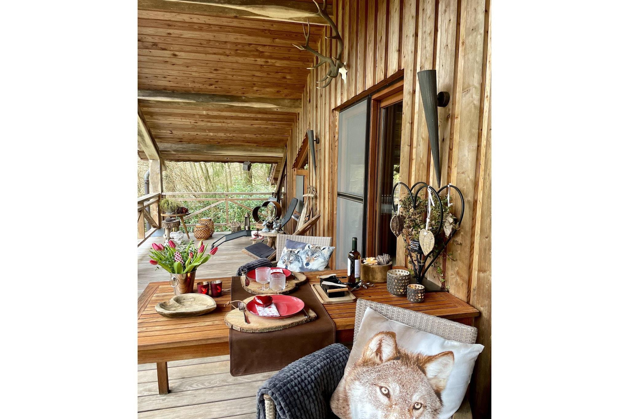Zeer hartelijke ontvangst van de gastvrouw. Alles is aanwezig voor een onvergetelijke romantische tijd & er is aan alles gedacht. Het interieur is tot in de kleinste details afgewerkt, alle mogelijke luxe en comfort zijn aanwezig, de chalet ligt mooi afgelegen in een rustige omgeving, ... echt perfect, een absolute aanrader!