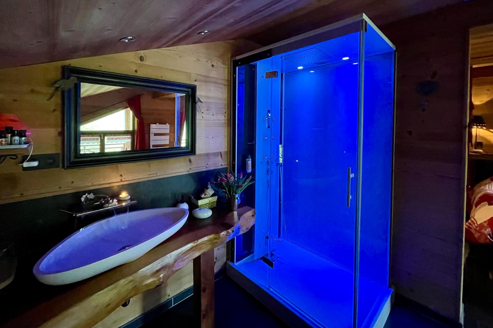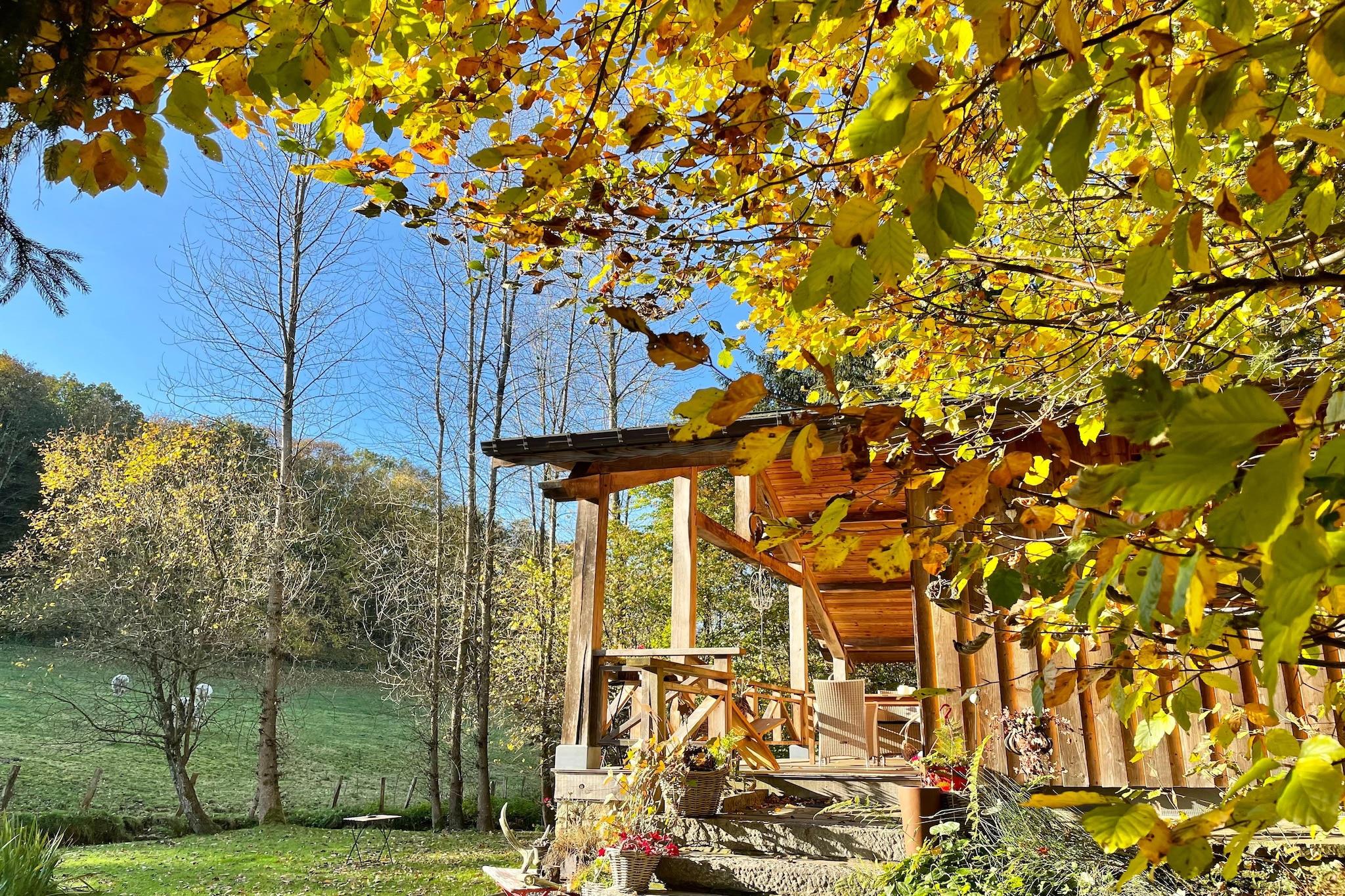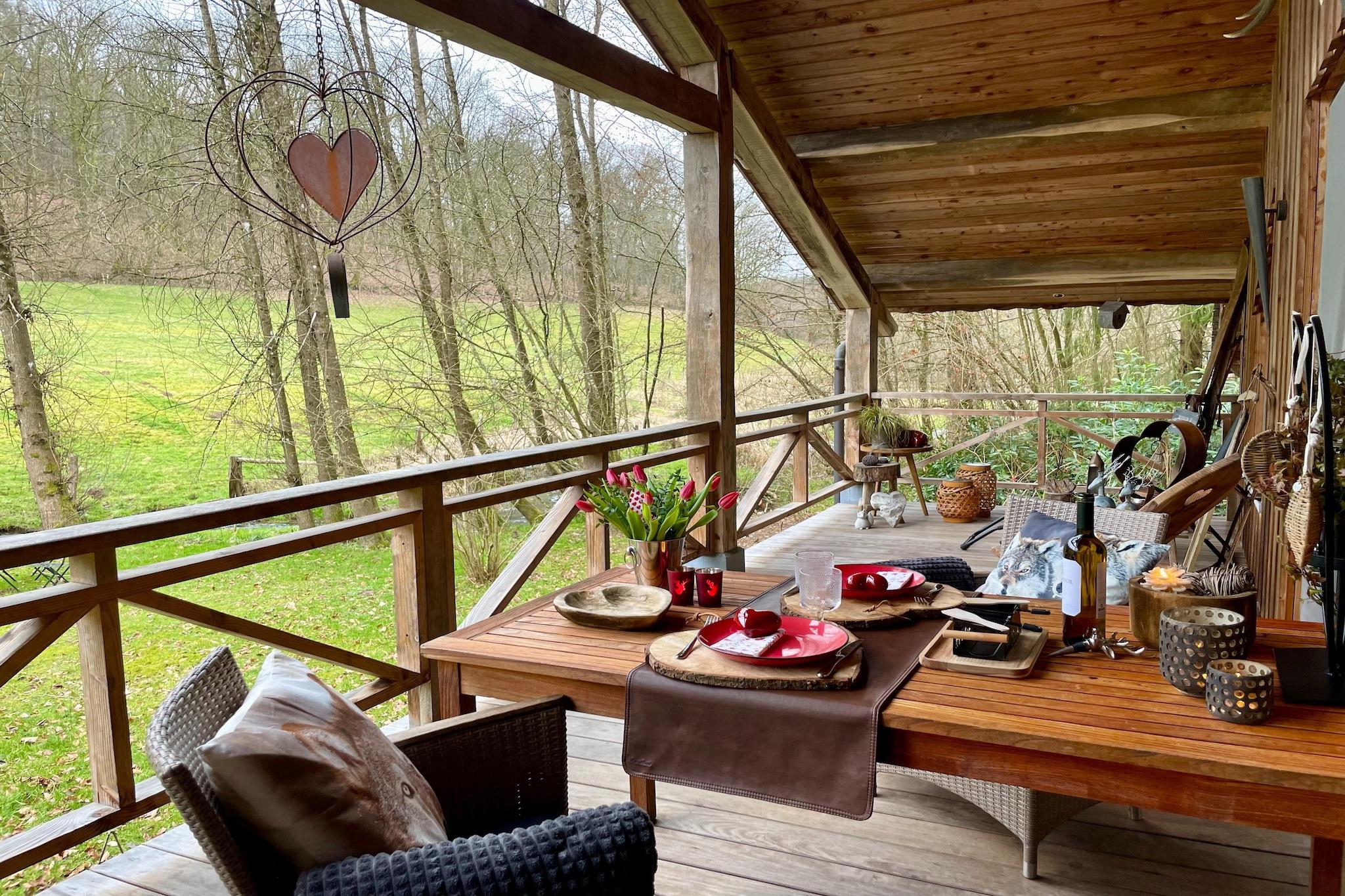 Zeer hartelijke ontvangst van de gastvrouw. Alles is aanwezig voor een onvergetelijke romantische tijd & er is aan alles gedacht. Het interieur is tot in de kleinste details afgewerkt, alle mogelijke luxe en comfort zijn aanwezig, de chalet ligt mooi afgelegen in een rustige omgeving, ... echt perfect, een absolute aanrader!
