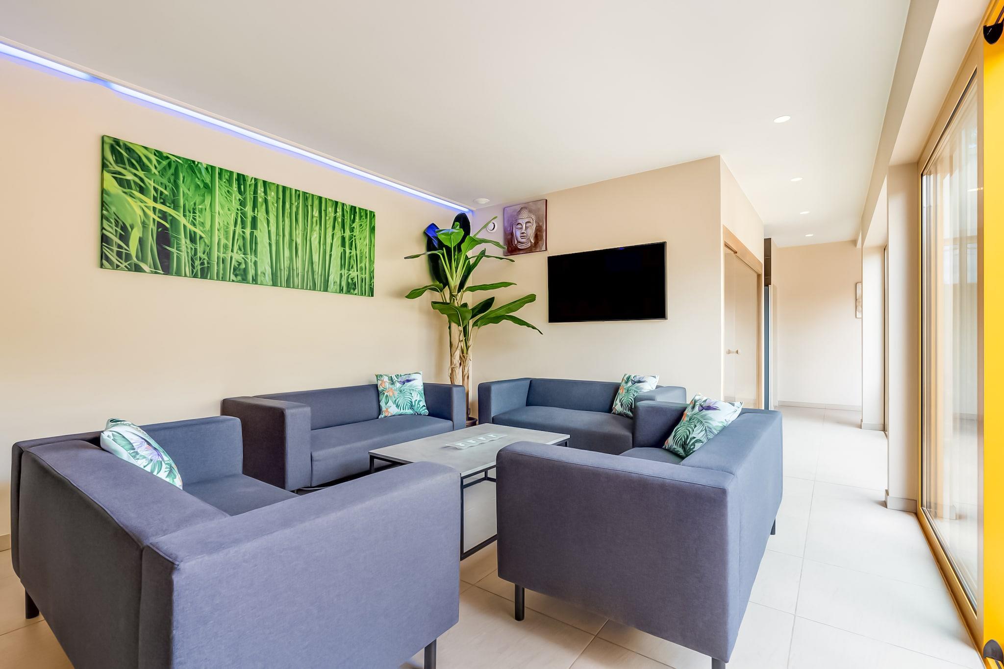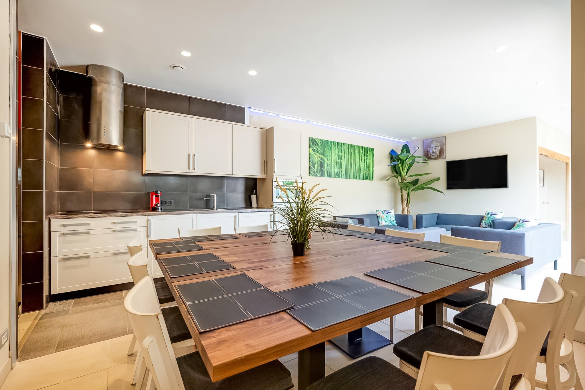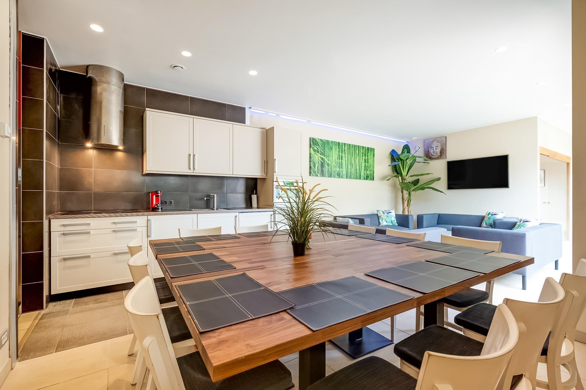Wellness og komfort i unikke rammer Dette smukt forvandlede feriehus i Avelgem, som tidligere var et privat afslapningscenter, tilbyder nu et fredfyldt tilflugtssted for op til 6 voksne og 2 børn. Nyd luksuriøse wellness-faciliteter, herunder en privat swimmingpool, beroligende sauna, udendørs boblebad og massagebrusere - alt sammen designet til at opfriske din krop og sjæl. Med hyggelige indendørs rum, et fuldt udstyret køkken, streamingtjenester og tankevækkende detaljer som en høj stol og børneseng, er dette hjem ideelt til en foryngende flugt med familie eller nære venner. Eventyr venter i Vestflandern Beliggende på et fredeligt, men alligevel forbundet sted, er du kun en kort køretur fra de kulturelle perler i Kortrijk, Ronse, Tournai og Waregem. Friluftselskere vil nyde direkte adgang til naturskønne vandre-, cykel- og mountainbikestier - inklusive stier fra den berømte Flandern Rundt. Tag en afslappet Haz-bådtur langs Schelde eller udforsk den rolige Bossuit-Kortrijk-kanal. Scooterudlejning er tilgængelig i nærheden for en sjov, fleksibel måde at udforske det omkringliggende landskab. Slap af, spis og slap af Slap af på den private terrasse med et stilfuldt loungesæt, parasol og havemøbler - perfekt til solbeskinnede eftermiddage eller en stille aften under forteltet. Mens villaen har et komplet køkken til hjemmelavede måltider, vil du finde dejlige spisesteder i nærliggende byer, der tilbyder lokalt belgisk køkken. Bemærk venligst: kæledyr er ikke tilladt, og sen udtjekning er tilgængelig efter anmodning (ekstra gebyr).