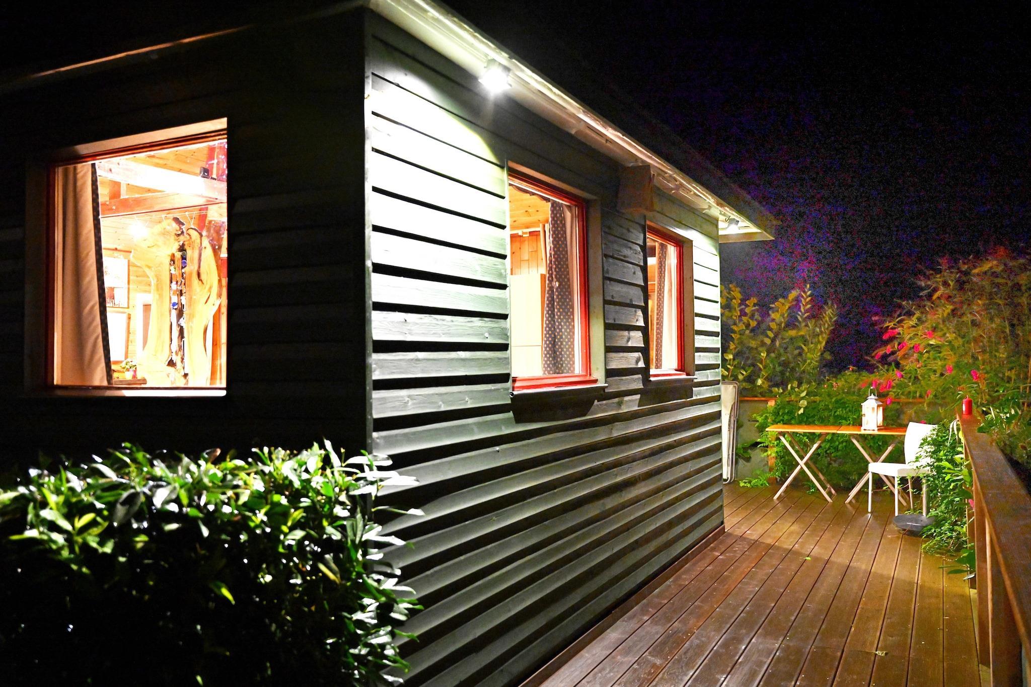 Stueetage: (spisestue, tekøkken(kakkelovn(træ), kogeplade(Komfur med fire kogeplader, induktion), kaffemaskine(espresso), mikrobølgeovn, opvaskemaskine , køle-fryseskab), Stue/soveværelse(dobbeltseng(160 x 210 cm), kakkelovn(træ)), badeværelse(badekar med bruser, bruser, håndvask, håndvask), toilet) garage, varme(elektrisk), terrasse(40 m2), cykelopbevaring, havemøbler, solstole, grill, parkering, liggestole, Parasol, strygebræt