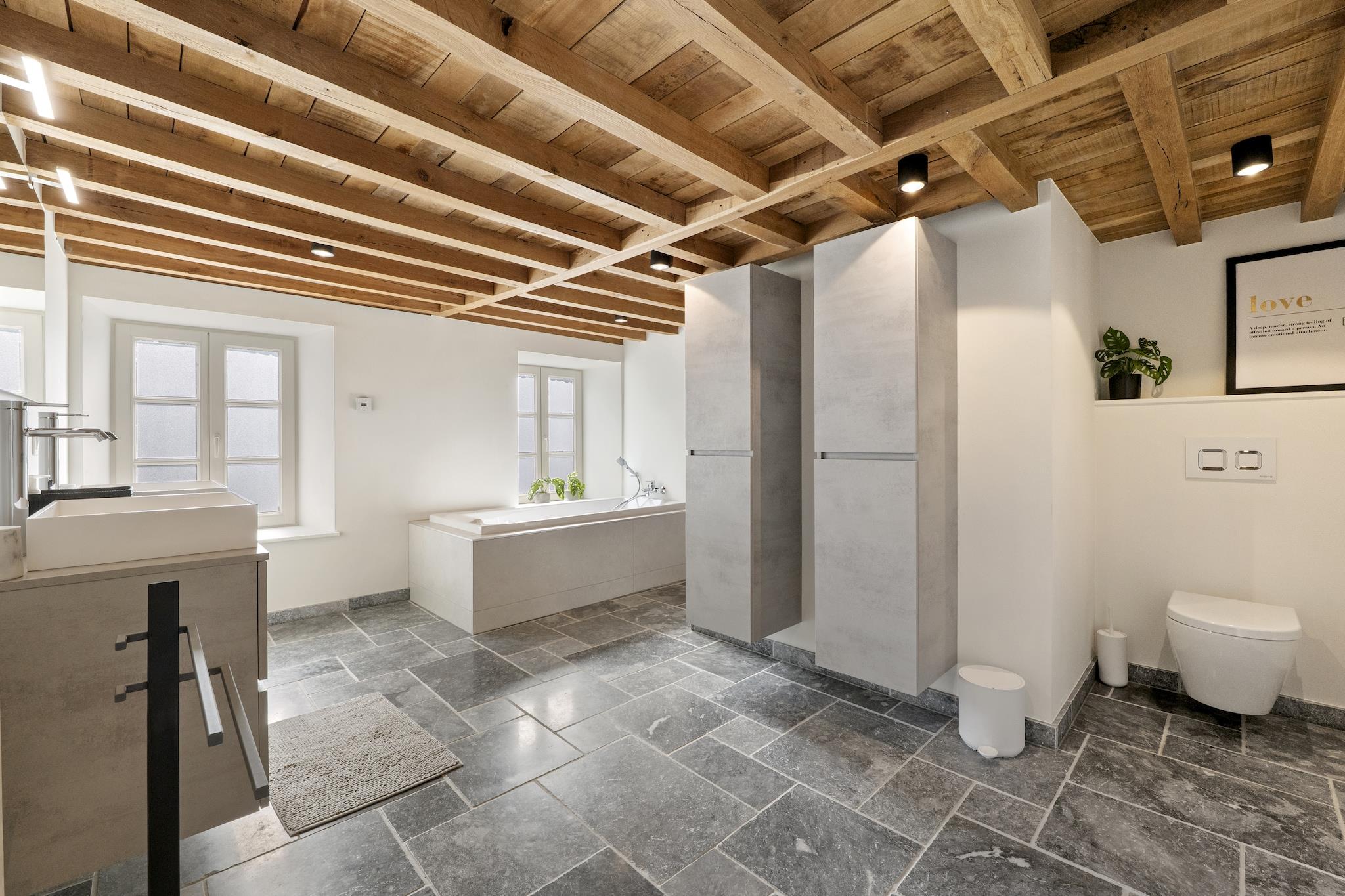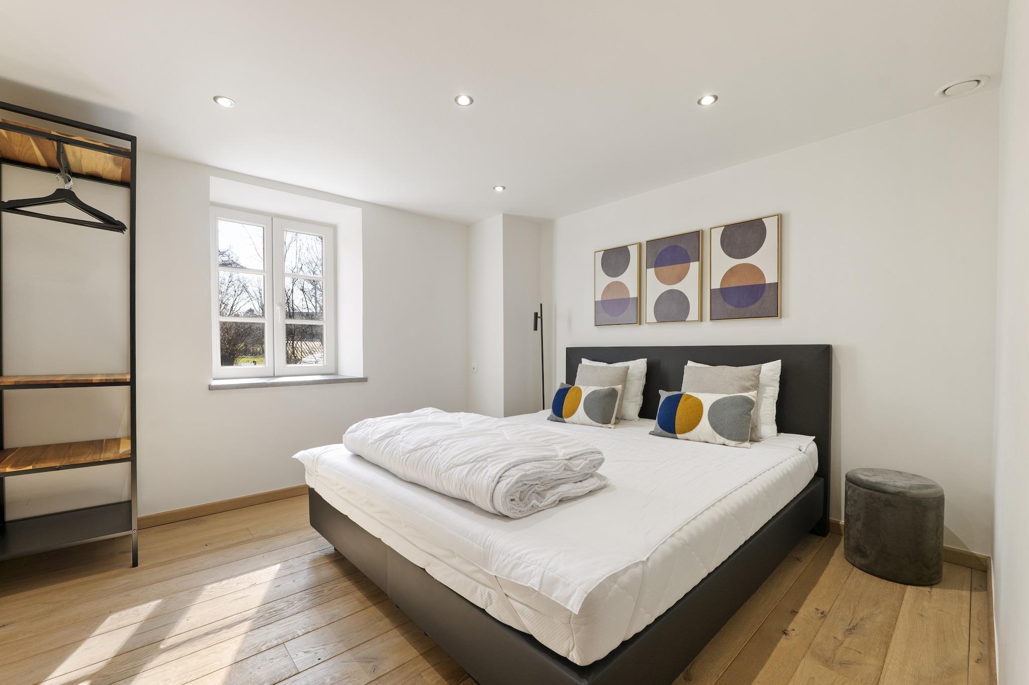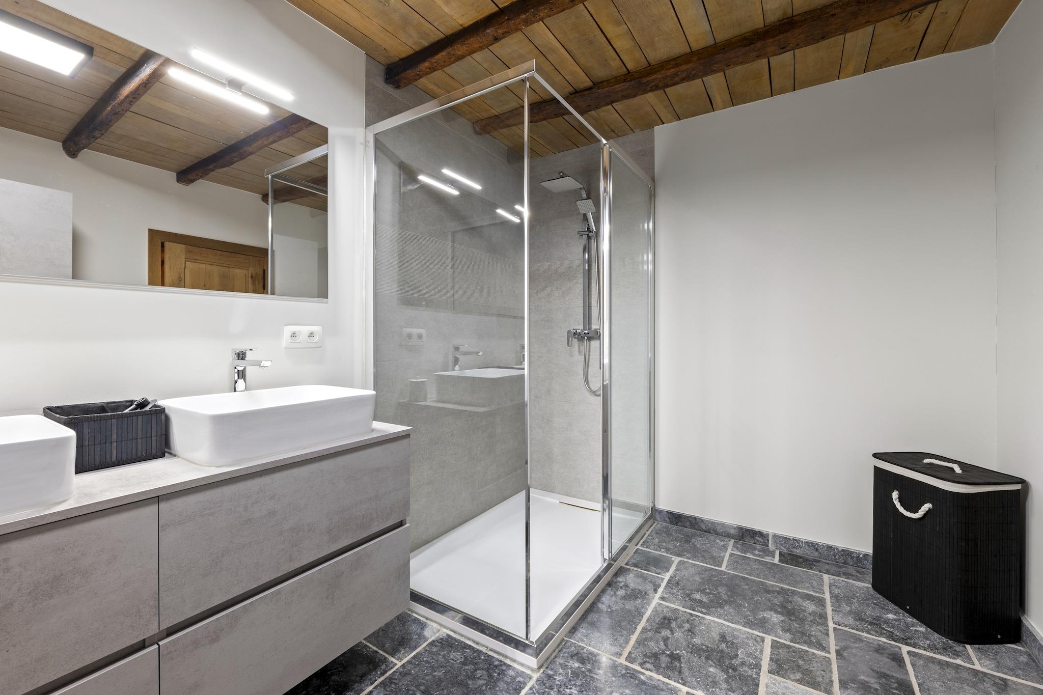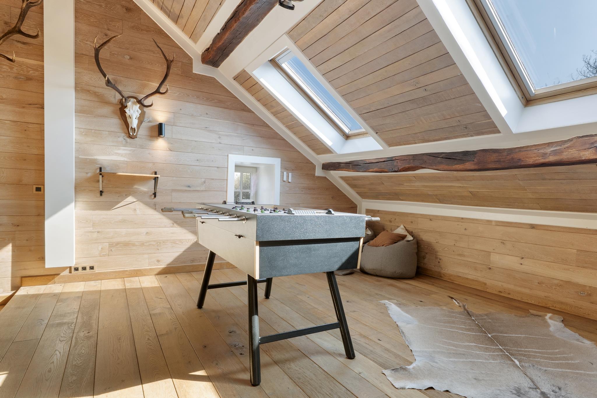 Velkommen til dette smukt indrettede landsted i Aywaille, der er egnet til 9 gæster og perfekt til familier eller vennegrupper, der ønsker at kombinere luksus, plads og natur. I stueetagen finder I en rummelig entré, en hyggelig stue, et fuldt udstyret køkken, en separat spisestue, et praktisk bryggers og et separat toilet. Første sal byder på et komfortabelt soveværelse og to stilfulde badeværelser: et med dobbelt håndvask, bruseniche, vaskemaskine og tørretumbler, og et med badekar, bruseniche, dobbelt håndvask og toilet, plus et ekstra separat toilet. På anden sal er der fire ekstra soveværelser, hvilket sikrer masser af privatliv for alle. Alle soveværelser er udstyret med en dobbeltseng, gulvvarme og aircondition, hvilket garanterer optimal komfort i enhver sæson. På mezzaninen finder I et hyggeligt opholdsrum med siddeområde, stereoanlæg, bordfodbold, dart, billard og brætspil – perfekt til lange, hyggelige aftener sammen. Udenfor kan I slappe af i den store have med rummelig terrasse, tøndesauna, gasgrill og komfortabelt loungesæt. Der er rigelig privat parkering, en barneseng er tilgængelig, og sengene er redt ved ankomst, så din ferie kan starte med det samme. Beliggenheden er en anden stor fordel. Nyd en smuk gåtur langs Ninglinspo, oplev Les Fonds de Quarreux eller besøg de imponerende Remouchamps-huler. Familier vil elske Wild World Safari Park. Inden for 30 minutters kørsel når du den verdensberømte Circuit de Spa-Francorchamps og vandfaldene i Coo. Den charmerende by Durbuy ligger også i nærheden. Her bor du i hjertet af Ardennerne, med natur, eventyr og afslapning inden for rækkevidde.