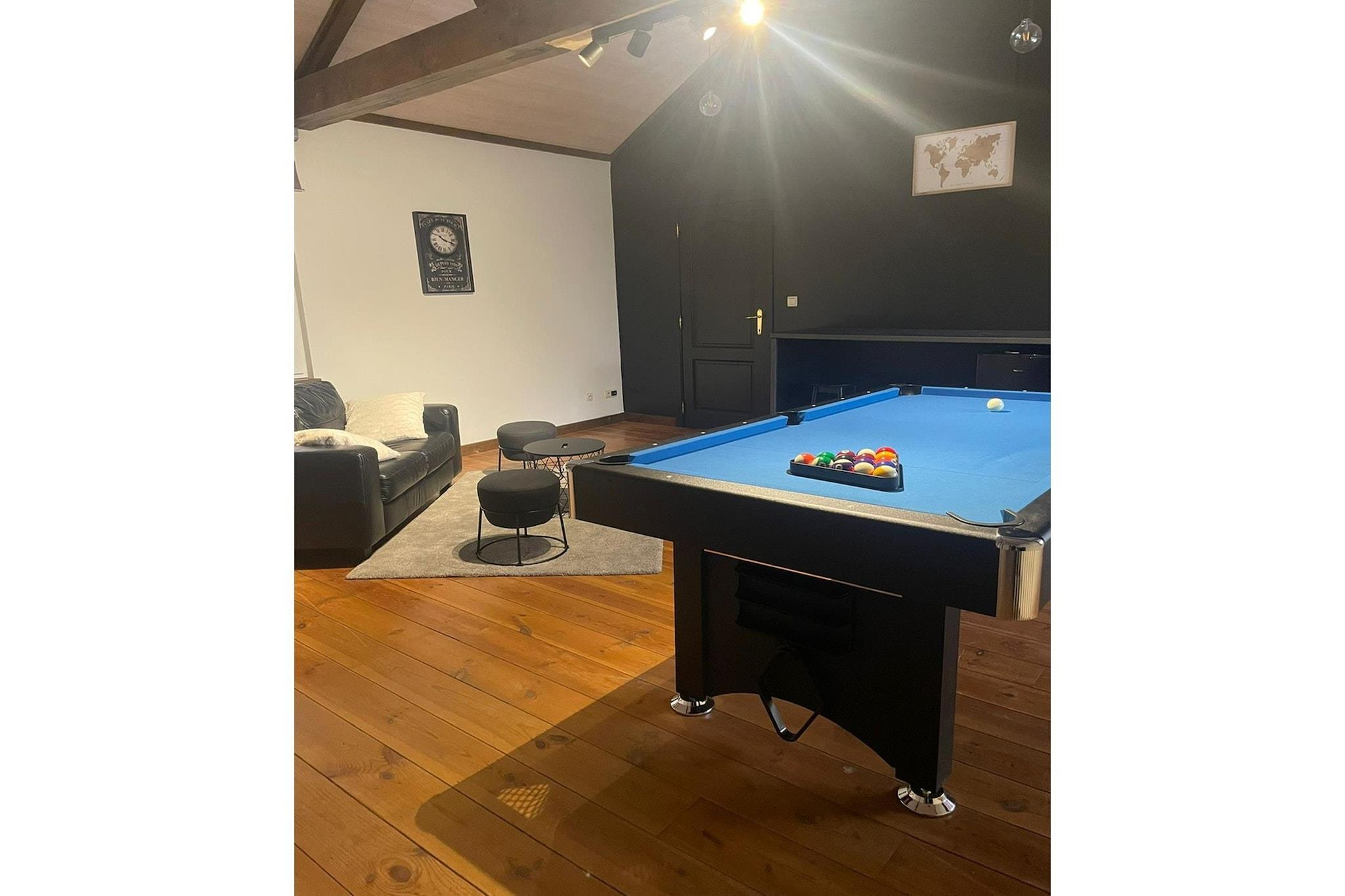 Pooltafel en dartsboard boven waren een absolute meerwaarde voor onze tieners die zo een eigen verdieping hadden.