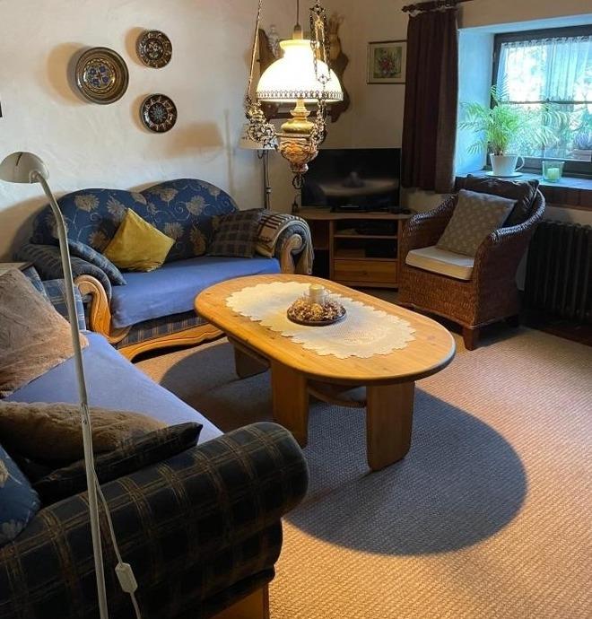 Die Ferienwohnung ist Teil eines liebevoll restaurierten Eifeler Bauernhauses. Sie verfügt über einen separaten Eingang. Ihr Auto können Sie direkt vor der Haustür abstellen. Im liebevoll dekorierten Wohnzimmer können Sie es sich auf einer bequemen Sitzgruppe gemütlich machen. Natürlich sind auch ein TV-Gerät sowie ein Radio vorhanden.