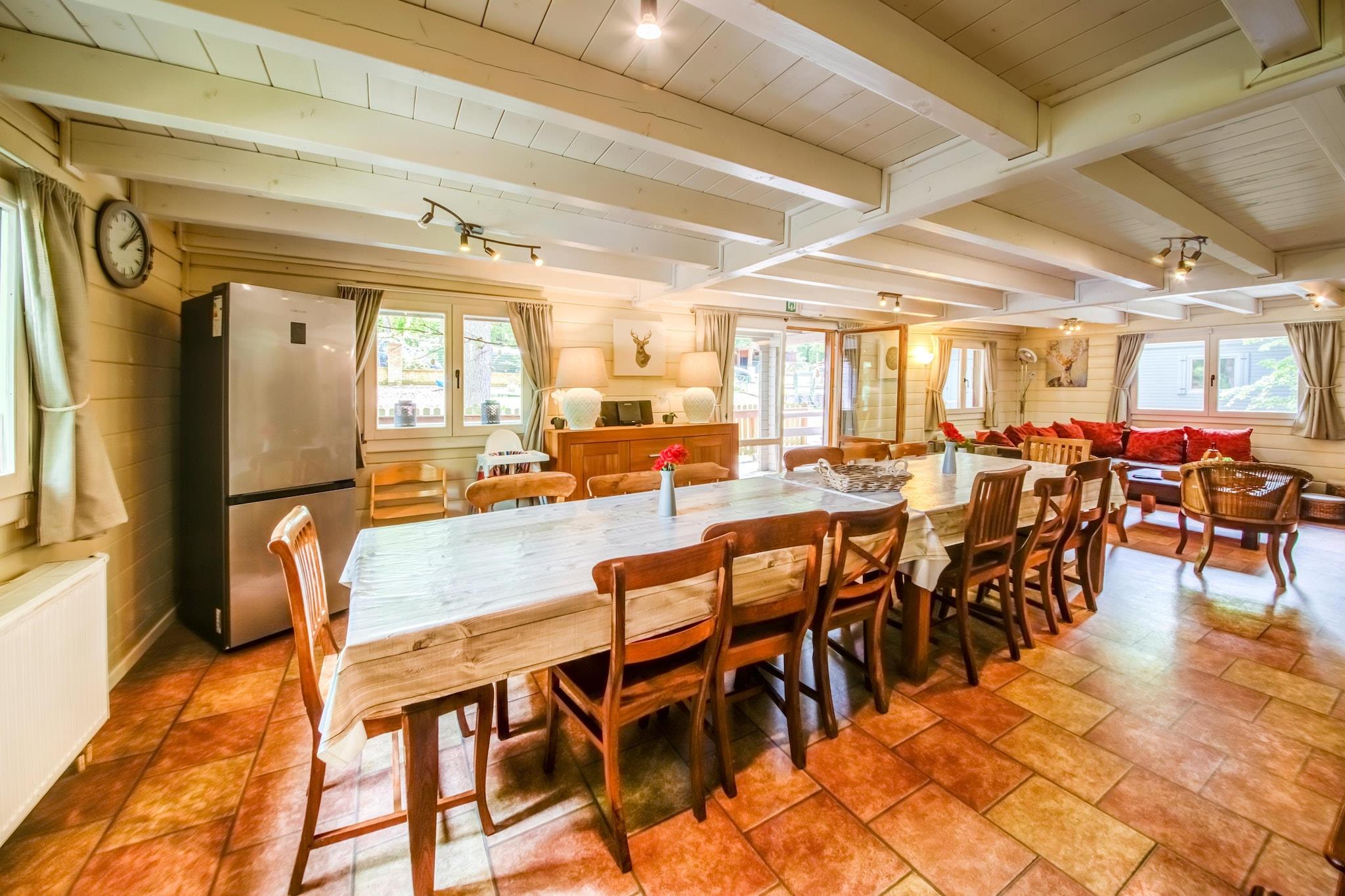 Charmerende hytte med sauna, boblebad og indhegnet have nær Durbuy – til 10 gæster Velkommen til La Coccinelle, en varm og charmerende træhytte til op til 10 gæster, fredeligt beliggende nær Barvaux og Durbuy, i hjertet af Ardennerne. Dette hyggelige feriehus kombinerer den autentiske atmosfære i en træhytte med moderne komfort, hvilket gør det til det perfekte sted for familier eller vennegrupper, der ønsker at nyde naturen, roen og tiden sammen. Indenfor finder du en indbydende stue og spisestue med TV og brændeovn, perfekt til afslappende aftener efter en dag udendørs. Det fuldt udstyrede åbne køkken har et gaskomfur med seks kogezoner, ovn, mikrobølgeovn, opvaskemaskine, kaffemaskine og køleskab med fryser, hvilket gør det nemt at lave mad til hele gruppen. Huset tilbyder fem komfortable soveværelser, fordelt på to etager, og flere badeværelser med badekar, bruser og håndvaske. For ekstra afslapning er der et privat wellness-område med infrarød sauna og boblebad, ideelt efter en vandretur eller cykeltur gennem Ardennerne. Der er også masser af underholdning. I opholdsrummet med billard og bordfodbold kan alle have det sjovt sammen, mens verandaen og de overdækkede terrasser inviterer til at nyde naturen i enhver sæson. Udenfor finder du en stor indhegnet have med terrasse, grill, havemøbler og en petanquebane. Børnene kan lege sikkert på legeredskaberne, mens de voksne slapper af i de fredelige grønne omgivelser. Beliggenheden er perfekt til at udforske regionen. Inden for få minutter når du Durbuy, kendt som verdens mindste by, med dens charmerende restauranter, terrasser og butikker. Talrige vandrestier, cykelruter, kajakmuligheder og naturområder er i nærheden. Kæledyr er velkomne (maks. 2) mod et tillæg på EURO7 pr. kæledyr pr. nat, så din firbenede ven også kan nyde et ophold i Ardennerne. På grund af de rolige omgivelser udlejes huset ikke til grupper af unge.