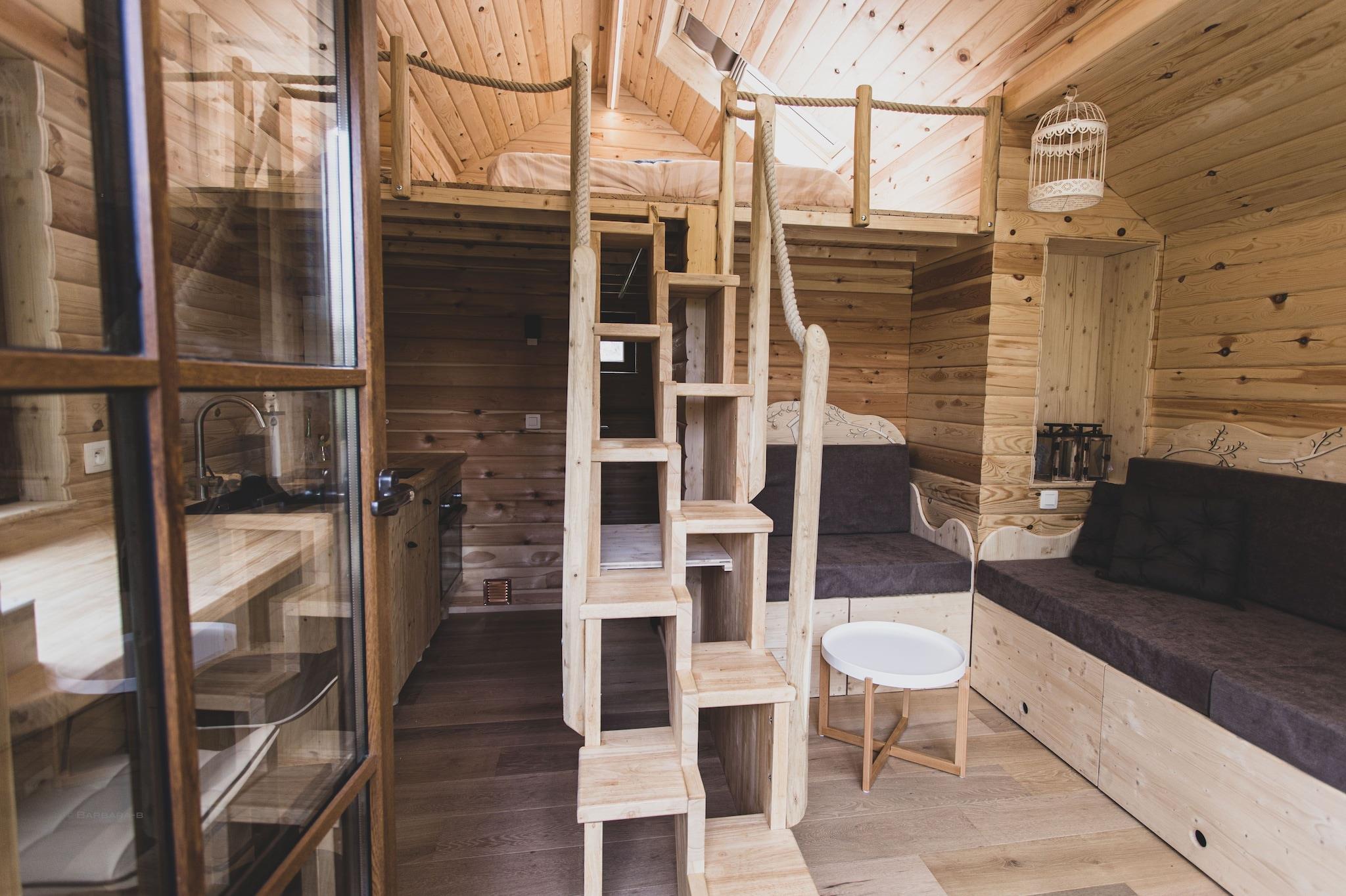 Gemt væk i den fredfyldte landsby Bohon (Barvaux-sur-Ourthe), kun 3 km fra Durbuy, tilbyder denne unikke hytte til 2 gæster en fredelig flugt med et strejf af luksus. Omgivet af frodige grønne områder og kun 500 m fra floden Ourthe, er det det perfekte tilflugtssted for par, der søger natur, wellness og privatliv. Den hyggelige bjælkehytte har et soveværelse på mezzanin med en komfortabel dobbeltseng og et varmt interiør med træaccent. Et fuldt udstyret tekøkken omfatter en keramisk kogeplade, ovn, kaffemaskine, elkedel, brødrister og køleskab med fryser. Badeværelset indeholder bruser, håndvask og toilet. Slap af i den private sauna, slap af i den infrarøde sauna, eller nyd det skandinaviske spabad på den rummelige terrasse omgivet af natur. Du finder også liggestole, badekar eller bruser og komfortable havemøbler, perfekt til at nyde en morgenkaffe eller aftendrink udendørs. Til køligere dage holder elvarme interiøret hyggeligt og indbydende. Altanen eller terrassen er et ideelt sted at se solnedgangen eller slappe af efter en gåtur i den nærliggende skov.