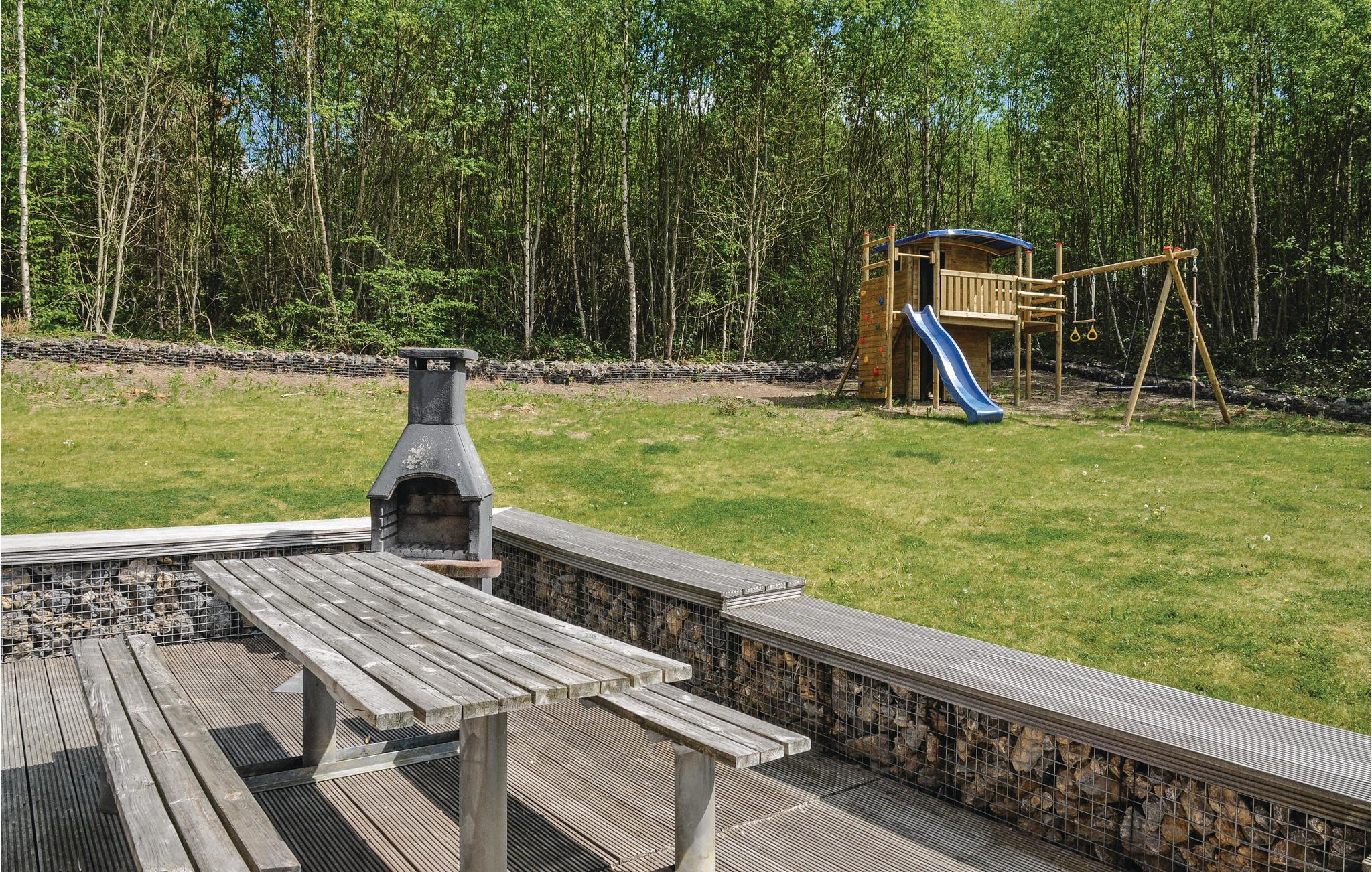 Feriehuset L'Arche ligger i rolige omgivelse 500 m fra Le Golf de Durbuy og 4 km fra byen Durbuy. Det smagfuldt indrettede hus liger på en blid skråning, der støder til de skovklædte bakker. På den sydvendet terrasse kan I slappe af eller holde lange grillaftener, mens børnene leger på legepladsen. I husets indre finder I en sauna og solariet samt den hyggelige dagligstue med brændeovn. Badeværelset i stueetagen er indrettet til gæster med begrænset mobilitet. Tips: kajak, mountainbike og vandringer i Ardennerne. Tag i forlystelsesparken 2 km herfra med hele familien. Besøg byen Durbuy, slottet i La Roche og hulen i Remouchamps.