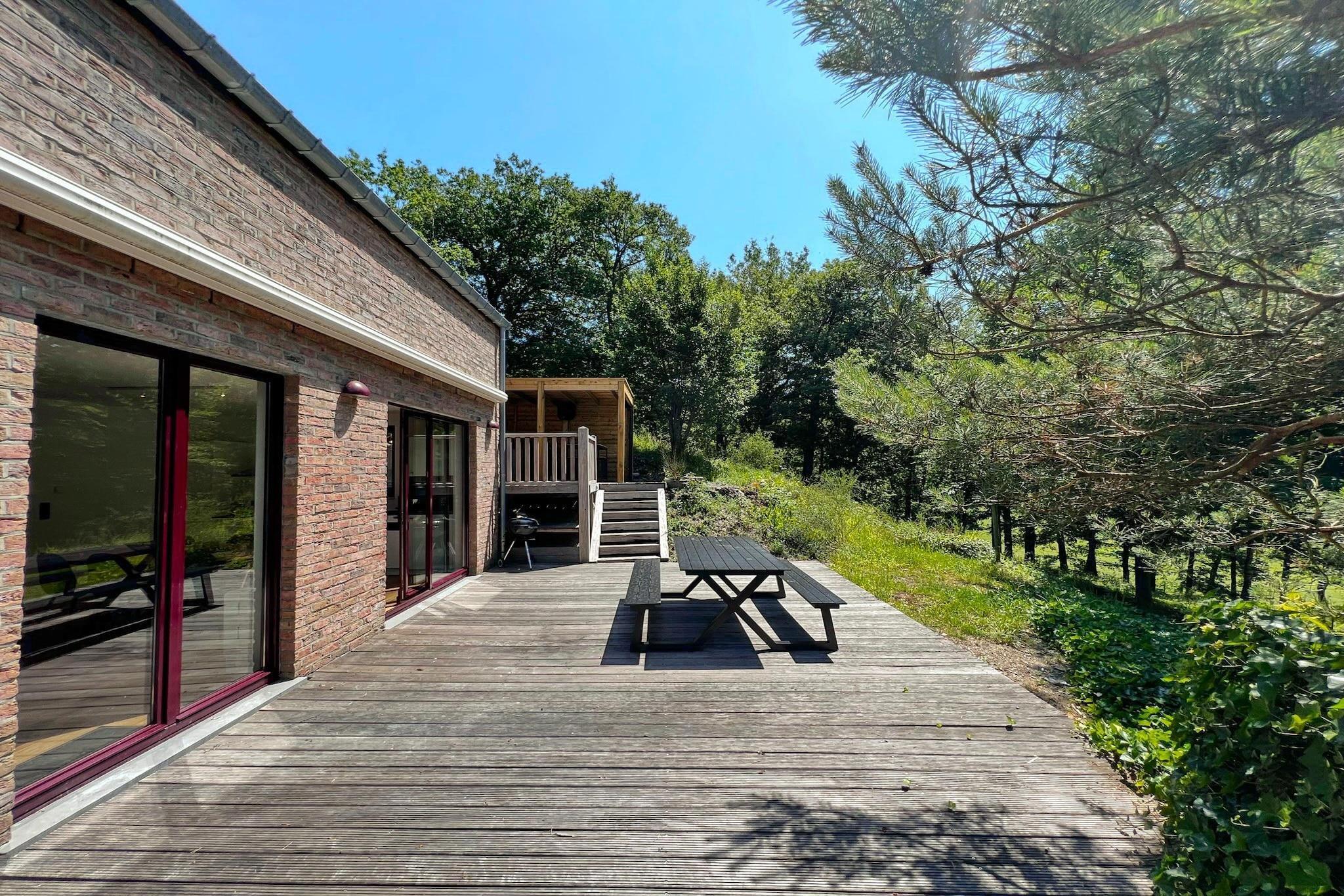 Stueetage: (åbent køkken(spisebord, komfur(glaskeramisk), kaffemaskine(kopper), combi-mikroovn, opvaskemaskine , køle-fryseskab), stue / spisestue(Fjernsyn(digital), kakkelovn(træ), sofahjørne), toilet) På 1. etage: (soveværelse(dobbeltseng, køjeseng), soveværelse(dobbeltseng), Soveværelse med badeværelse(dobbeltseng, bruser, håndvask), badeværelse(badekar, 2x håndvask), toilet) hottub, terrasse, have, havemøbler, grill, parkering, legeredskaber, barnestol