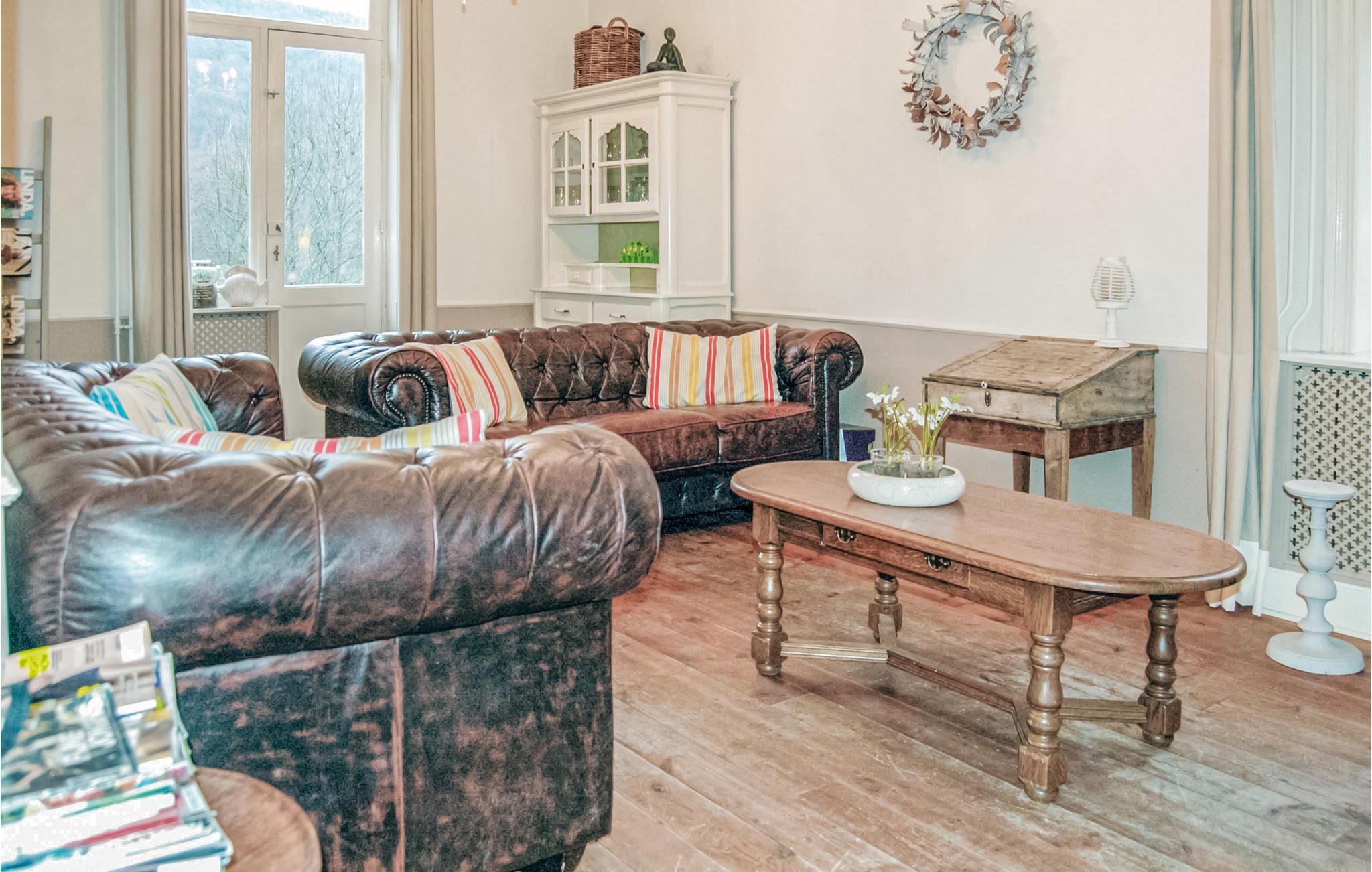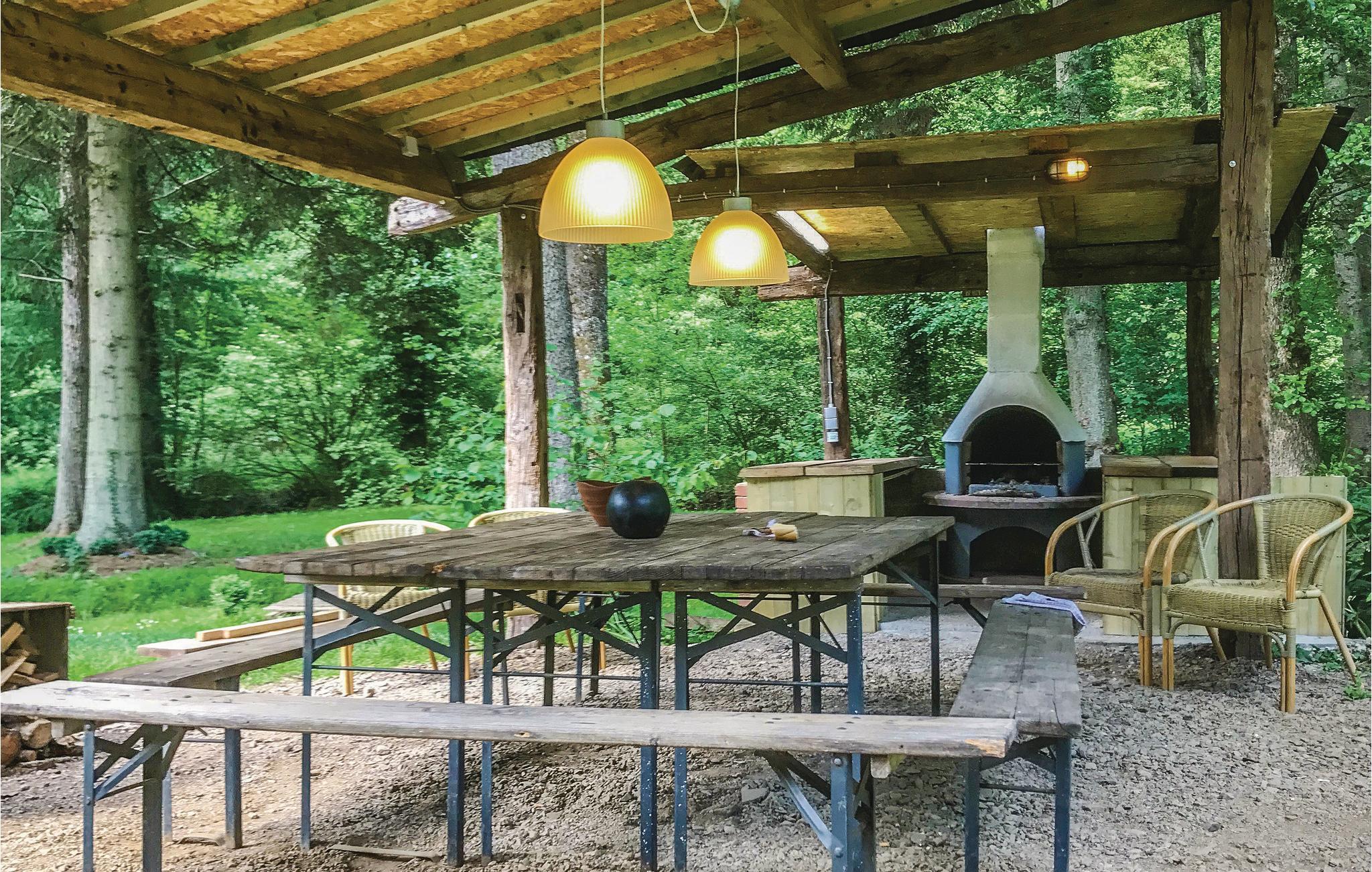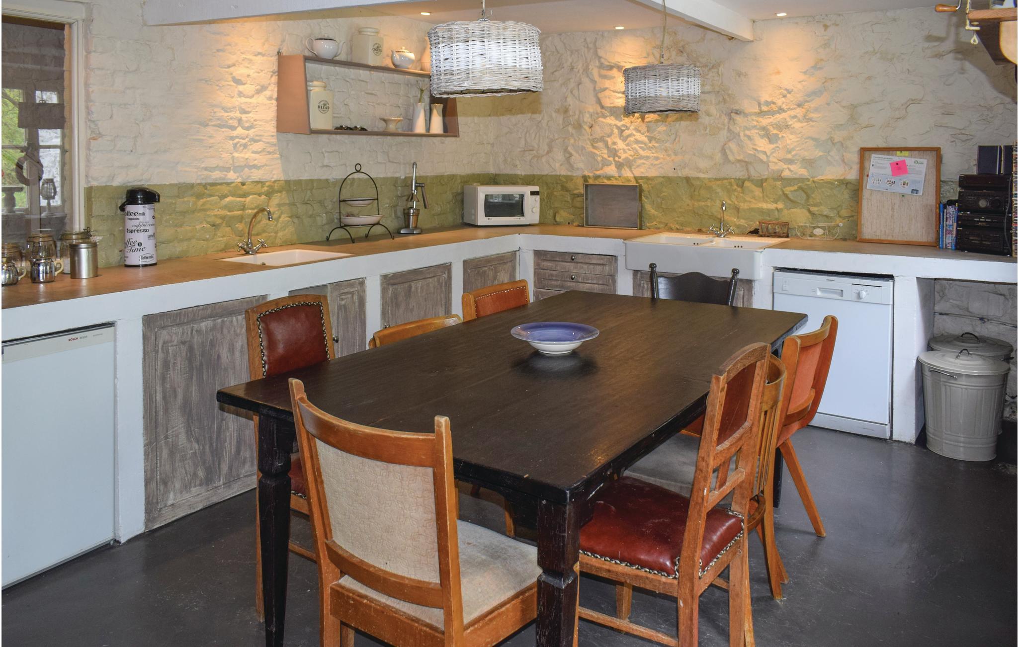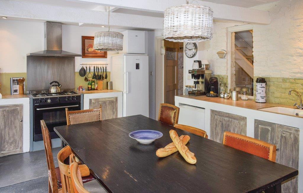 I en idyllisk dal, 25 km syd for Dinant og lige ved den franske grænse, ligger dette feriehus omgivet af en skovdækket grund på 25.000 m². I den indhegnede have forløber bækken La Houle. Her er der også legeredskaber og nogle bænke. I skoven og på den store græsplæne kan jeres børn boltre sig af hjertets lyst. På terrassen foran huset kan I nyde middagssolen i det hyggelige siddehjørne. Den anden terrasse med gasgrill ligger på et lidt lavere plan uden for køkkenet, så I kan nyde jeres fælles måltider i det fri i de varmere måneder. Og når vejret driller, kan I hygge jer sammen i køkkenet. Omkring pejsen i den hyggelige stue synes tiden at flyve om aftenen. Det store bord i den elegante spisestue ved siden af er også særdeles velegnet til selskabsspil. Soveværelserne på første og anden sal byder hver især på eget badeværelse. Fjernsynet kan kun bruges til DVD. Her er I et ideelt sted til at tilbringe et afslappende ophold. Feriehuset er beregnet til familier. Andre grupper kan dog også blive tilladt, under forbehold for ejerens samtykke og en eventuel forøgelse af depositum. Grupper med personer under 30 år er grundlæggende ikke tilladt.
