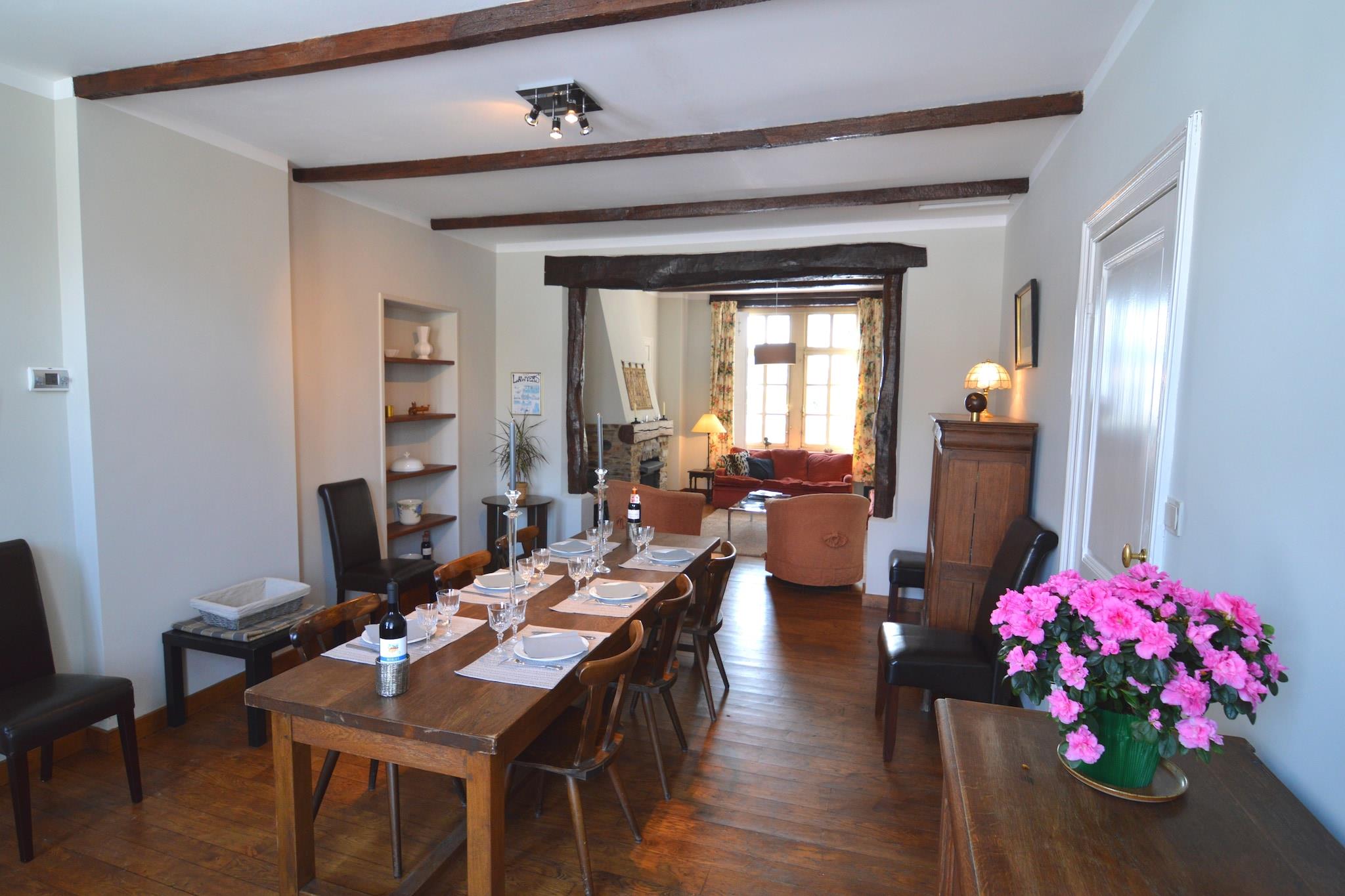 Dette fredfyldte 4-værelses feriehus i Roumont er perfekt til en gruppe på 9 eller familier med børn. Beliggende i hjertet af de smukke belgiske Ardenner, tilbyder det fred, komfort og fantastiske naturlige omgivelser. Gæsterne kan slappe af på den private terrasse eller i den møblerede have, som er ideel til udendørs måltider og familietid. Naturelskere vil nyde lange gåture i skoven kun 1 km væk, hvor det lokale dyreliv ofte kan ses. For at spise ude ligger der restauranter 5 km fra ejendommen, og et supermarked i samme afstand sikrer, at du har alt det nødvendige til dit ophold. Indenfor har opholds-/spiseområdet en hyggelig pejs, perfekt til at slappe af efter en dag med eventyr. Det moderne køkken er fuldt udstyret til at tilberede hjemmelavede måltider. Soveværelserne byder på fem komfortable enkeltsenge og ekstra sovemuligheder til en afslappende nat. Med parkering på stedet og adgang til offentlig transport kun 5 km væk, byder boligen på både afsondrethed og bekvemmelighed. Dette hjem er ideelt til en afslappende ferie i naturen og byder dig velkommen til et mindeværdigt ophold.