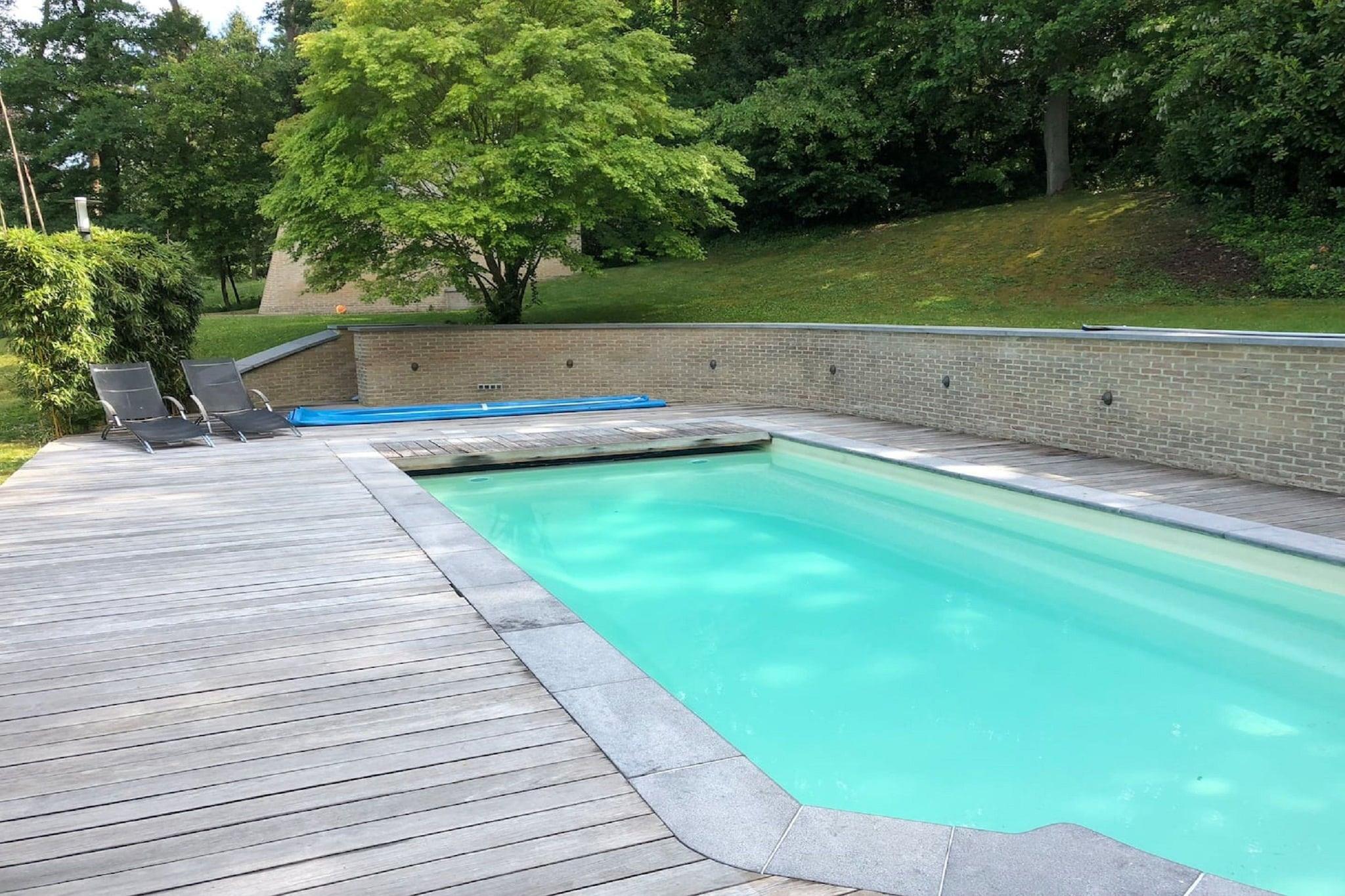 Flygt til denne luksuriøse villa i Bierges, en sand oase af fred og komfort. Perfekt til udvidede familier eller en gruppe venner, dette elegante oase har en privat swimmingpool, afslappende boblebad og solterrasse, alt hvad du behøver til en foryngende ferie. Villaen ligger på en rummelig ejendom og har en lys og luftig stue med et stort tv, ideel til hyggelige sammenkomster. Det fuldt udstyrede køkken giver mulighed for fornøjelige hjemmelavede måltider, mens fitnessentusiaster kan gøre brug af hotellets fitnesscenter. Et dedikeret mødelokale er også tilgængeligt, hvilket gør hjemmet velegnet til arbejde og fritid. Beliggende kun 6 km fra Wavres livlige centrum og 5 km fra det nærmeste supermarked byder boligen på både bekvemmelighed og afsondrethed. Tag på en dagstur til det nærliggende Bruxelles for at shoppe og spise god mad, eller bare slap af i villaens fredfyldte omgivelser. Uanset om du ønsker at slappe af eller udforske, lover dette hjem et mindeværdigt ophold.