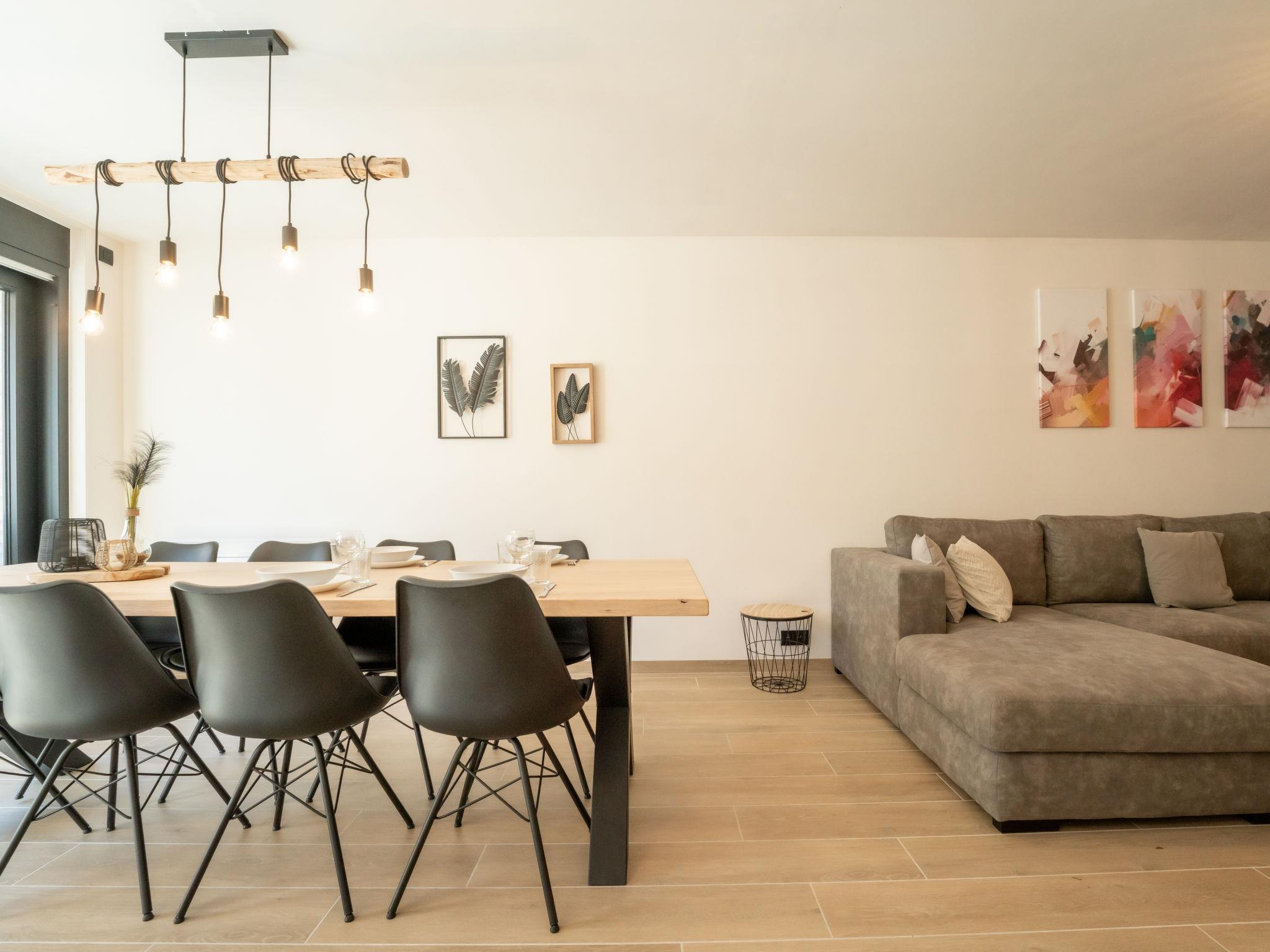 "Centrally located "Toi & Moi", 4-room apartment 95 m2 on 2nd floor. Spacious and bright, comfortable and modern furnishings: living/dining room with dining table, TV, digital TV and international TV channels. Exit to the terrace. 1 double bedroom with 1 x 1 bunk beds (90 cm, length 200 cm), 1 double bed (140 cm, length 200 cm). 1 double bedroom with 1 double bed (180 cm, length 200 cm). 1 children's room with 1 x 2 bunk beds (90 cm, length 200 cm). Open kitchen (oven, dishwasher, 4 ceramic glass hob hotplates, toaster, kettle, microwave, freezer, electric coffee machine, combination microwave). Shower, sep. WC. Heating. Balcony 10 m2, south facing position. Terrace furniture. Facilities: baby cot, hair dryer. Internet (WiFi, free). Please note: non-smoking house. Smoke alarm, fire extinguisher. LD399241
