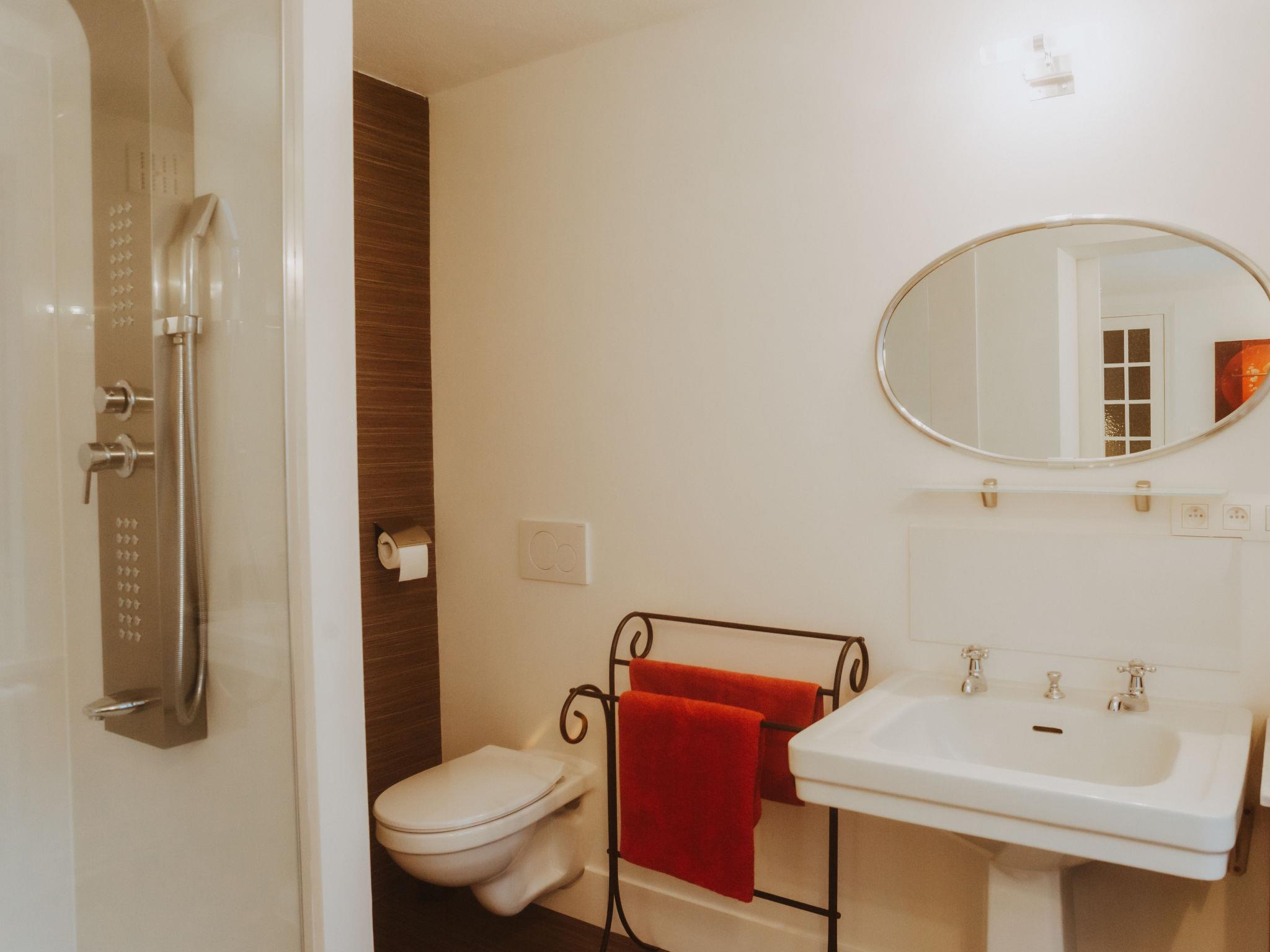 "Historical and spacious "Villa Anaïs", 7-room house 200 m2 on 3 levels. Spacious and bright, fully renovated in 2020, comfortable and tasteful furnishings: entrance hall. Dining room, window onto the courtyard with dining table and radio. Exit to the terrace. Large kitchen (oven, dishwasher, Gas stove, 7 gas rings, toaster, kettle, microwave, freezer, electric coffee machine) with dining table. Heating. Upper floor: living room with digital TV, international TV channels and flat screen. 1 double bedroom with 1 double bed (160 cm, length 200 cm), shower/WC and hydro massage shower. Sep. WC. 2nd upper floor: 1 children's room with 2 x 2 bunk beds (90 cm, length 200 cm), shower/WC and hydro massage shower. 1 room with 1 x 2 bunk beds (90 cm, length 200 cm), 1 double bed (160 cm, length 200 cm). 1 double bedroom with 1 double bed (160 cm, length 200 cm). Shower, sep. WC, double hand-basin, hydro massage shower. 3nd upper floor: 1 double bedroom with 1 double bed (140 cm, length 200 cm), shower and hydro massage shower. Sep. WC. Patio. Facilities: hair dryer. Internet (WiFi, free). Please note: non-smoking house. LD384414