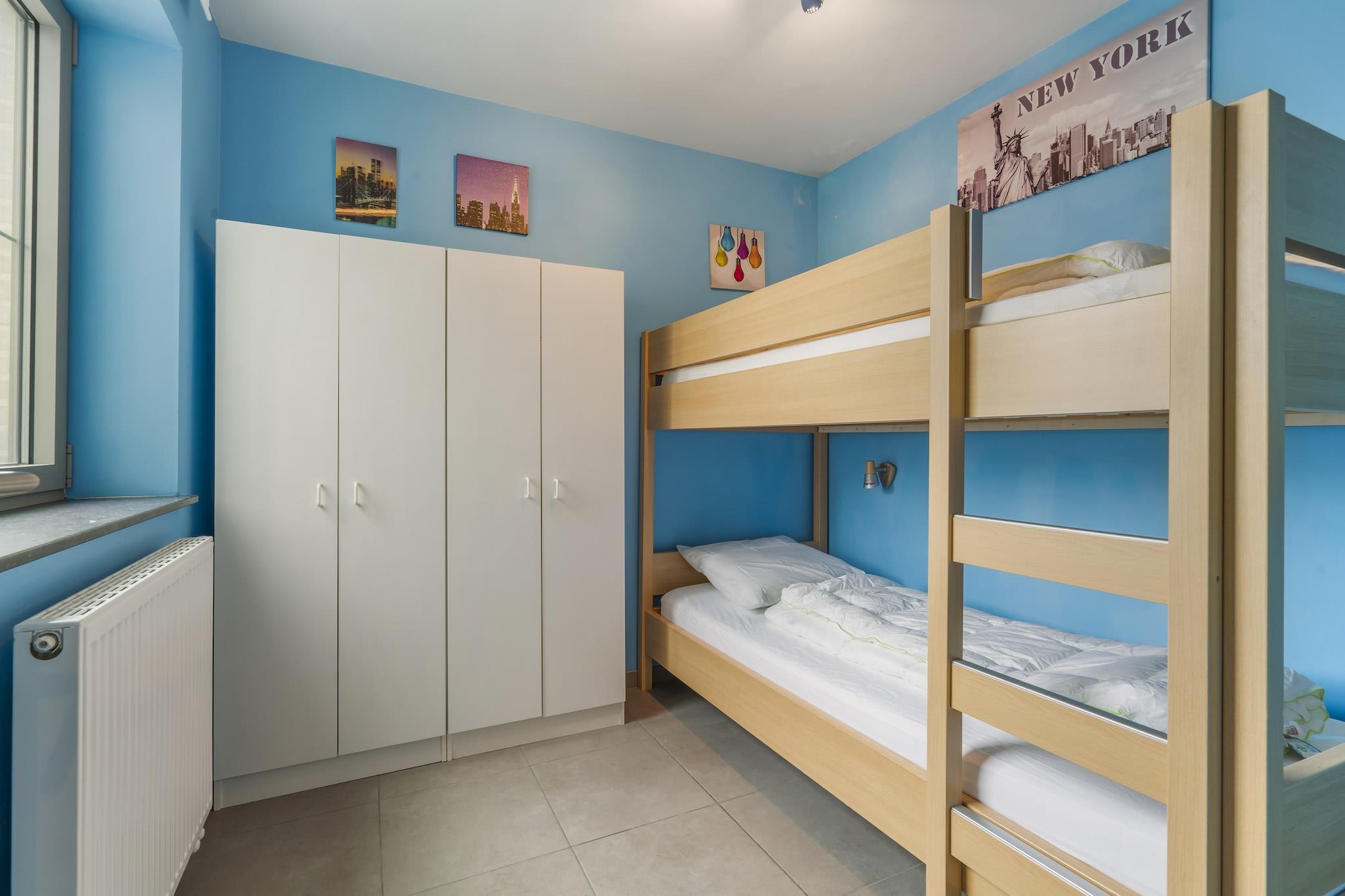 Velkommen til dit fredfyldte tilflugtssted ved havet! Denne lyse lejlighed i stueetagen tilbyder en afslappende ferie kun 20 meter fra Vesterhavsstranden. Træd ind i en solbelyst stue med gulv-til-loft-vinduer og åbner ind i et fuldt udstyret åbent køkken med moderne apparater - perfekt til langsom morgenmad eller hyggelige middage. Med et hovedsoveværelse med en dobbeltseng og et andet soveværelse med en køjeseng er den ideel til par eller små familier. Slap af på den private terrasse, der er knyttet til soveværelset - et perfekt sted til morgenkaffe eller solnedgangschat. Beliggende på rolige Prinsenlaan, er du kun 100 meter fra Blankenberges pulserende bymidte og 500 meter fra shoppinggaden. Togstationen ligger kun en kort gåtur på 800 meter, hvilket gør dagsture til det charmerende Brugge (12 km væk) til en leg. Uanset om du udforsker Sea Life Blankenberge med børnene, tester lykken på det nærliggende kasino eller tager lange vandreture ved havet, er alt lige ved hånden. Wi-Fi er inkluderet for din bekvemmelighed, og der er rigelig parkering i nærheden ved Indigo (800 m). Tag din lodne ledsager med - kæledyr er hjerteligt velkomne her! Nyd morgenløbeture eller afslappede gåture på den kæledyrsvenlige strandpromenade, og besøg lokale caféer som Bistro De Oostkust, der tilbyder udendørs siddepladser perfekt til kæledyrsejere. I sommermånederne afholder Blankenberge ofte hundevenlige begivenheder langs strandpromenaden, herunder agilitykurser og kæledyrstræf.