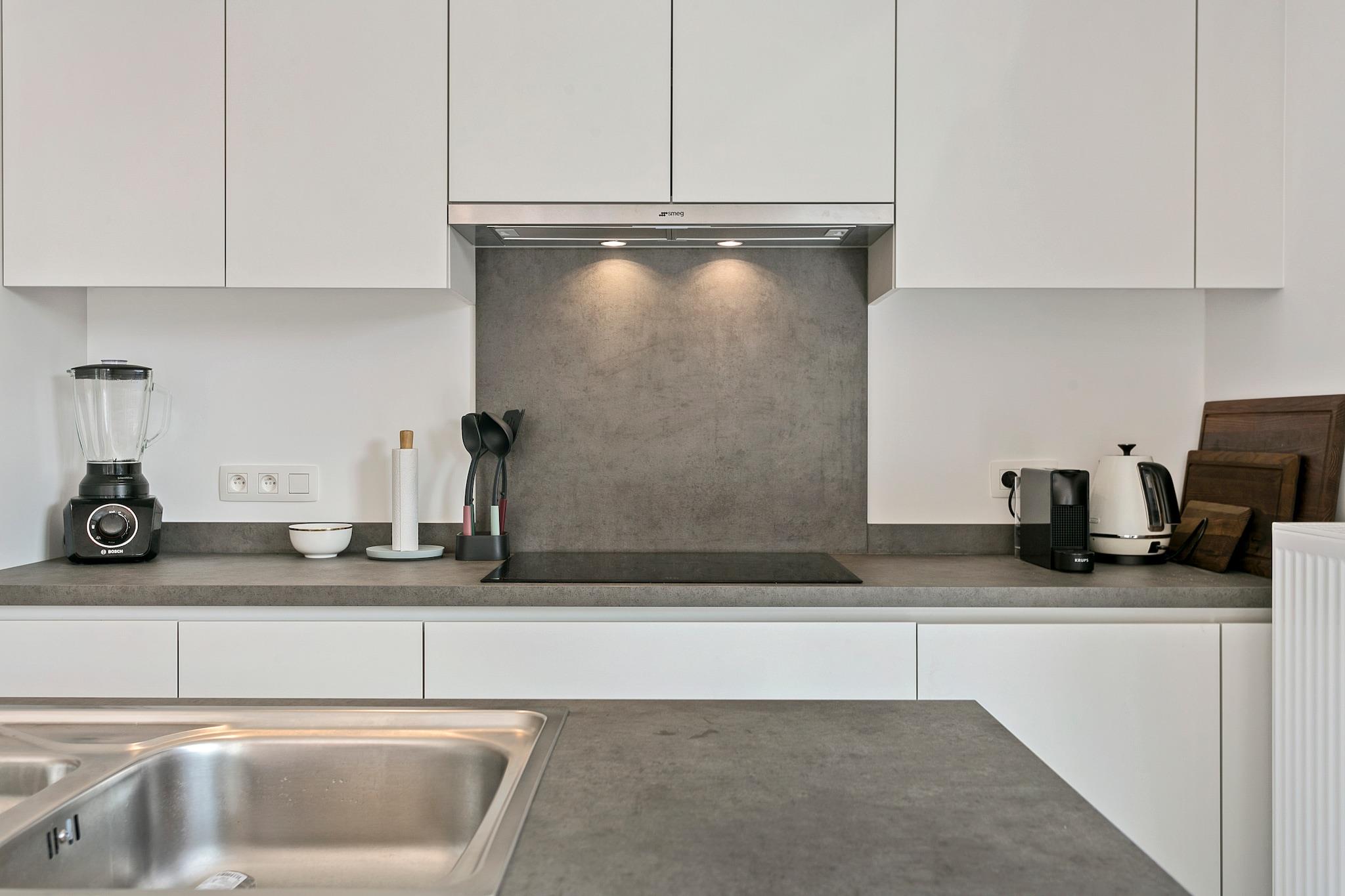 Denne smukke to-værelses lejlighed, beliggende i en nybygget bygning, ligger kun en kort gåtur fra både strandpromenaden og byens centrum, hvilket gør den til den perfekte base for din ferie i Blankenberge. Den lyse og rummelige stue har et moderne åbent køkken, ideelt til at tilberede måltider og slappe af efter en dag med udforskning. Den solrige forterrasse kommer med seks terrassestole og et havebord, der tilbyder et perfekt sted til udendørs spisning eller til at nyde den friske luft. Blankenberge byder på en række attraktioner, herunder dens smukke strand og livlige promenade. Blankenberge-molen er et must-see og byder på naturskønne udsigter og en række aktiviteter. Udforsk de lokale butikker, caféer og restauranter, eller besøg Sea Life-akvariet for familievenlig sjov. Med cykelruter og naturreservater i nærheden, er der ingen mangel på udendørsaktiviteter at nyde. Denne lejlighed tilbyder alt hvad du behøver for en ubekymret og behagelig ferie. Lejligheden indeholder et soveværelse med en komfortabel dobbeltseng og et andet soveværelse med to køjesenge, hvilket gør den ideel til familier eller grupper. Badeværelset er udstyret med dobbelt håndvask og bruseniche. Et rummeligt opbevaringsrum med vaskemaskine tilføjer komfort til dit ophold. Derudover er der daybeds til rådighed for ekstra afslapning, og små kæledyr er tilladt med ejerens tilladelse.