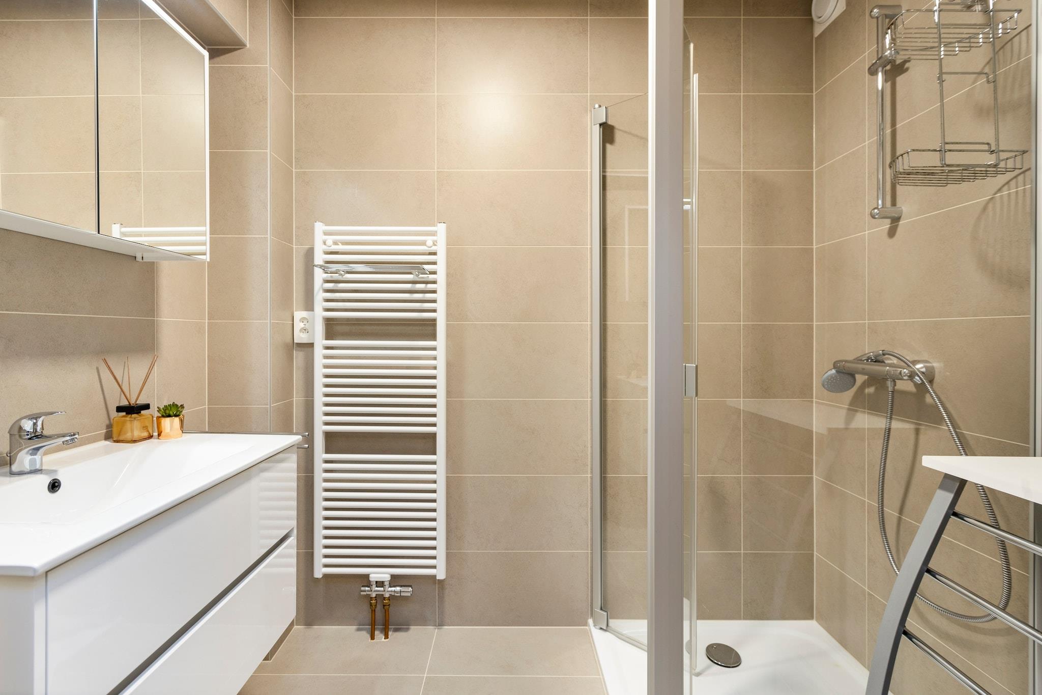 Denne smukt renoverede lejlighed på 5. sal i San Michele-boligen i Blankenberge byder på finish af høj kvalitet og en førsteklasses beliggenhed med udsigt over lystbådehavnens minigolfbane. Den store terrasse foran er perfekt til at slikke solen fra solopgang til eftermiddag , komplet med terrassestole og et havebord til udendørs spisning eller afslapning. Indvendigt har lejligheden en rummelig stue med et åbent, fuldt udstyret køkken, hvilket gør den ideel til at tilberede måltider og underholde. Nathallen fører til et moderne badeværelse med bruseniche og separat toilet for ekstra bekvemmelighed. De to rummelige soveværelser har hver komfortable boxmadrasser til to personer, hvilket sikrer en god nattesøvn. Kæledyr er velkomne med ejerens tilladelse, hvilket gør det til en fantastisk mulighed for kæledyrsejere. Lejlighedens centrale beliggenhed i Blankenberge betyder, at du er tæt på stranden, butikker, restauranter og lokale attraktioner, og tilbyder alt hvad du behøver for en mindeværdig badeferie.