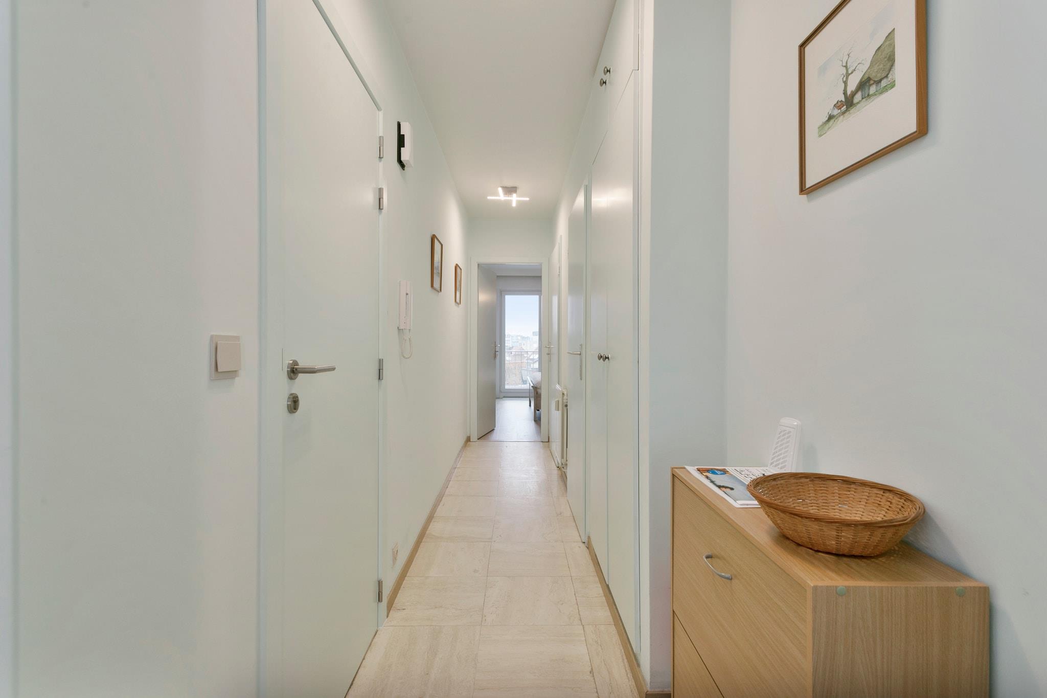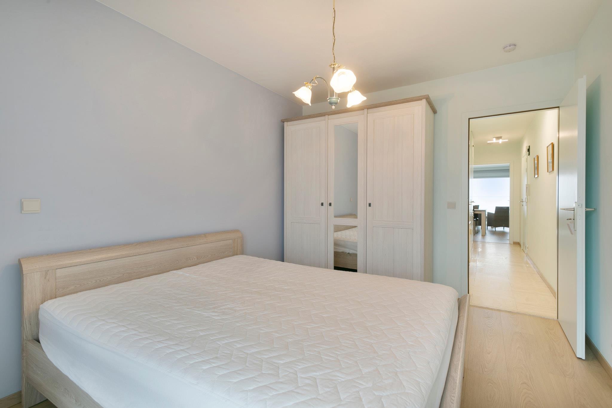 Denne smukt renoverede lejlighed med en betagende havudsigt er perfekt til en afslappende kystferie. Det hyggelige soveværelse sikrer et afslappende ophold, mens den rummelige stue giver et indbydende sted at slappe af. Det åbne køkken er fuldt udstyret, hvilket gør tilberedning af måltider let og behageligt. Badeværelset har bruser og toilet, med et ekstra separat toilet for ekstra bekvemmelighed. Dette charmerende tilflugtssted er ideelt for par eller små familier, der leder efter en fredelig flugt ved havet. Blankenberge tilbyder en perfekt blanding af historie, kultur og rekreation. På Belle Epoque Centrum kan du lære om byens fremgang som en smart badeby med udstillinger om arkitektur, mode og kunst. Udforsk det historiske House of Majutte, det ældste fiskerhus på den belgiske kyst, eller besøg SEA LIFE for at se over 2.500 havdyr. Nyd den naturskønne udsigt fra den belgiske mole eller Oosterstaketsel, ideel til fotografering og fiskeri. Havnefestivalen og Paravang-festerne fejrer byens maritime traditioner og Belle Epoque-arv. For at slappe af kan du slappe af ved Riant d"Eau Wellness eller Bloso Blankenberges saunakompleks. Vandsportsentusiaster kan besøge O"Neil Beachclub, mens sportselskere kan nyde tennis, padel eller petanque i Tennis Club. Glem ikke en sjov aften med bowling på Bowl Inn! Lejligheden omfatter både for- og bagterrasser, møbleret med komfortable stole og et havebord, så du kan slappe af udendørs på ethvert tidspunkt af dagen. Et fuldt udstyret køkken med mikroovn, ovn og kaffemaskine sikrer et bekvemt ophold, mens moderne møbler skaber en varm og indbydende stemning. Dette dejlige tilflugtssted tilbyder den perfekte balance mellem komfort og kystcharme.