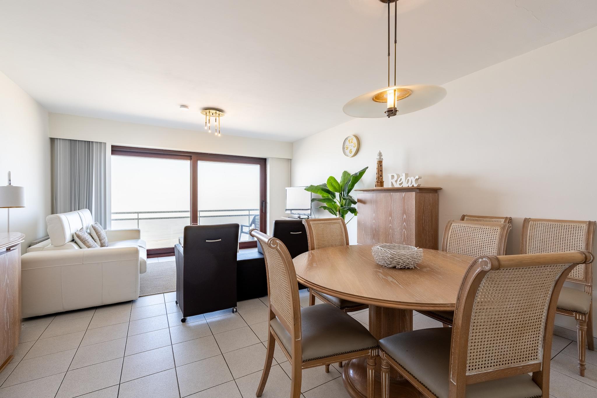 Denne lyse lejlighed, der ligger på 9. sal med en storslået udsigt over Nordsøen, tilbyder et perfekt kystnært tilflugtssted for par eller små familier. Beliggende i hjertet af Blankenberge ved Zeedijk, har den for- og bagterrasser, hvor du kan nyde din morgenkaffe med en solopgang eller en aftendrink under stjernerne. Et rummeligt soveværelse med en 1,60 m dobbeltseng og en sovesofa i stuen har komfortabel plads til op til fire gæster, mens gennemtænkte ekstrafunktioner som duntæpper og madrasbeskyttere får det til at føles som hjemme. Lejlighedens køkken er fuldt udstyret med alt fra en traditionel ovn og opvaskemaskine til både en filter- og Senseo-kaffemaskine, en brødrister, en elkedel og mere - ideelt til afslappede måltider med havudsigt. Badeværelset har badekar/bruser-kombination og dobbelt håndvask, med et separat toilet for ekstra bekvemmelighed. Med Wi-Fi, fladskærms-tv, dvd-afspiller, radio og cd-afspiller har du alle bekvemmelighederne ved et moderne liv, selv mens du slapper af. Denne lejlighed er tilgængelig for kørestolsbrugere med elevator og kæledyrsvenlig (for små kæledyr). Det er et smart valg for dem, der søger en blanding af komfort, stil og en uovertruffen beliggenhed. Nyd nærheden til den belgiske mole, Sea Life og livlige butikker og spisesteder, eller tag en dagstur til de nærliggende Brugge eller Knokke. Denne kystparadis, der er anerkendt af Tourism Flanders, er din port til hvile, afslapning og rig lokal charme.