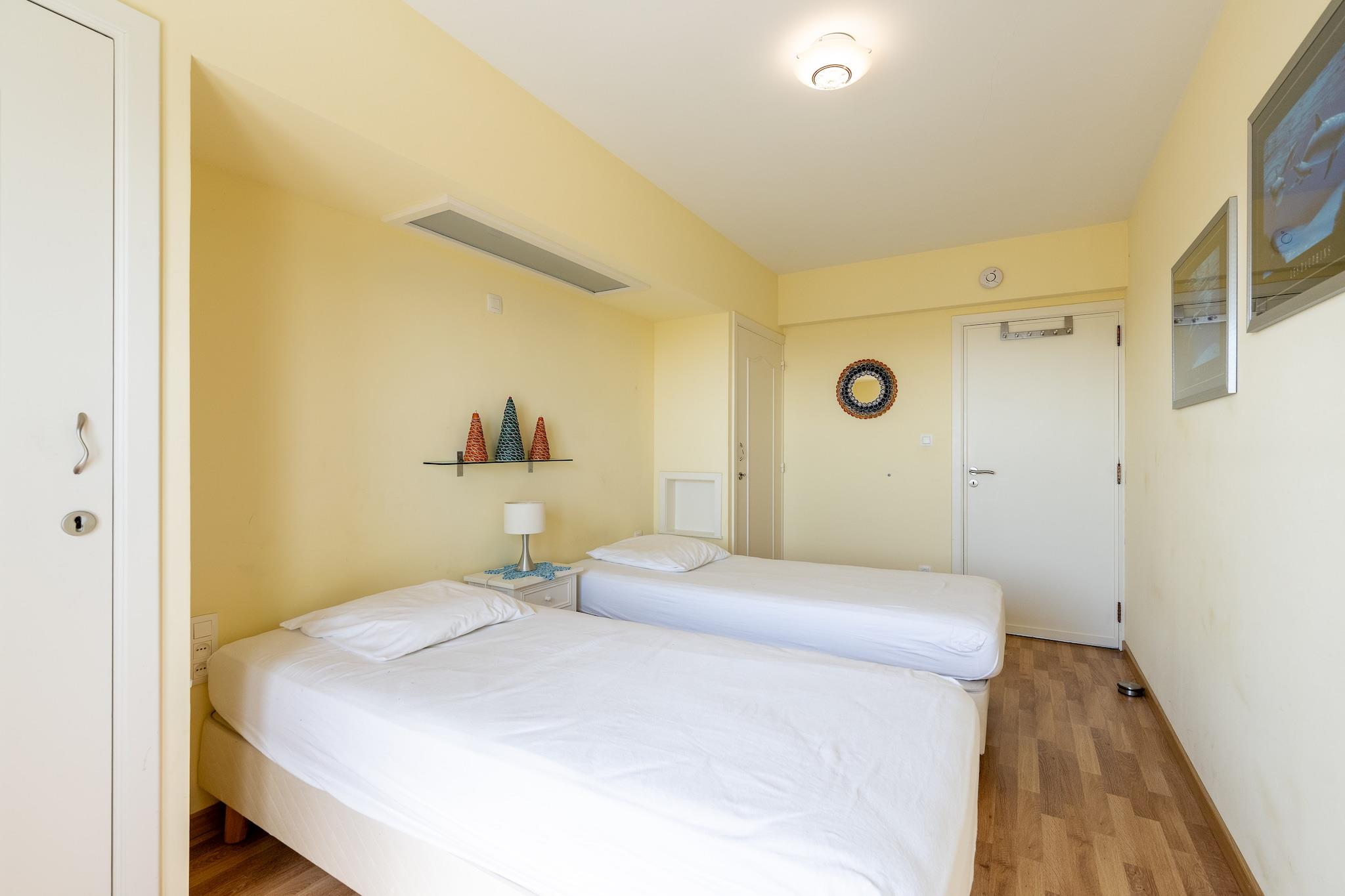 Med panoramaudsigt over Nordsøen fra 6. sal tilbyder denne lyse og rummelige lejlighed en varm og imødekommende base for familier eller små grupper. Beliggende i en førsteklasses central beliggenhed langs Zeedijk, kun få skridt fra stranden, har den to veludstyrede soveværelser - det ene med en 1,60 m dobbeltseng og privat tv, og det andet med to enkeltsenge og en babyrejseseng - hvilket gør den ideel for både forældre og børn at finde sig til rette i. De forreste og bageste terrasser tilbyder udendørs siddepladser til solrige morgenmad eller fredelige aftensolnedgange. Indenfor er køkkenet udstyret til hverdagens bekvemmeligheder med et gaskomfur, mikrobølgeovn, opvaskemaskine, køleskab med fryser og både filter- og Senseo-kaffemaskine. Opholdsstuen indbyder til afslapning med et fladskærms-tv, digitale kanaler, radio og endda en cd-afspiller for et strejf af nostalgi. En vaskemaskine og tørretumbler tilføjer komfort under længere ophold, mens Wi-Fi holder dig forbundet under hele dit ophold. Lejligheden har også et moderne badeværelse med bruseniche og håndvask samt et separat toilet for ekstra privatliv. Selvom elevatoren ikke er fuldt tilgængelig for kørestolsbrugere, kan den rumme sammenklappelige kørestole. Bygningen har også et cykelopbevaringsrum og en skraldespand. Lige uden for døren har du hurtig adgang til strandcaféer, den berømte mole, Sea Life og byens livlige shoppinggader, alt sammen pakket ind i et roligt, røgfrit og kæledyrsfrit kystnært tilflugtssted.