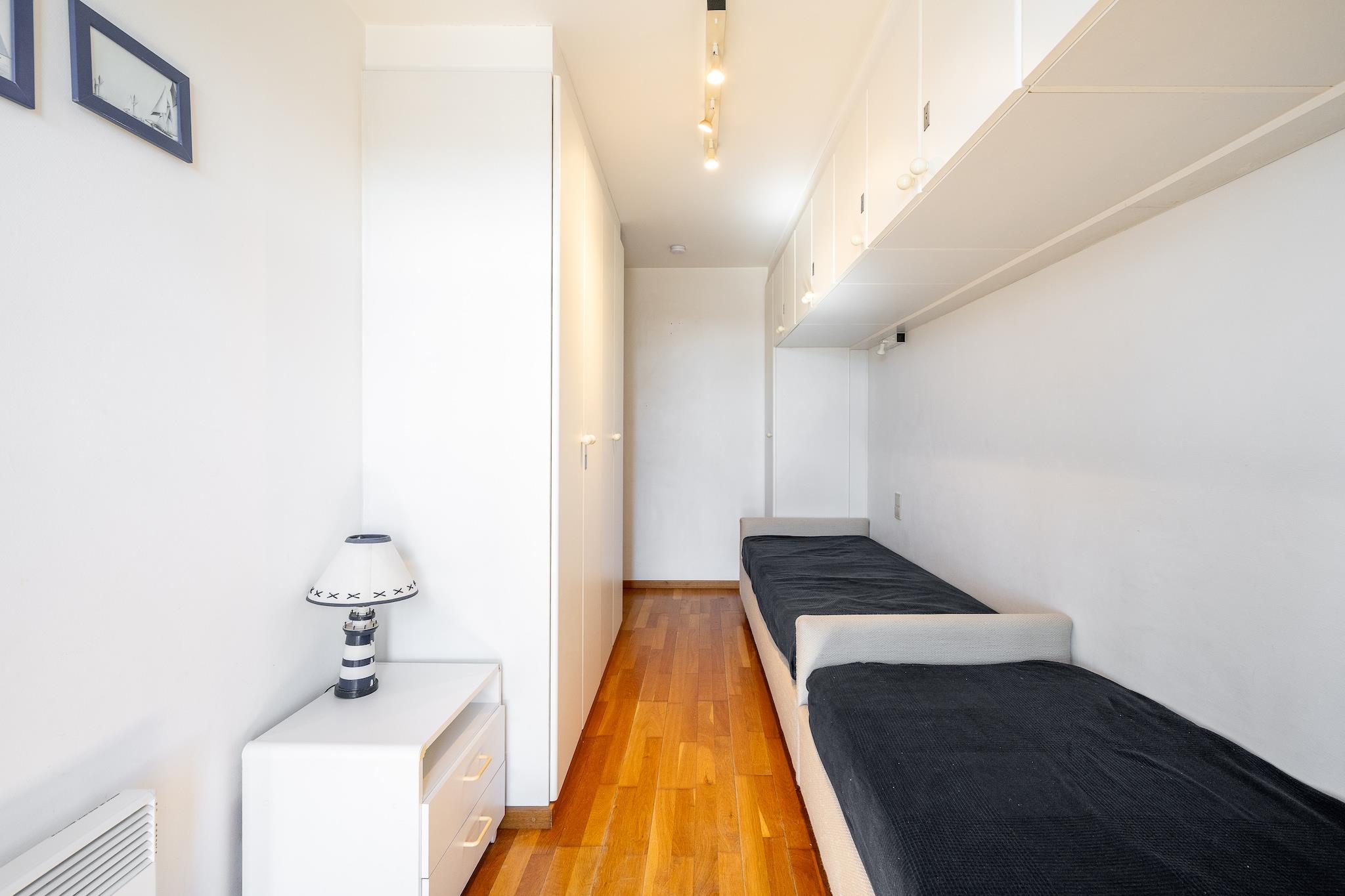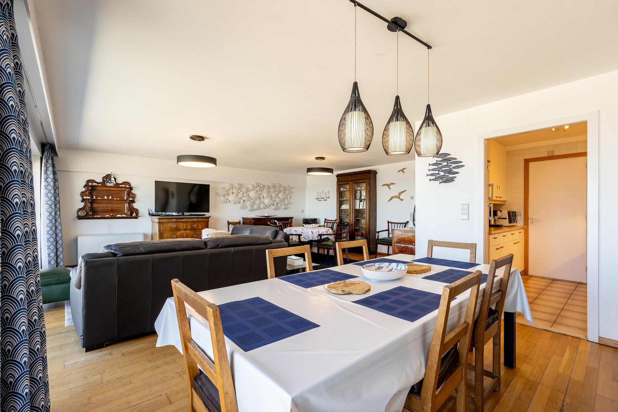 Denne lyse og rummelige lejlighed med 3 soveværelser er et perfekt tilflugtssted ved kysten for op til 6 gæster. Ideelt beliggende langs Zeedijk, kan du nyde en storslået havudsigt fra den store terrasse, mens du kun er få skridt fra stranden, Blankenberges pulserende shoppinggader, molen og kasinoet. Lejligheden er oversvømmet med naturligt lys og tilbyder en varm og indbydende atmosfære med moderne bekvemmeligheder. Den rummelige planløsning omfatter tre komfortable soveværelser: to med dobbeltsenge og et med to enkeltsenge - ideelt til familier eller små grupper. Der er to badeværelser for ekstra bekvemmelighed: et med badekar og håndvask, det andet med bruser og håndvask. Et separat toilet tilføjer ekstra praktisk funktionalitet. Alle nødvendige faciliteter såsom dyner, puder og madrasbeskyttere er inkluderet. Det fuldt udstyrede køkken har keramisk kogeplade, ovn, mikrobølgeovn, køleskab med fryser, opvaskemaskine, kaffemaskine (filter), elkedel og alt nødvendigt køkkenudstyr - perfekt til at tilberede måltider derhjemme. Hold dig forbundet med Wi-Fi og slap af med digital-tv. Lejligheden har også vaskemaskine, støvsuger, strygejern og rengøringsmidler. Den opvarmes via elektrisk varme, hvor forbruget fratrækkes depositummet. Tilgængelig via elevator (ikke egnet til ikke-sammenklappelige kørestole). Ikke-ryger. Kæledyr er ikke tilladt. Valgfri garageudlejning tilgængelig i nærheden — et stort plus i den travle bymidte! Uanset om du er her for at slappe af ved stranden eller udforske kystattraktionerne, tilbyder denne lejlighed den perfekte base.
